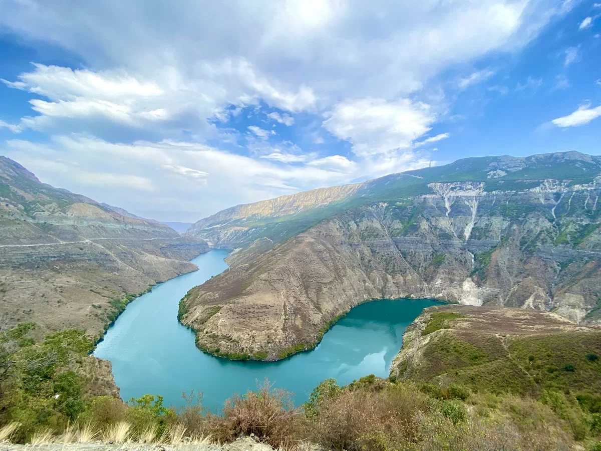 Сулакский каньон – туристическая визитная карточка Дагестана, топ из топов. Находится в 55 км от Махачкалы. Это действительного глубочайший в Европе горный каньон (глубина свыше 1,9 км), протянувшийся на 53 км. Но главное, конечно, не это, а захватывающая дух красота, которая осенью из-за ярких цветов еще острее.