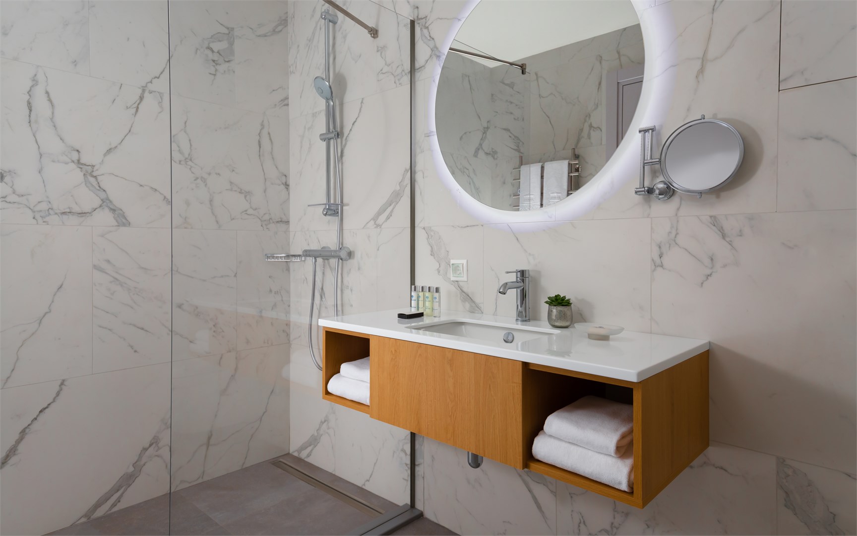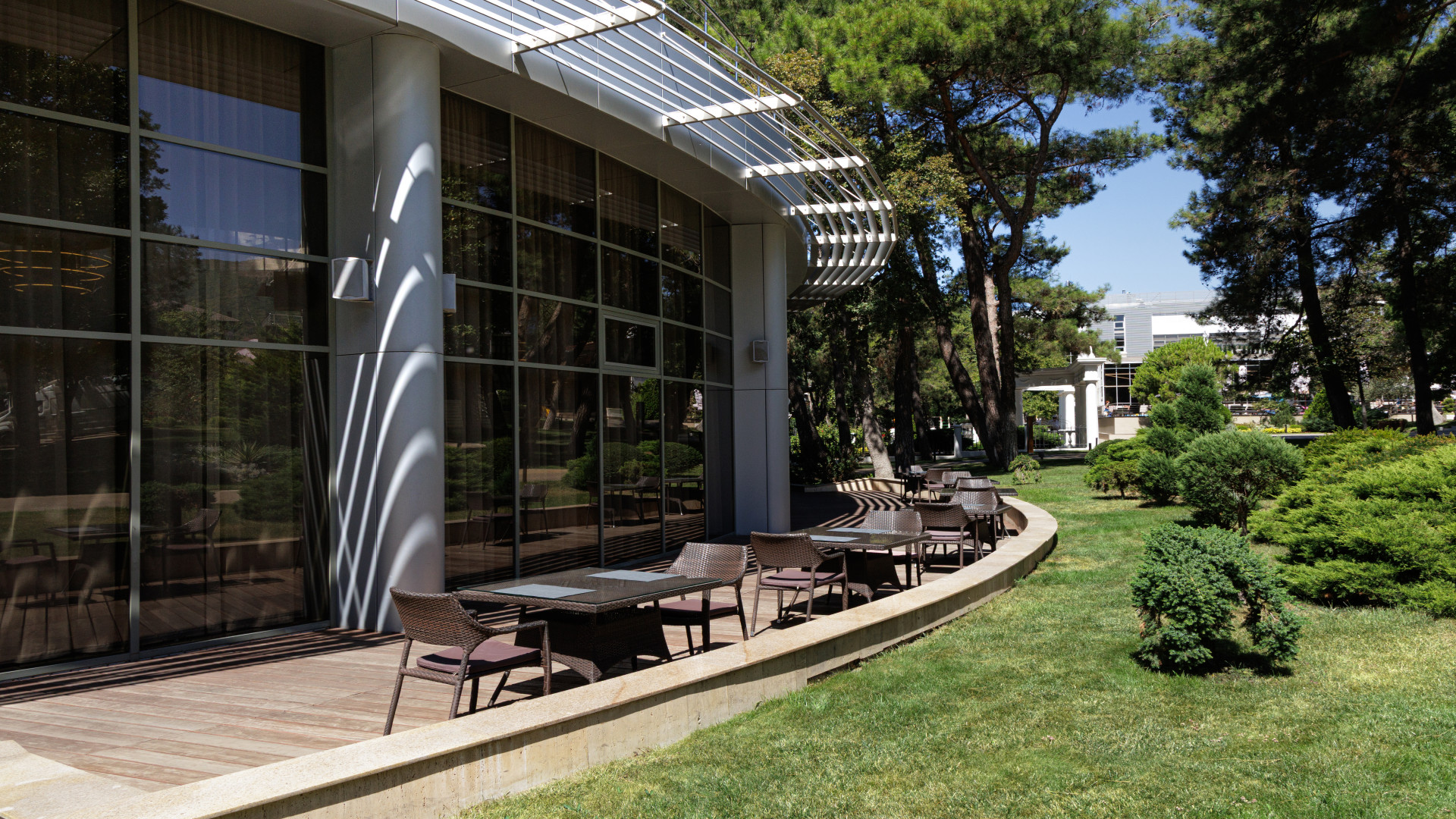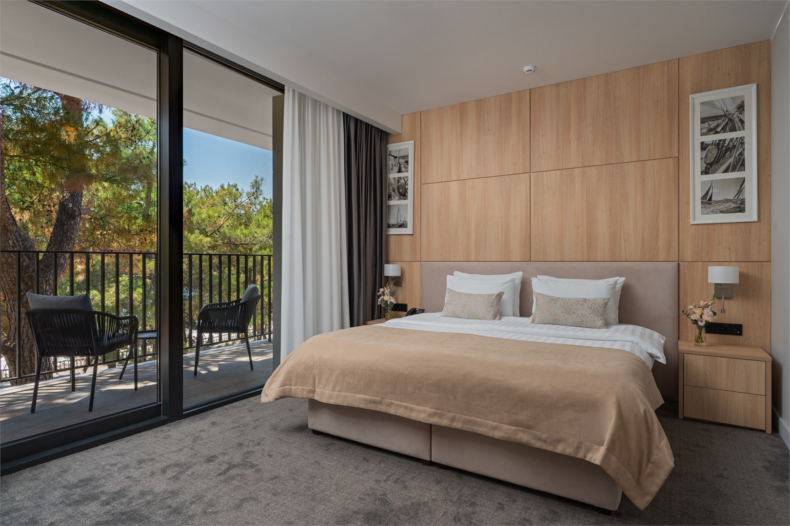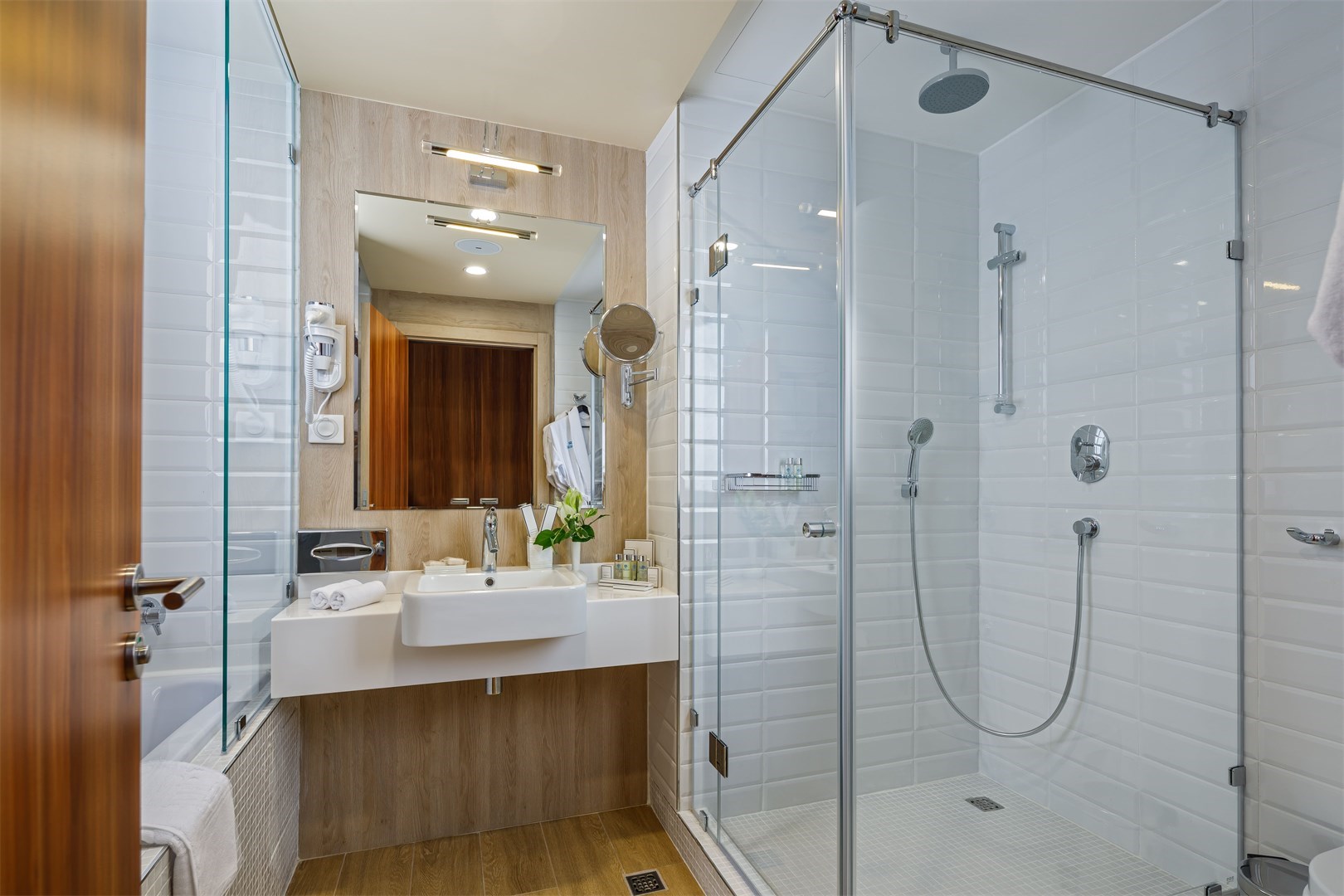 - В номере: душ, ванна, туалет, ТВ, холодильник, кондиционер, сейф, фен, телефон, чайная станция, электрочайник, двуспальная или две раздельные кровати, диван, кресло, терраса, кофемашина