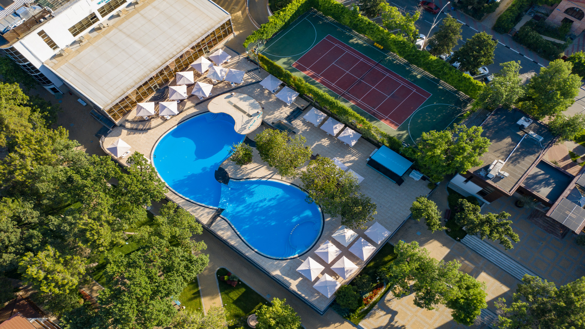 На территории отеля расположены 6 корпусов 5* и 4*, историческая вилла «Звуки музыки», медицинский центр, а так же конгресс-центр вместимостью до 600 человек.