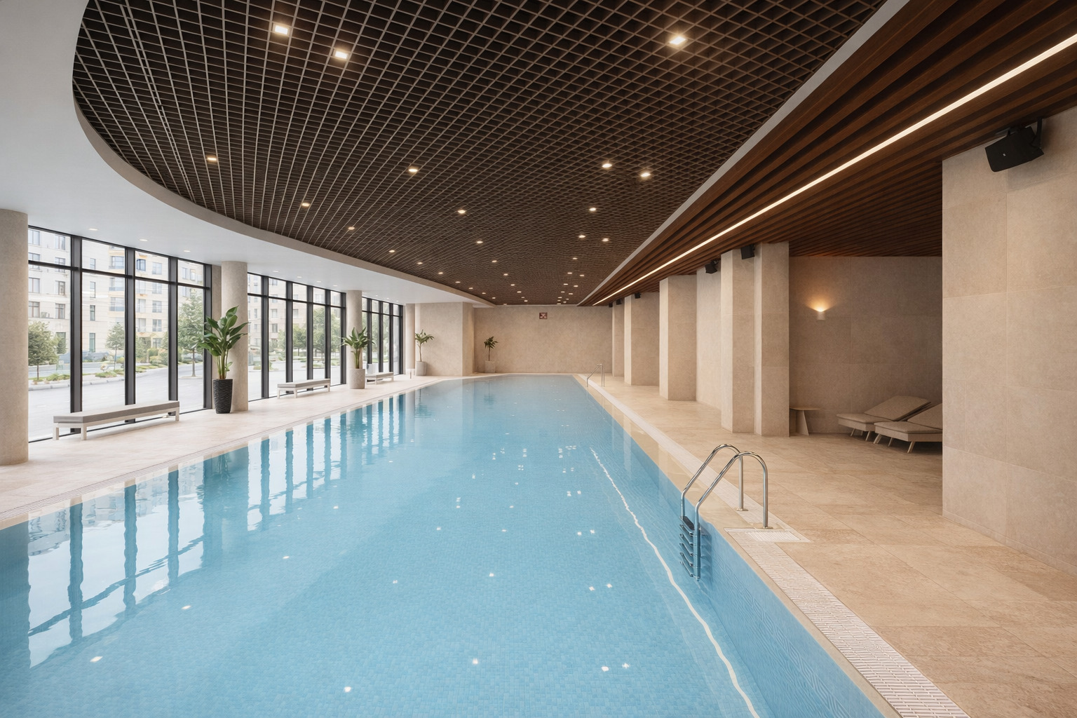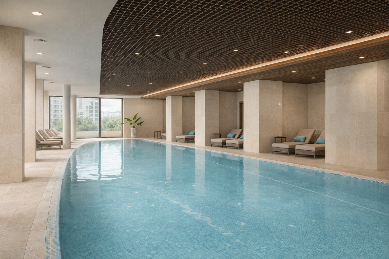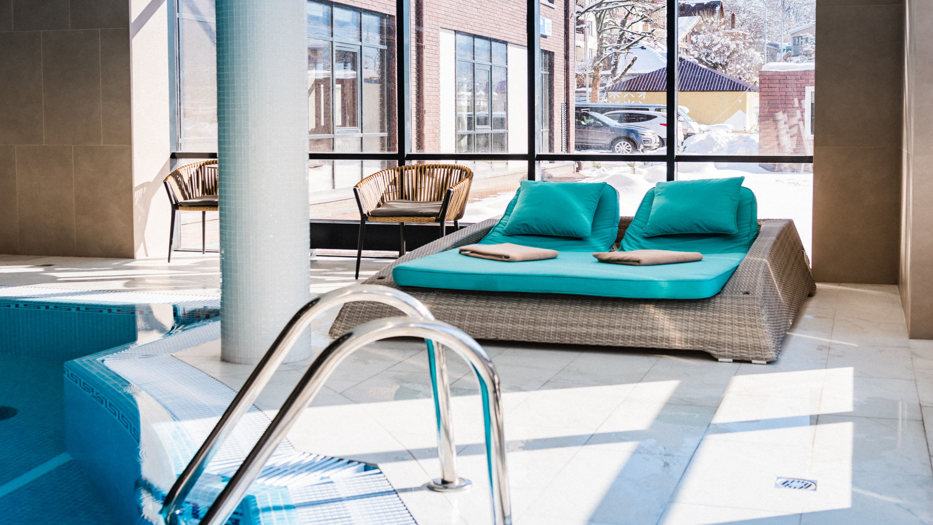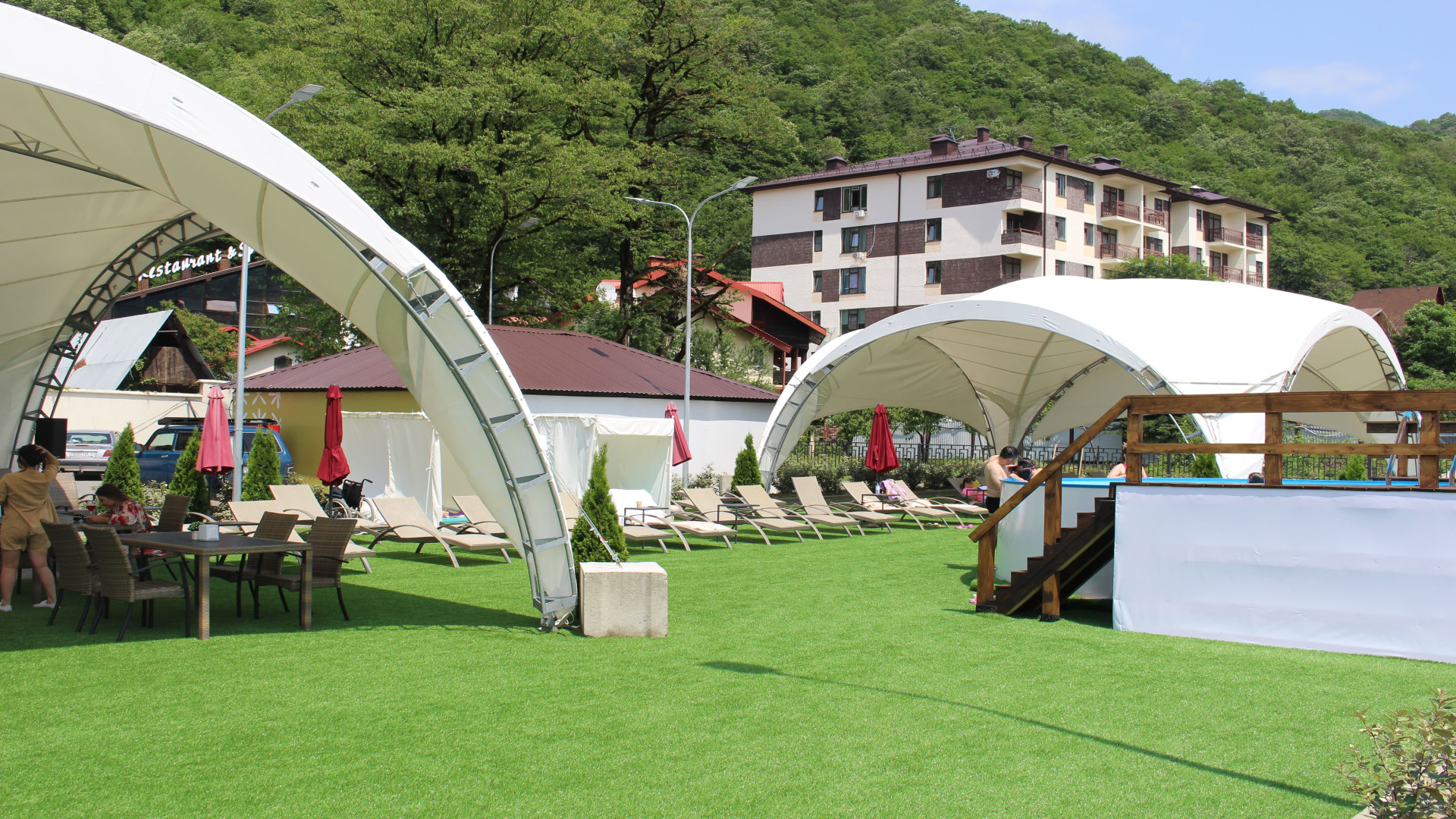 В корпусе: ресепшн, номерной фонд, бассейн