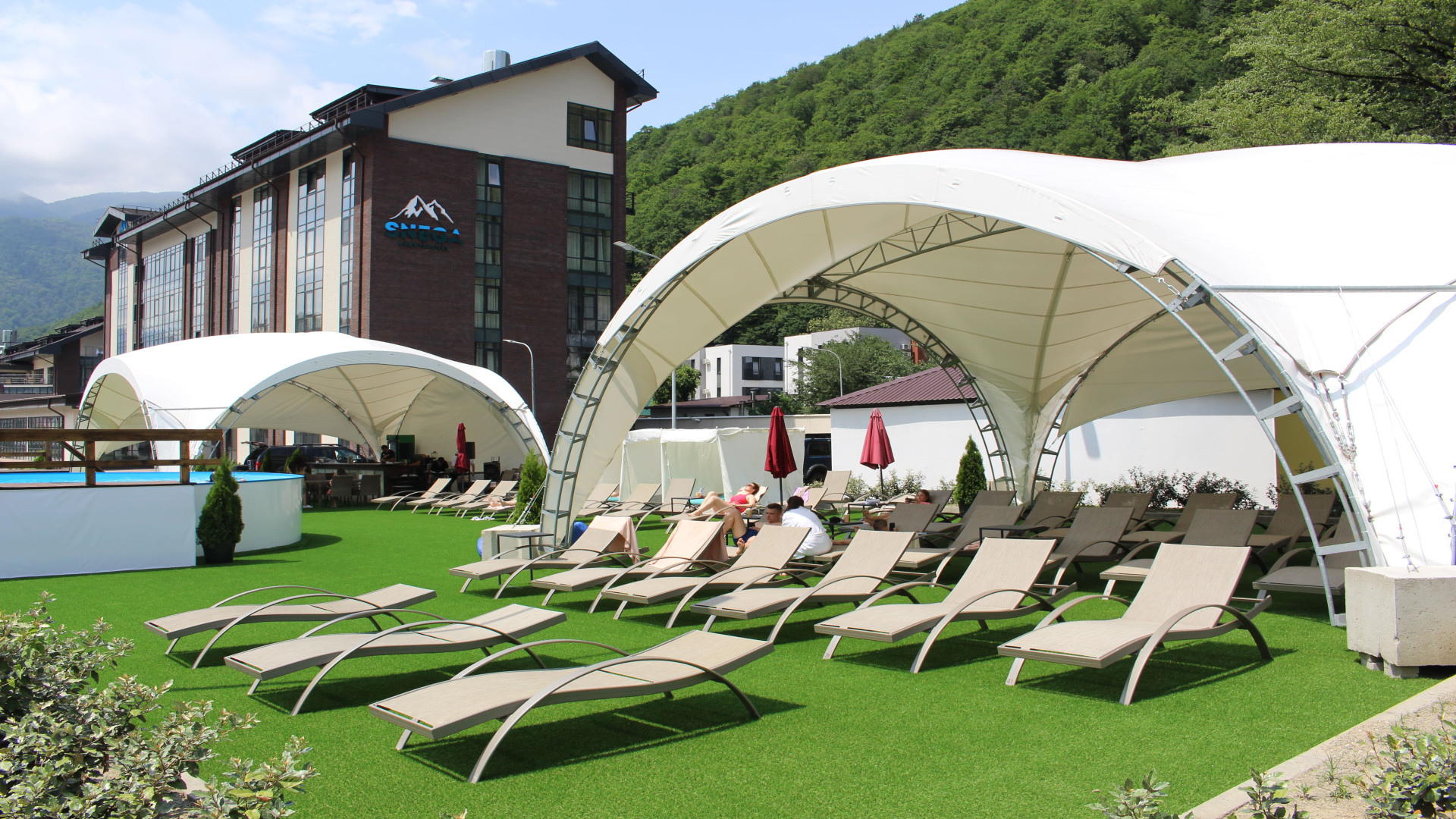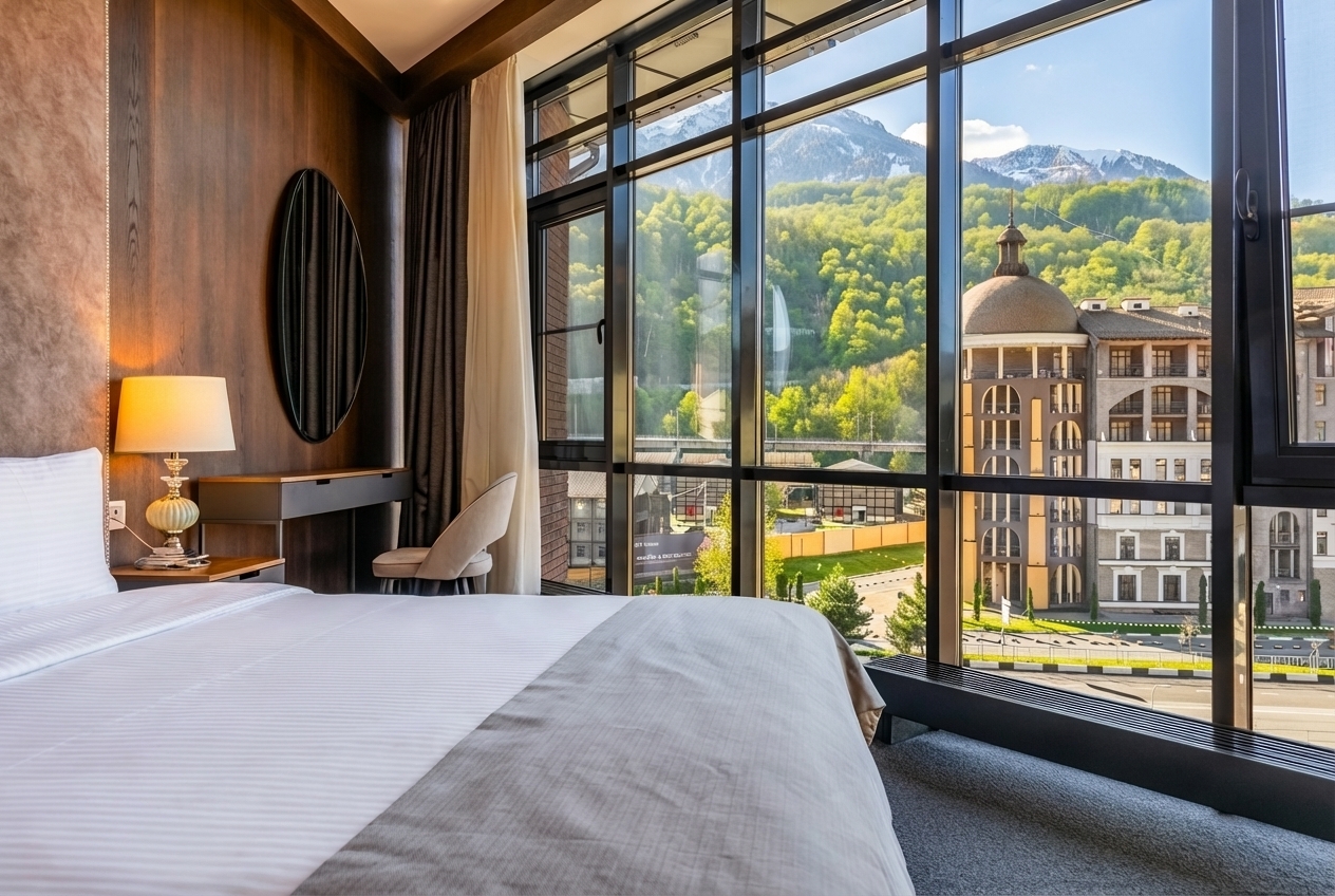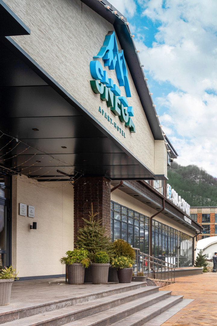 Апарт-отель «Снега» – сочетание изысканного стиля и высококлассного сервиса четырехзвездочного отеля. Апарт-отель находится на высоте 540 м над уровнем моря, в самом центре горнолыжных курортов. Рядом с Апарт-отелем «Снега» находятся Главные горнолыжные курорты страны: «Красная Поляна», «Роза Хутор» и «Газпром».