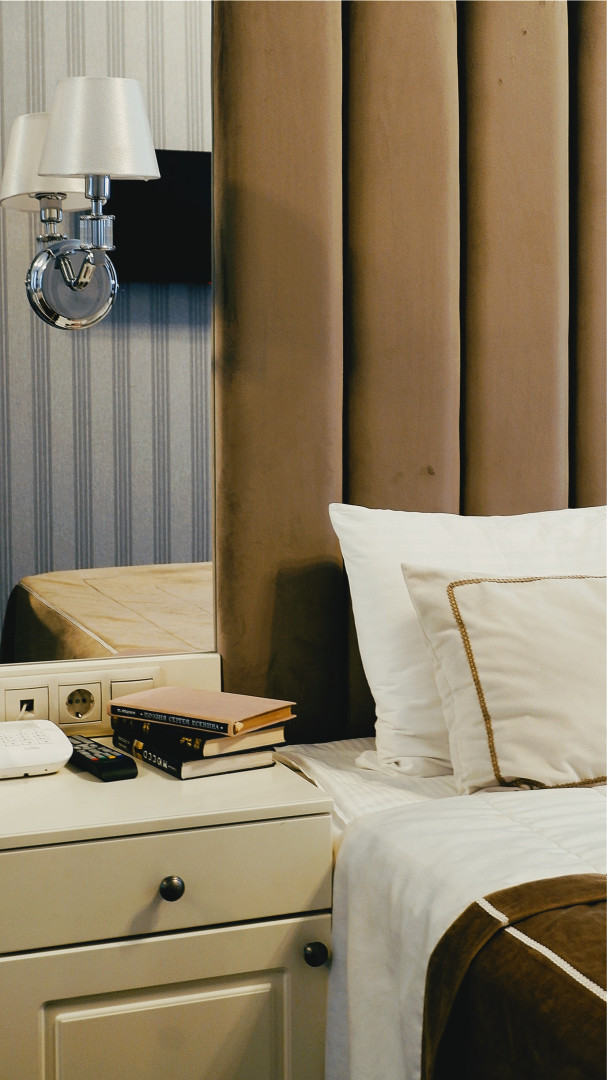 Гостиница предлагает 22 номера различных категорий. В каждом номере: электронный ключ-карта, сейф, кондиционер, телефон, Wi-Fi, холодильник, чайник, ванная комната с душевой кабиной, фен, халат, тапочки, туалетно-косметические принадлежности, утюг.