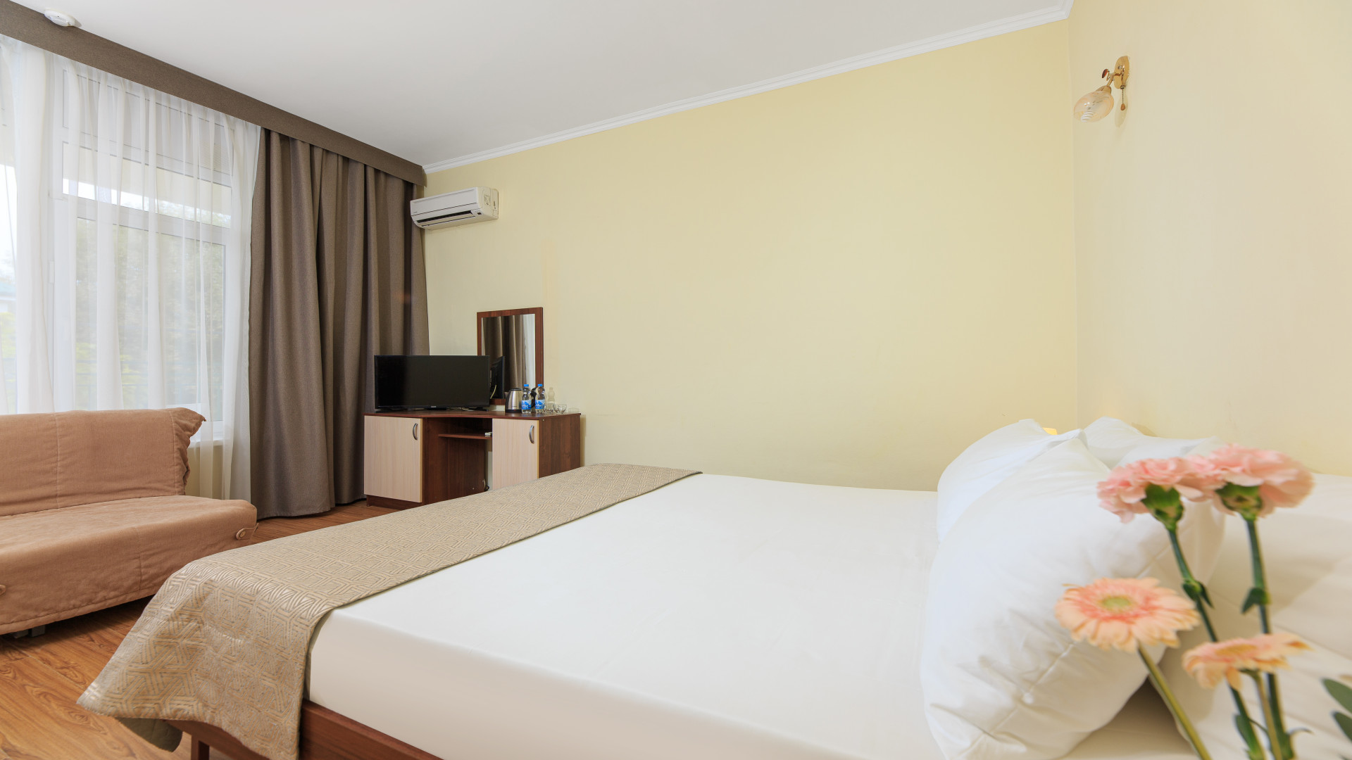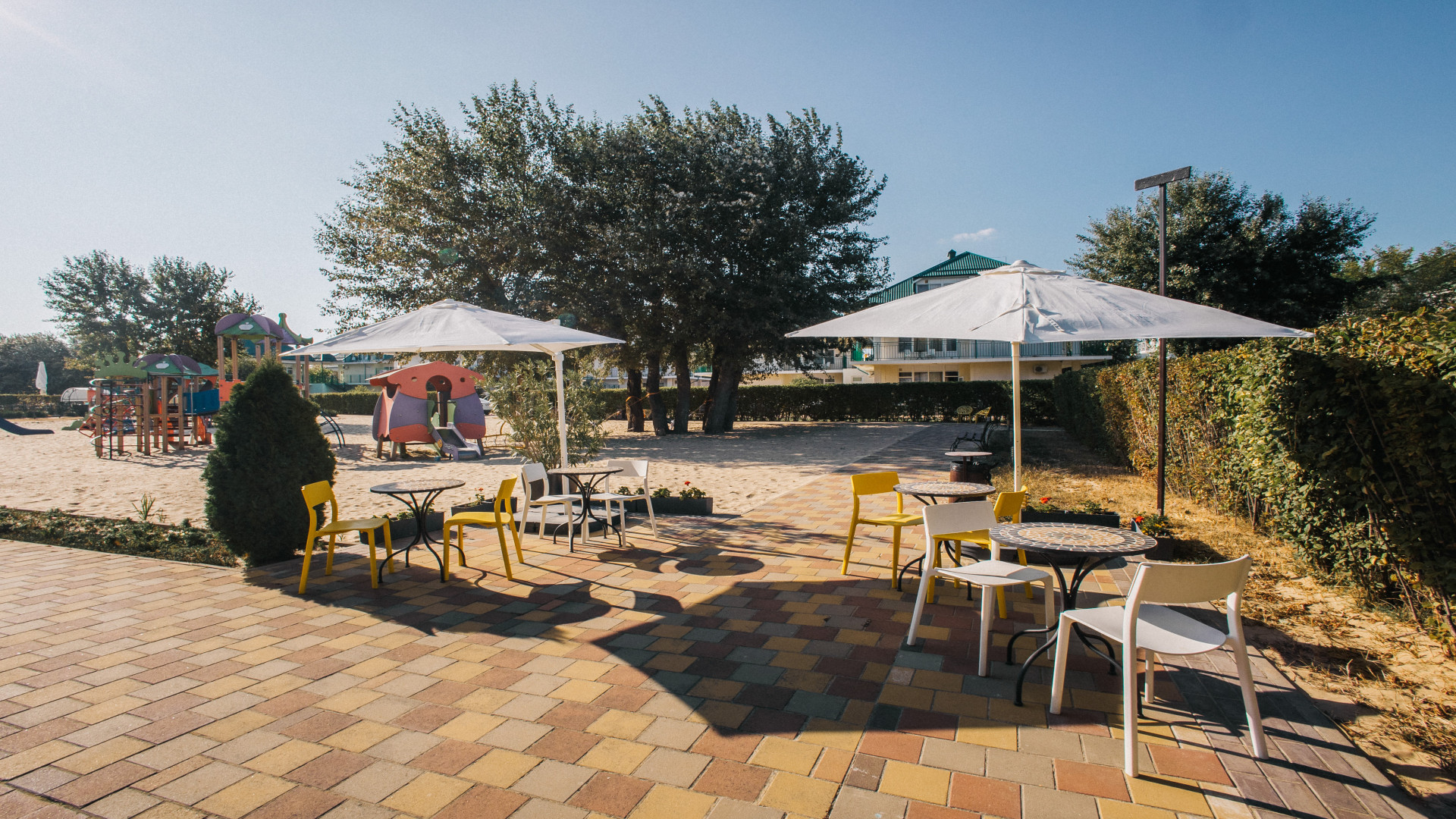 Отель расположен на первой береговой линии, наполнен теплом и уютом, с собственным пляжем, открытым подогреваемым бассейном, живописными барханами и большой ухоженной территорией.