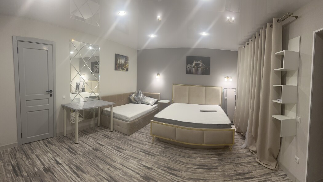 - В номере: душ, туалет, ТВ, холодильник, кондиционер, сейф, фен, мини-кухня, чайная станция, электрочайник, СВЧ-печь, двуспальная кровать, диван (2 раскладных дивана)