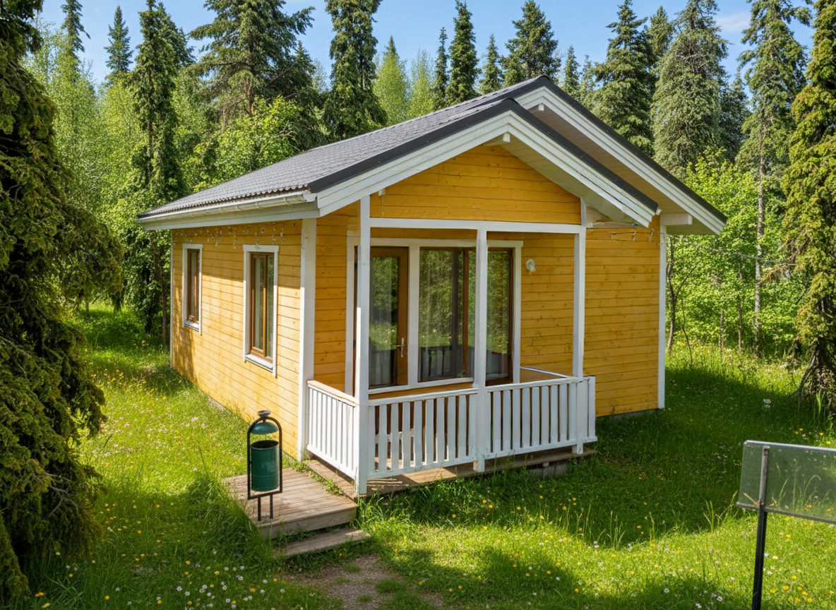 - В коттедже: душ, туалет, холодильник, фен, мини-кухня, электрочайник, СВЧ-печь, двуспальная кровать, кресло (два кресла-кровати), терраса