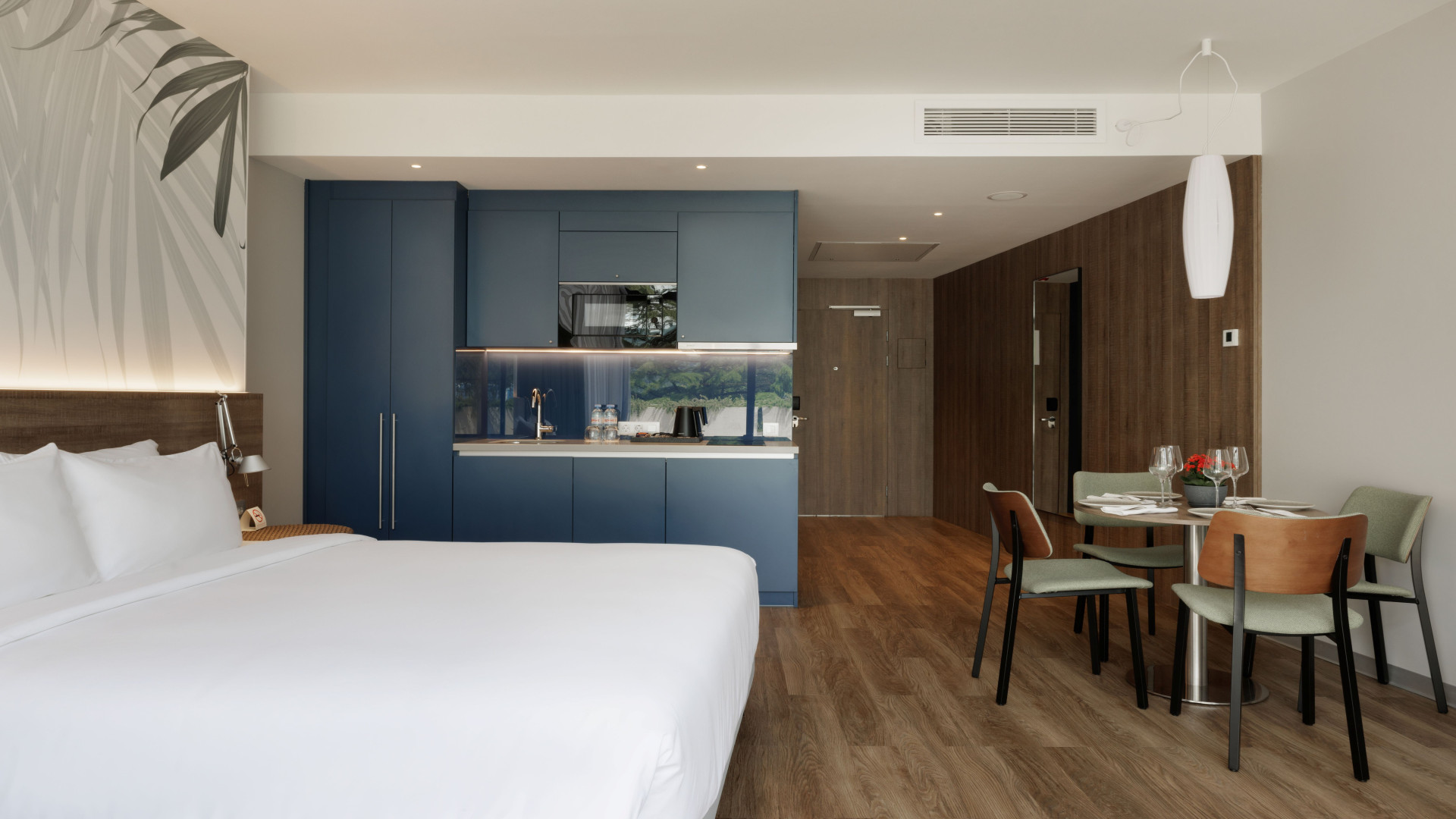 Всё для комфортного проживания: все номера с кухней и балконами, частный пляж и круглогодичные бассейны, SPA и медицинский центр, рестораны, детские пространства и анимация, залы для событий.