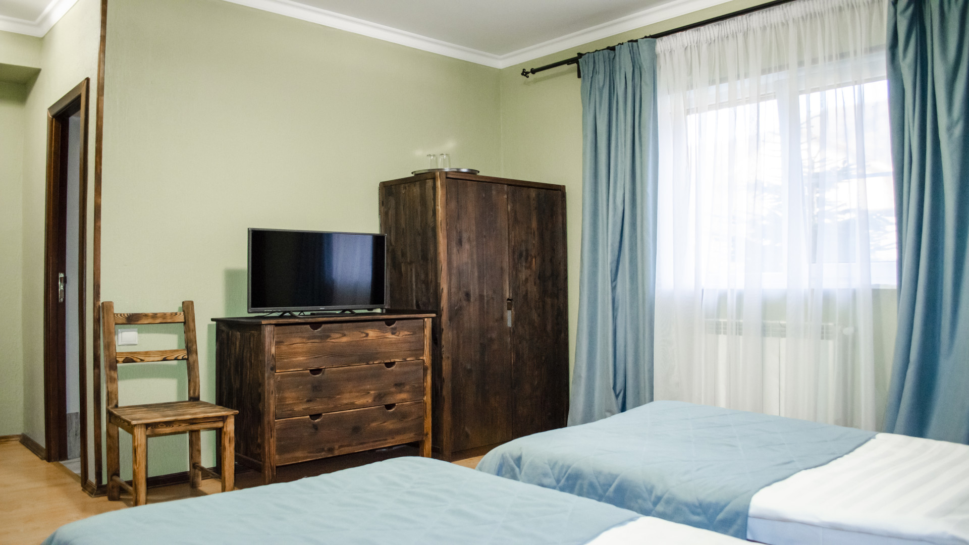 - В номере: душ, туалет, ТВ, холодильник, фен, две раздельные кровати