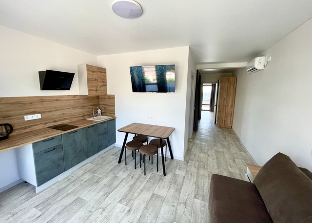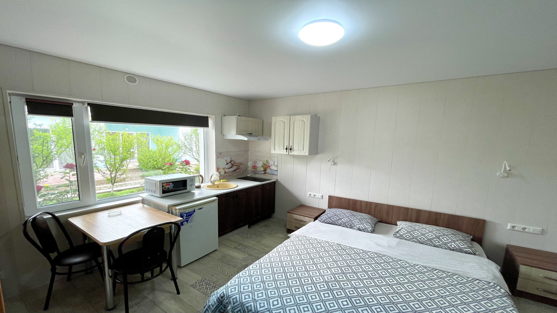 Все номера оборудованы полноценной кухней и кухонными принадлежностями. Продуктовый магазин расположен в 3-х минутах от отеля, а до рынка и аптеки нужно будет прогуляться минут семь.