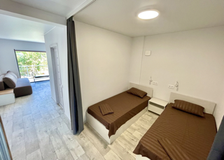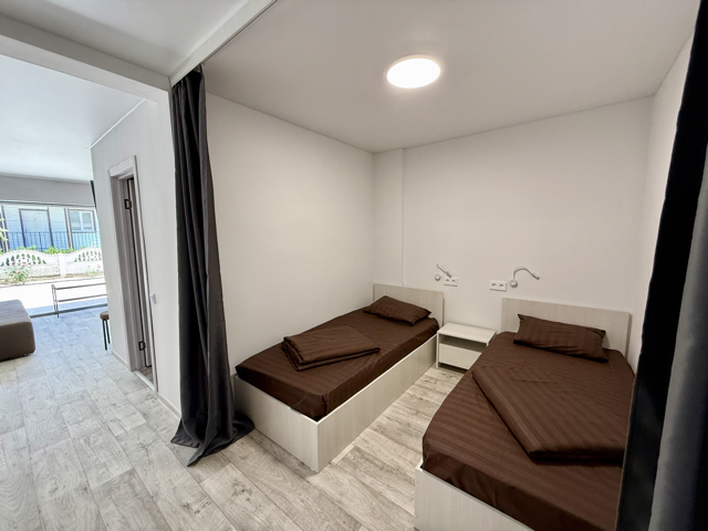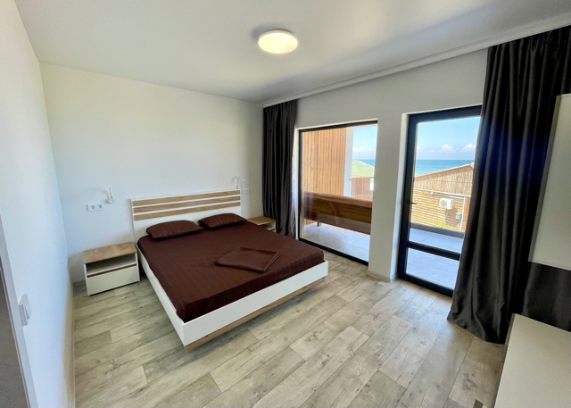 Приглашаем вас отдохнуть на берегу Азовского моря, в отеле «Blue Sea»! Новый отель, построен в 2020 году, расположен вдоль береговой линии, в 10 метрах от пляжа. В номерном фонде нашего отеля преобладают 1-комнатные номера типа «Апартаменты» и «Семейный» , рассчитанные на проживание до 4-х человек в комнате, а также имеются 3х-комнатные номера типа «Люкс» , где могут комфортно разместиться 6 человек. Все номера оборудованы всем необходимым для комфортного отдыха. Гарантирована регулярная уборка в номерах, смена полотенец и постельного белья осуществляется либо по запросу гостей, либо 1 раз в 3 дня.