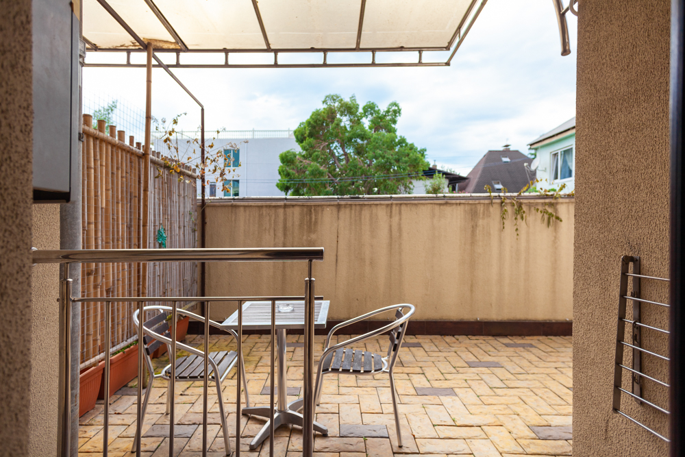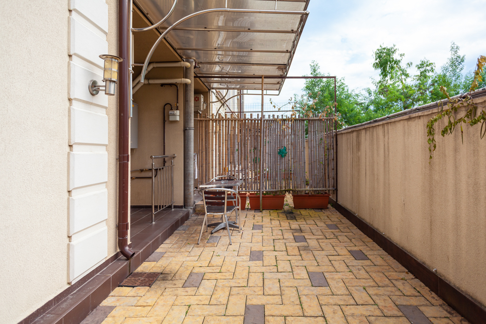 У апартаментов на первом этаже есть прилегающая территория, оборудованная зоной отдыха.