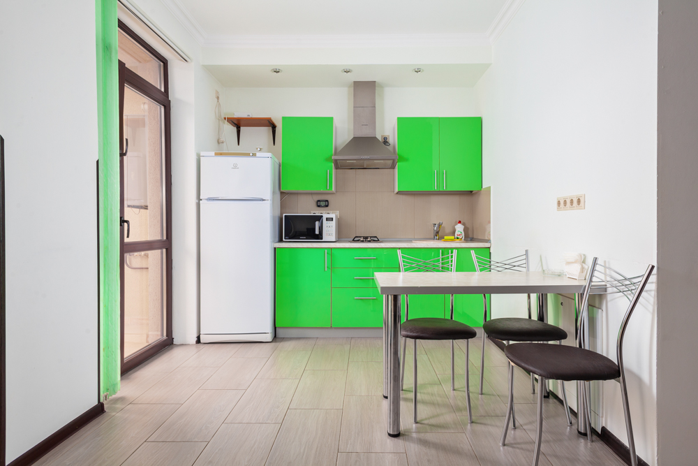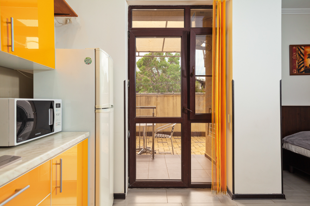 Все номера оборудованы как полноценные квартиры: есть кухня с газовой плитой, микроволновой печью, холодильником, полным комплектом посуды и необходимых кухонных принадлежностей. В каждом номере отдельная ванная комната со