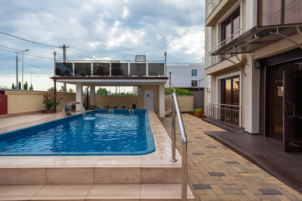 Гости могут пользоваться открытым круглогодичным бассейном с подогревом. Вечером отдыхать в lounge-зоне с уличным кинотеатром. Для встреч с друзьями и общения предусмотрены барная зона и уличная терраса.