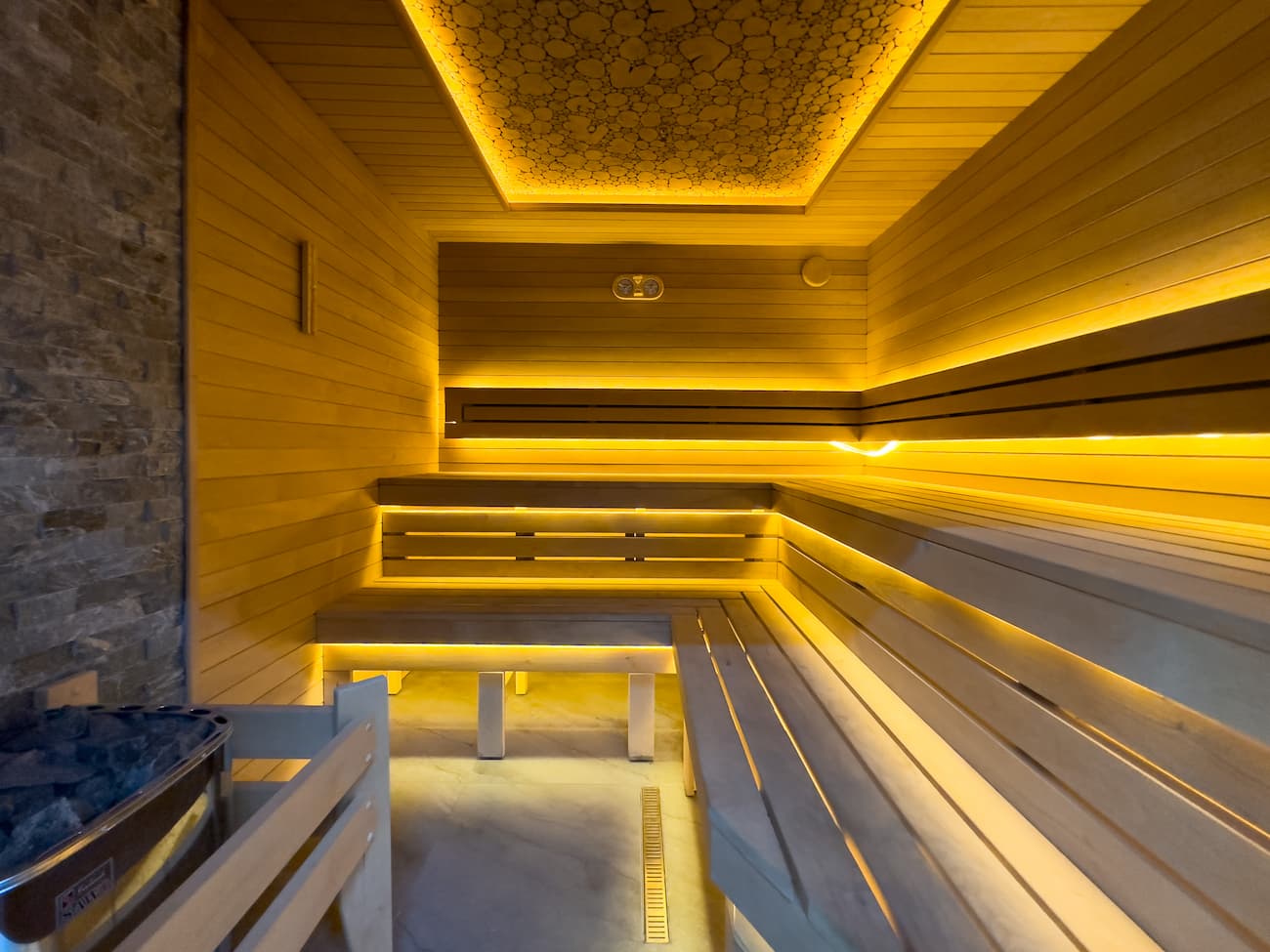 - В номере: душ, туалет, ТВ, холодильник, кондиционер, сейф, фен, телефон, чайная станция, электрочайник, СВЧ-печь, двуспальная кровать, диван, терраса