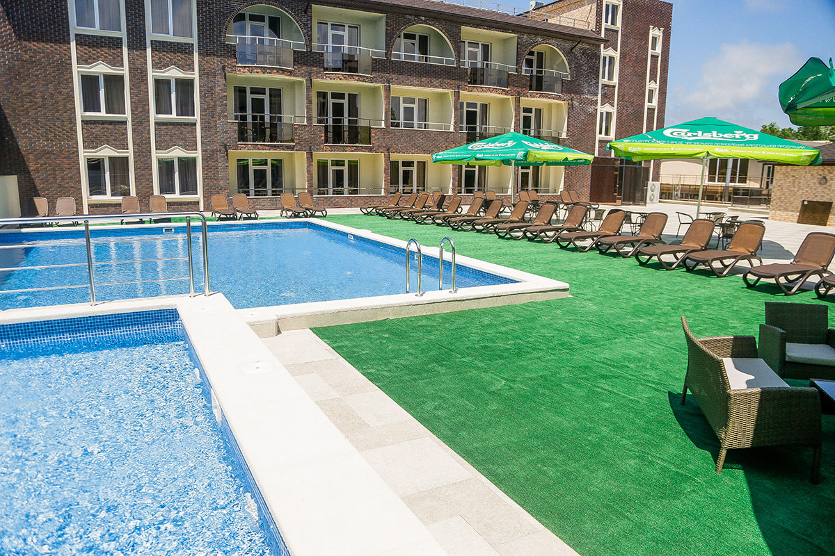 Семейный All Inclusive отель на берегу моря с собственным пляжем, подогреваемыми детским и взрослым бассейнами, ежедневной анимацией, парковкой. Отель расположен на первой береговой линии, в 50 метрах от моря и собственного песчаного пляжа ( 120 м вдоль берега). Комфортные просторные и абсолютно новые номера. В каждом номере просторный балкон с мебелью под ротанг, оба корпуса отеля для Вашего удобства оборудованы лифтами. Питание — 3х разовое ( шведский стол)+промежуточное питание в баре около бассейна (пицца, картошка фри, напитки, мороженое, чай, кофе+ алкоголь( пиво, сухие и полусладкие вина местных производителей), анимация, тренажерный зал, детская игровая комната и детская площадка).