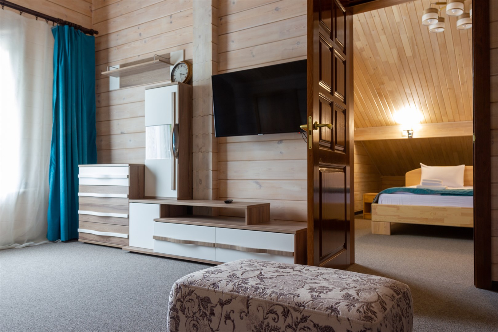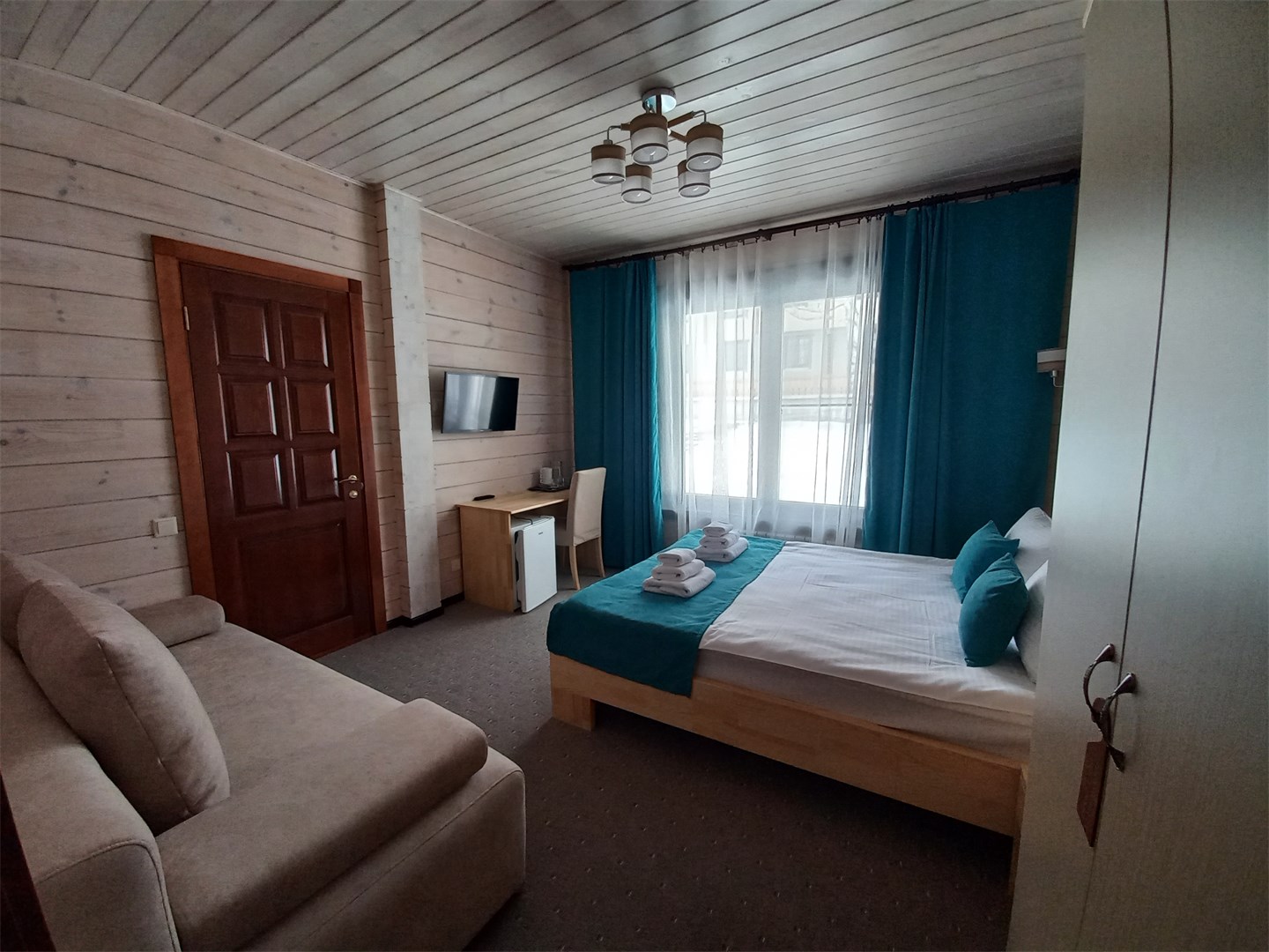Гостиничный комплекс "Олимп-Парк" - это экологический комплекс расположенный на вершине горы. Высота 800 метров над уровнем моря в совокупности с кристально-чистым горным воздухом способствует отличному самочувствию, восстановлению дыхательных путей и положительному заряду энергией на весь год. Из окон зданий комплекса открывается панорамный вид на горнолыжный курорт "Мишина Гора". Все здания гостиничного комплекса выполнены из натуральной дышащей древесины, а мебель и предметы интерьера созданы из натурального дерева.