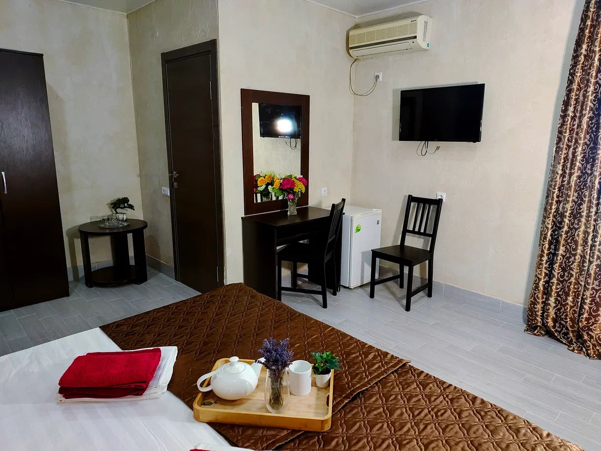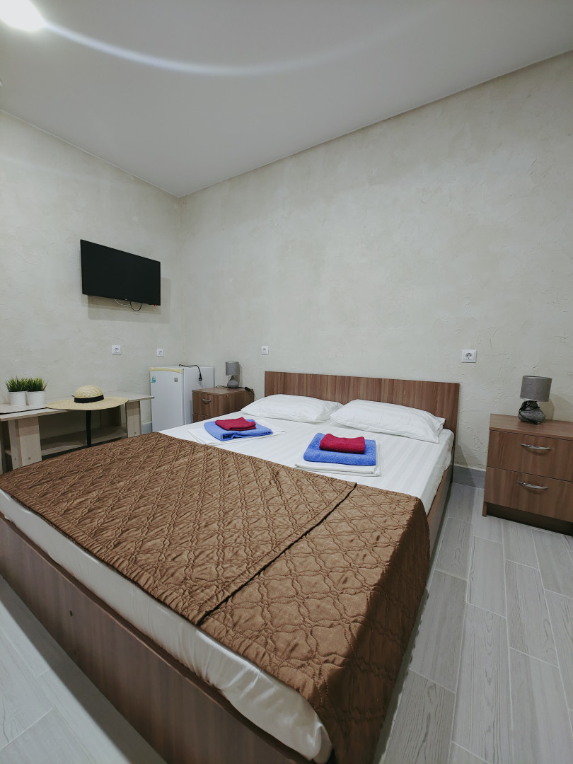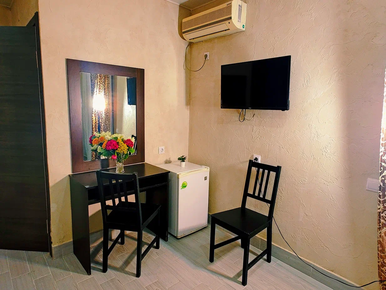 - В номере: душ, туалет, ТВ, холодильник, кондиционер, фен, двуспальная кровать