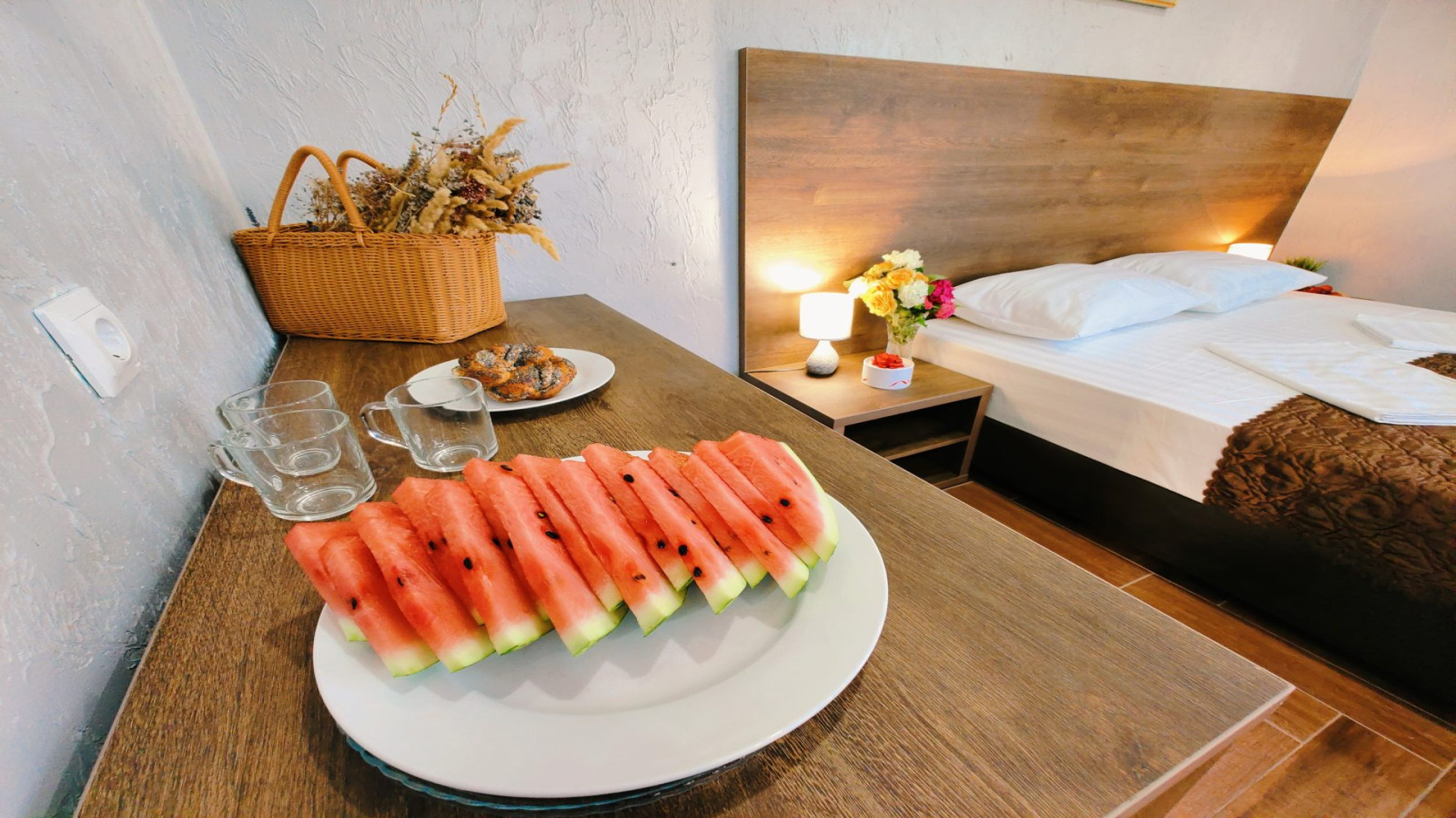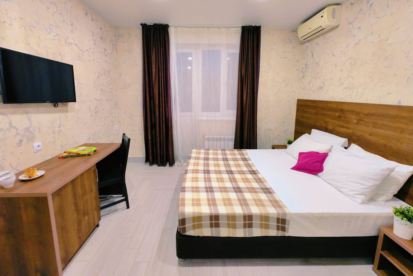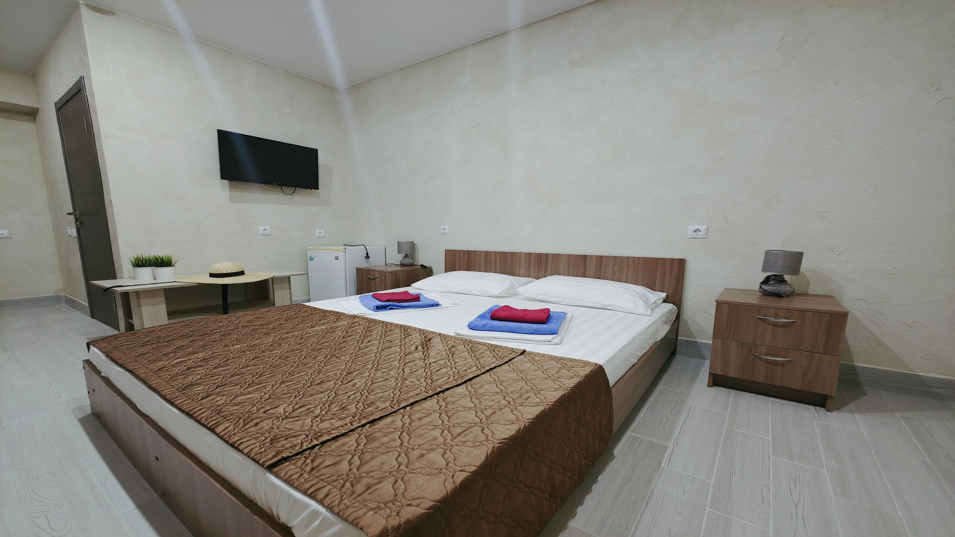 - В номере: душ, туалет, ТВ, холодильник, кондиционер, двуспальная кровать