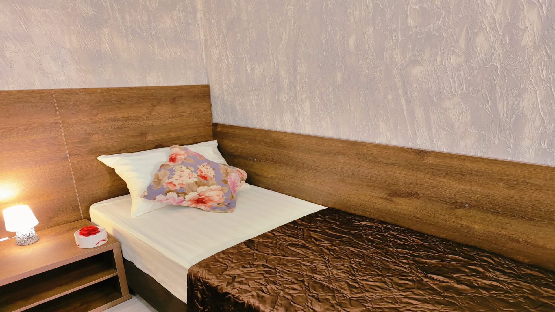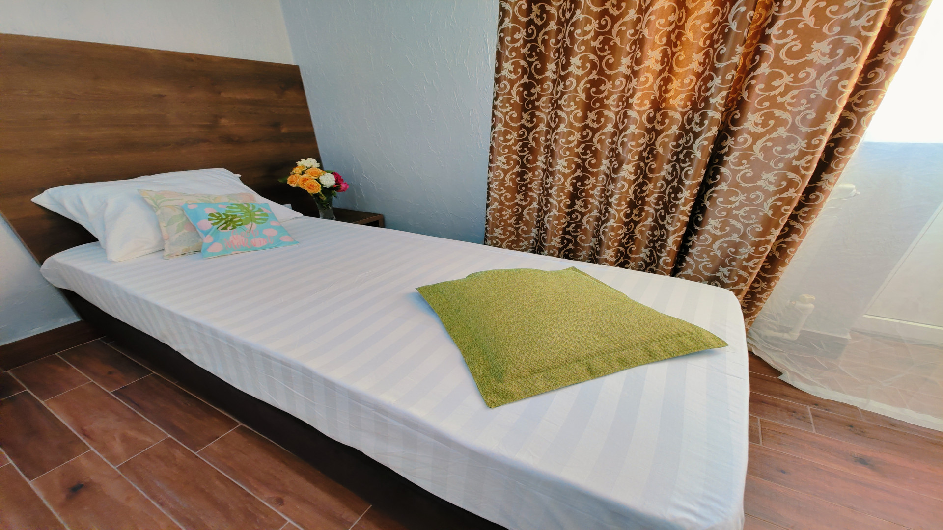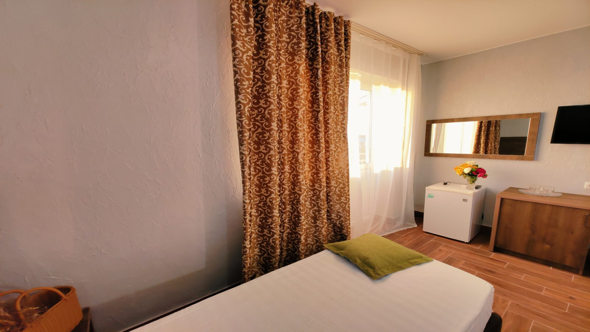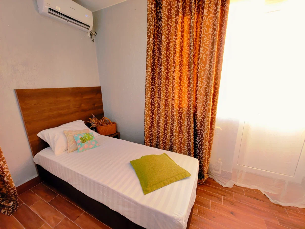 - В номере: душ, туалет, ТВ, холодильник, кондиционер, фен, односпальная кровать