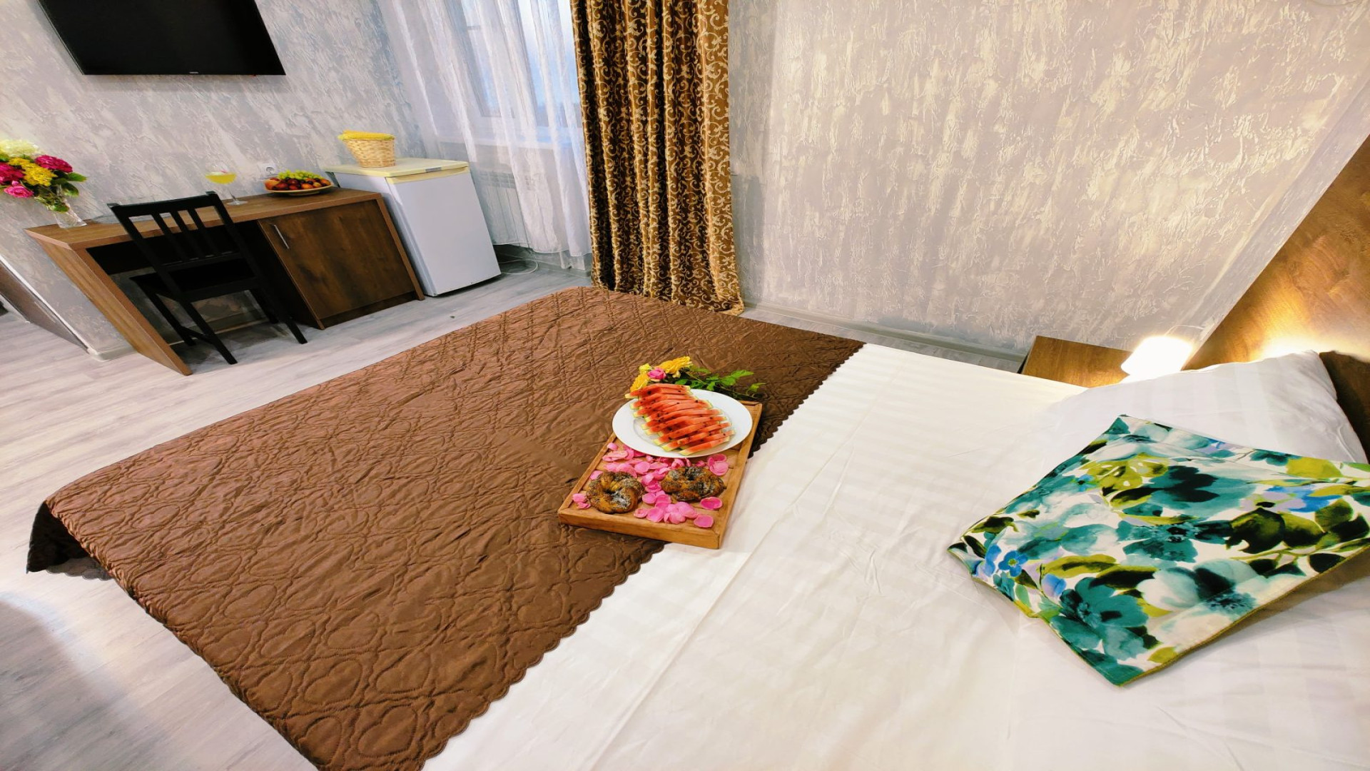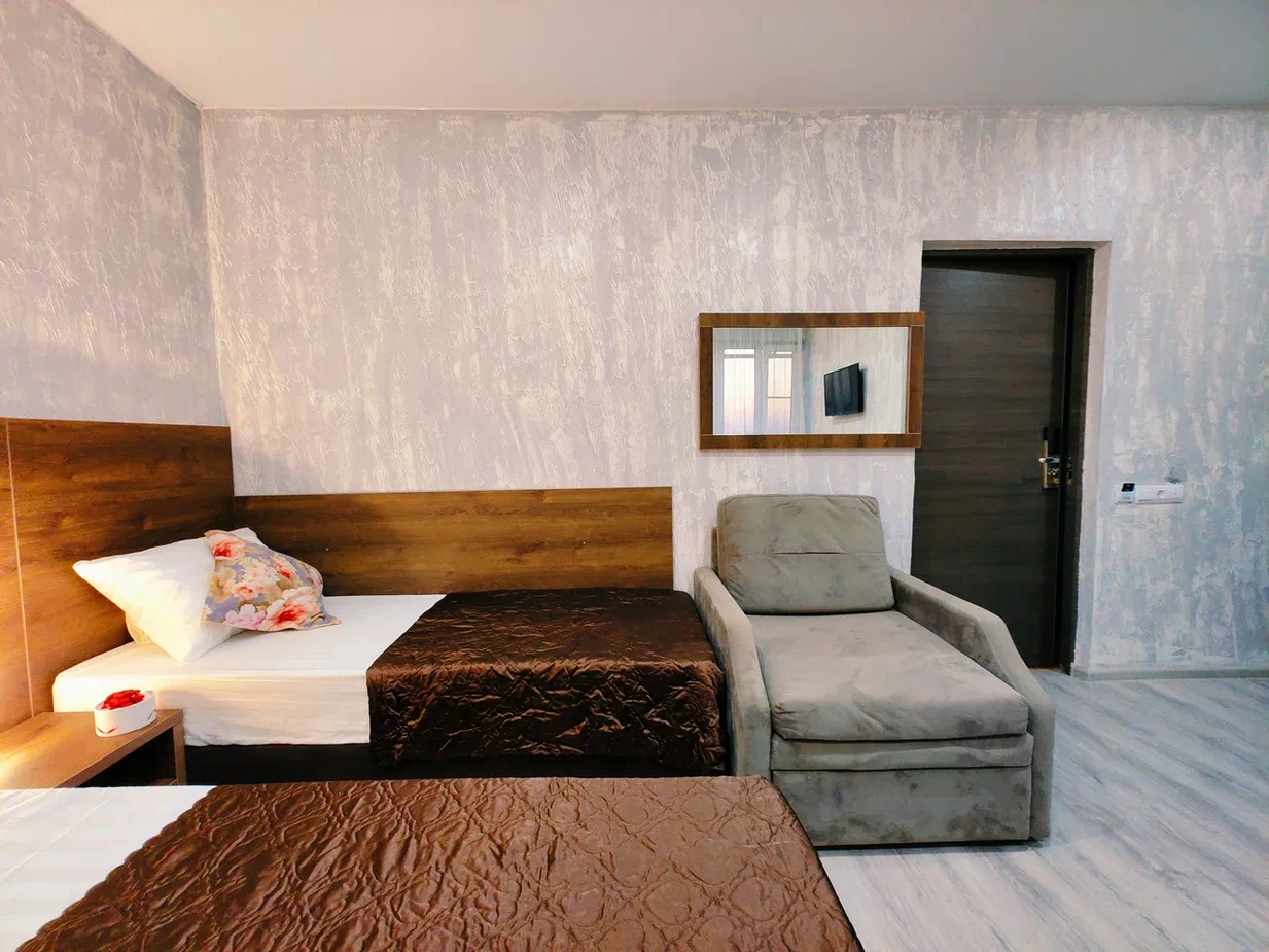 - В номере: душ, туалет, ТВ, холодильник, двуспальная кровать (две кровати), кресло (раскладное)