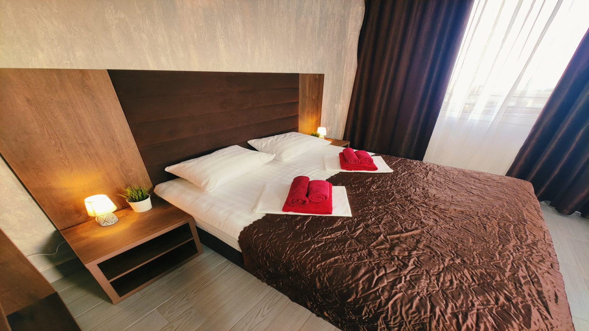 - В номере: душ, туалет, холодильник, кондиционер, двуспальная кровать, балкон