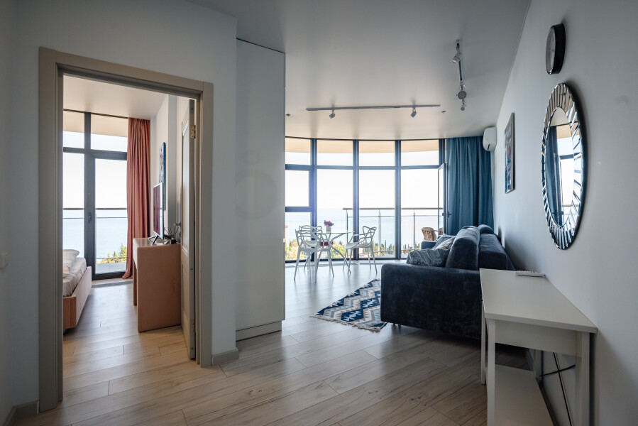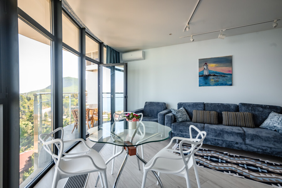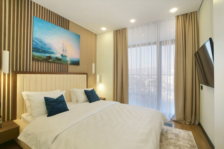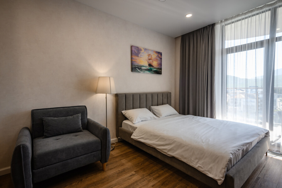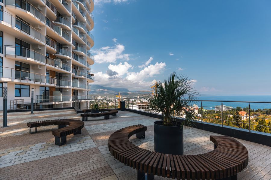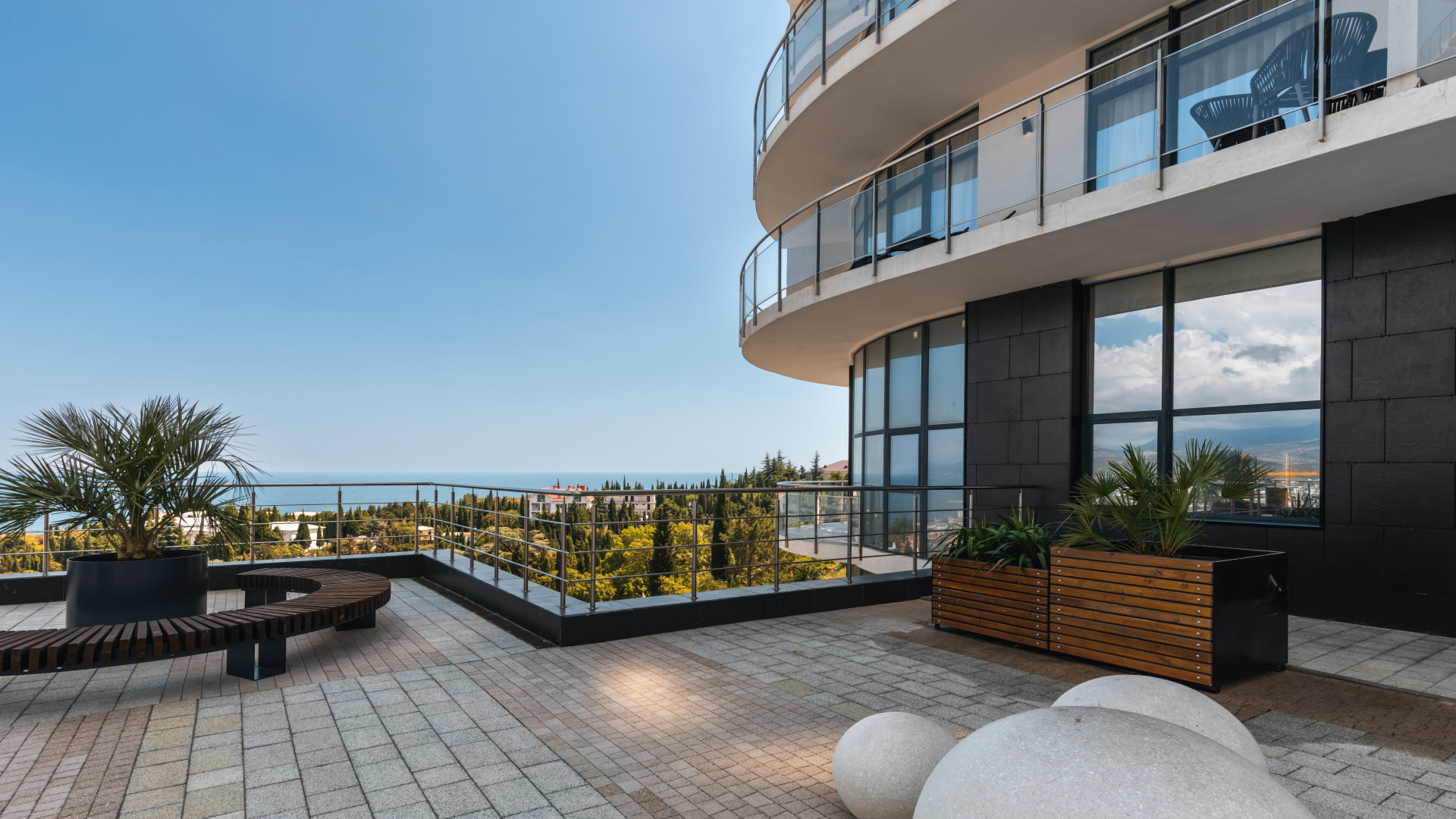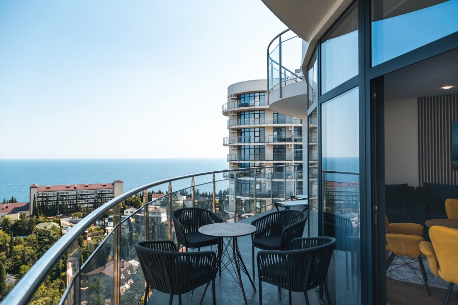 Апарт-отель "Крымская Резиденция" удобно расположился в престижном районе Алушты – Профессорском уголке. Эта местность славится приятным климатом, просторными пляжами и умиротворенной обстановкой. Здесь также выгодно сочетаются расположение и транспортная развязка: неподалеку есть кафе, магазины первой необходимости, музей Ивана Шмелева, живописная Миндалевая роща, до центра города можно добраться за пять минут, а до основных достопримечательностей Южного берега Крыма – до дворцов Воронцова и Ливадии, знаменитого «Ласточкиного гнезда», Массандровского парка и Никитского ботанического сада – всего за час езды. Отель занимает современное здание, являющееся частью элитного апарт-комплекса "Крымская Резиденция". Гостям предлагаются элегантные и уютные апартаменты, каждый из которых имеет собственную террасу с захватывающими видами на горы, море и зелень окрестностей. В каждой квартире есть мини-кухня, оснащенная холодильником, чайником, микроволновой печью и посудой, ванная комната с душевой кабиной, стиральной машиной, феном, а также предоставлены косметические принадлежности. Для комфортного отдыха предусмотрена зона для барбекю и подземный паркинг.