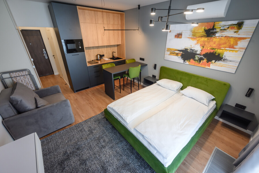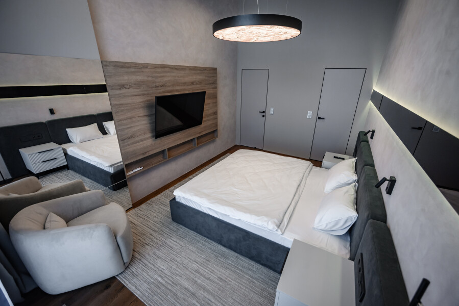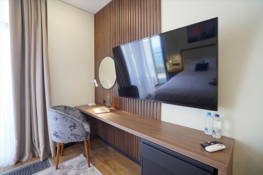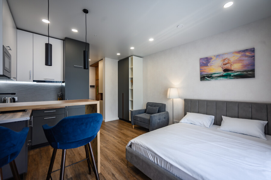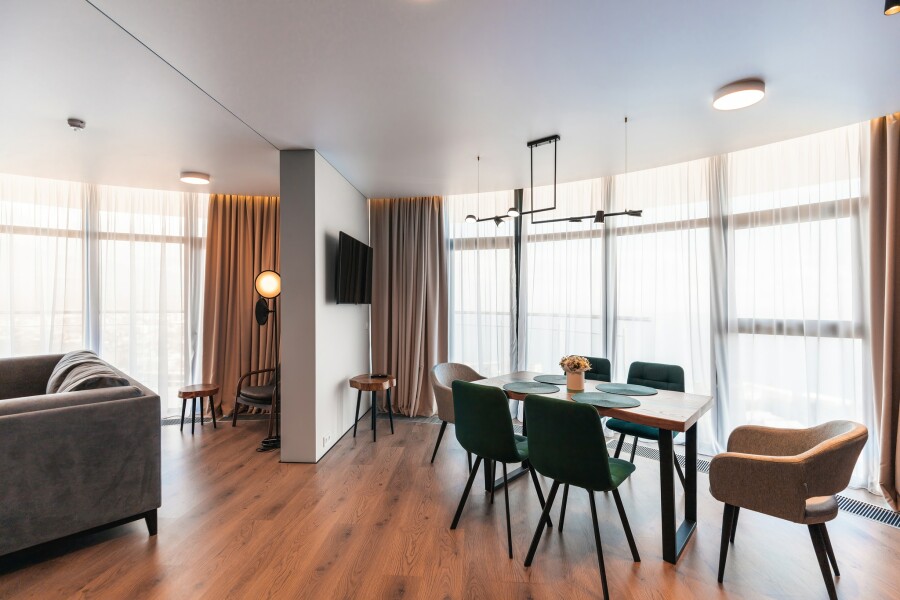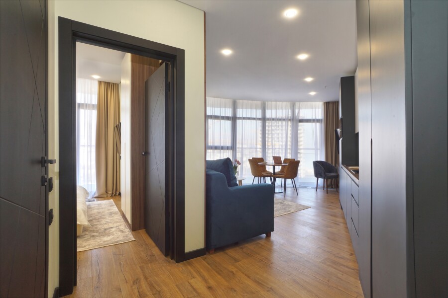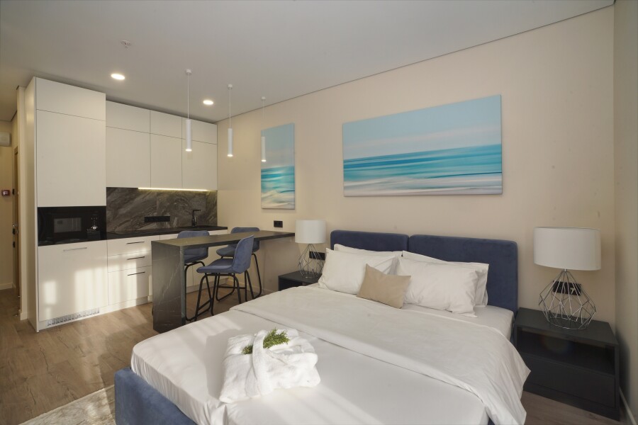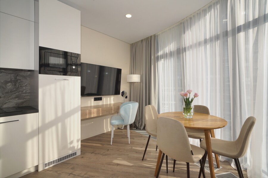 Апарт-отель "Крымская Резиденция" удобно расположился в престижном районе Алушты – Профессорском уголке. Эта местность славится приятным климатом, просторными пляжами и умиротворенной обстановкой. Здесь также выгодно сочетаются расположение и транспортная развязка: неподалеку есть кафе, магазины первой необходимости, музей Ивана Шмелева, живописная Миндалевая роща, до центра города можно добраться за пять минут, а до основных достопримечательностей Южного берега Крыма – до дворцов Воронцова и Ливадии, знаменитого «Ласточкиного гнезда», Массандровского парка и Никитского ботанического сада – всего за час езды. Отель занимает современное здание, являющееся частью элитного апарт-комплекса "Крымская Резиденция". Гостям предлагаются элегантные и уютные апартаменты, каждый из которых имеет собственную террасу с захватывающими видами на горы, море и зелень окрестностей. В каждой квартире есть мини-кухня, оснащенная холодильником, чайником, микроволновой печью и посудой, ванная комната с душевой кабиной, стиральной машиной, феном, а также предоставлены косметические принадлежности. Для комфортного отдыха предусмотрена зона для барбекю и подземный паркинг.