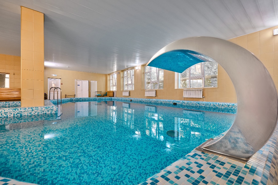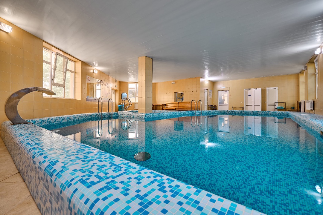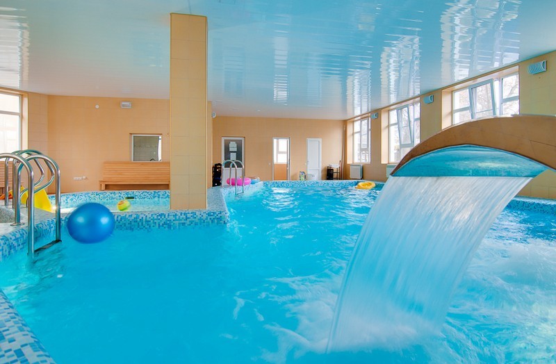 • крытый бассейн с подогревом, водопадом, гейзером, противотоком