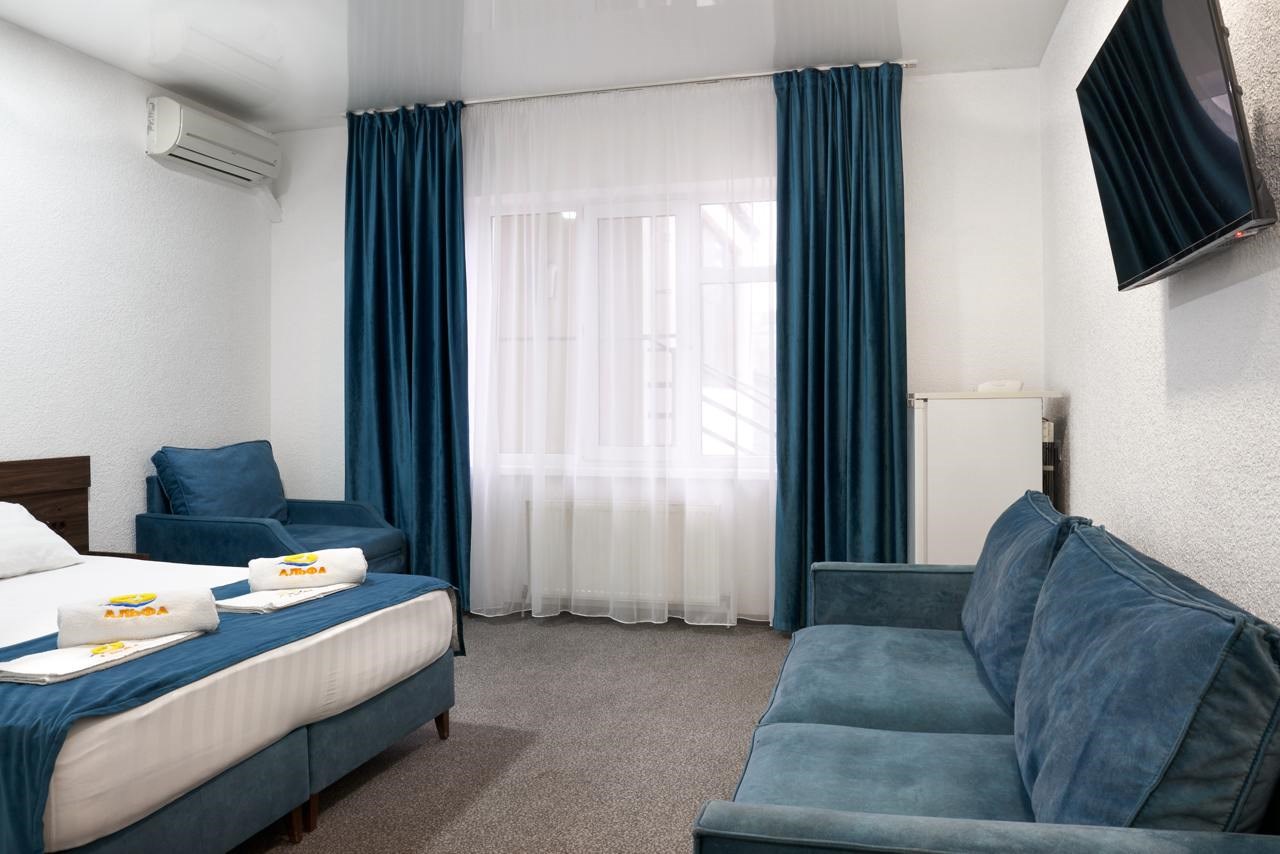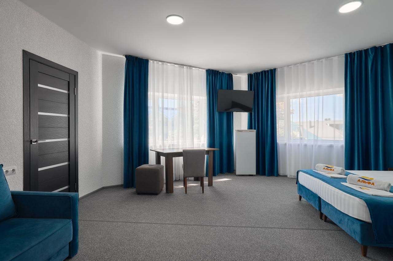 Гостиница Альфа расположена в 150 метрах от моря, на живописном побережье Черного моря в городе курорте Анапа, в самом центре Пионерского проспекта (район Джемете). Все условия в гостинице Альфа рассчитаны для отдыха с детками: батут, детский городок, тематический сказочный парк, бассейн для малышей ( подогреваемый ), анимационная программа каждый день. Бесплатно предоставляются: коляски, кроватки, детские стульчики, горшки, ванночки.
