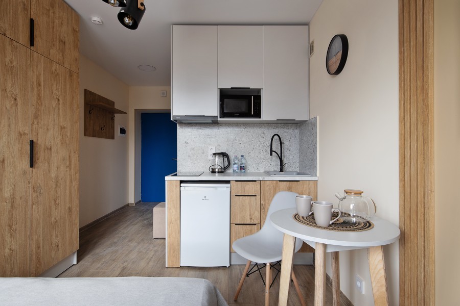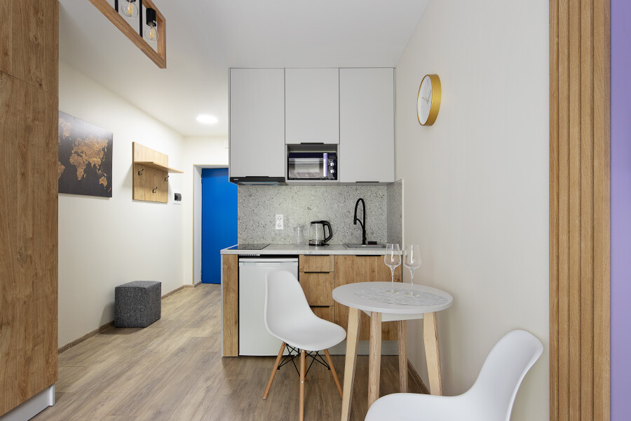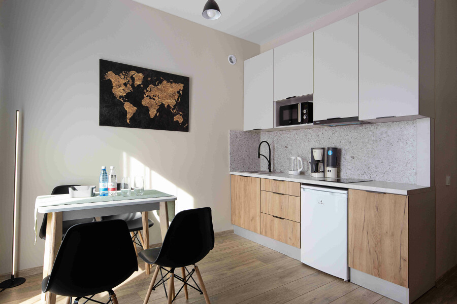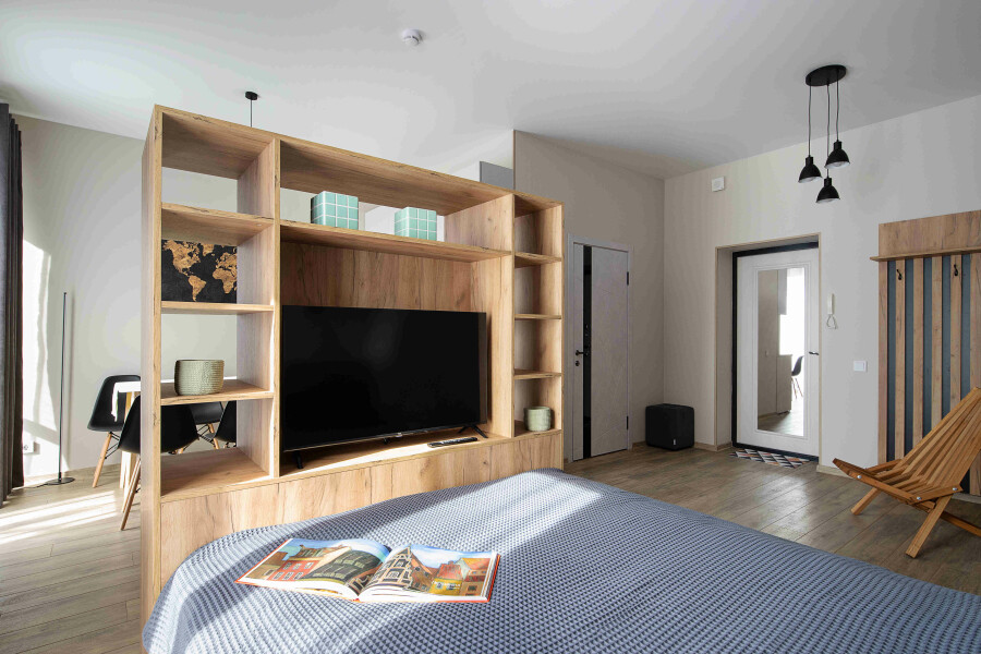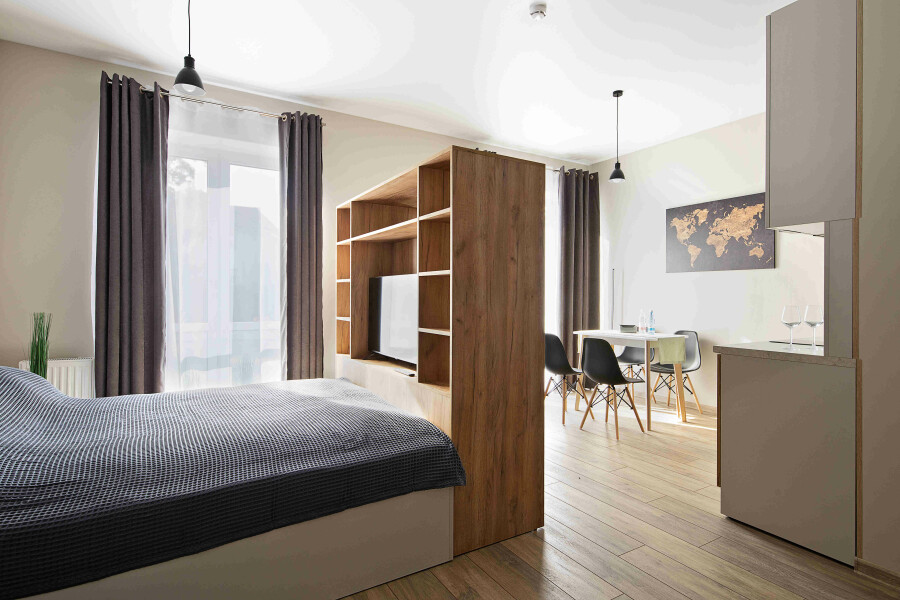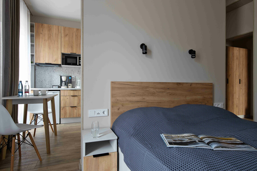Современные апартаменты с кухней, ванной, техникой, посудой, комфортной кроватью и быстрым интернетом сделают ваш отдых приятным.