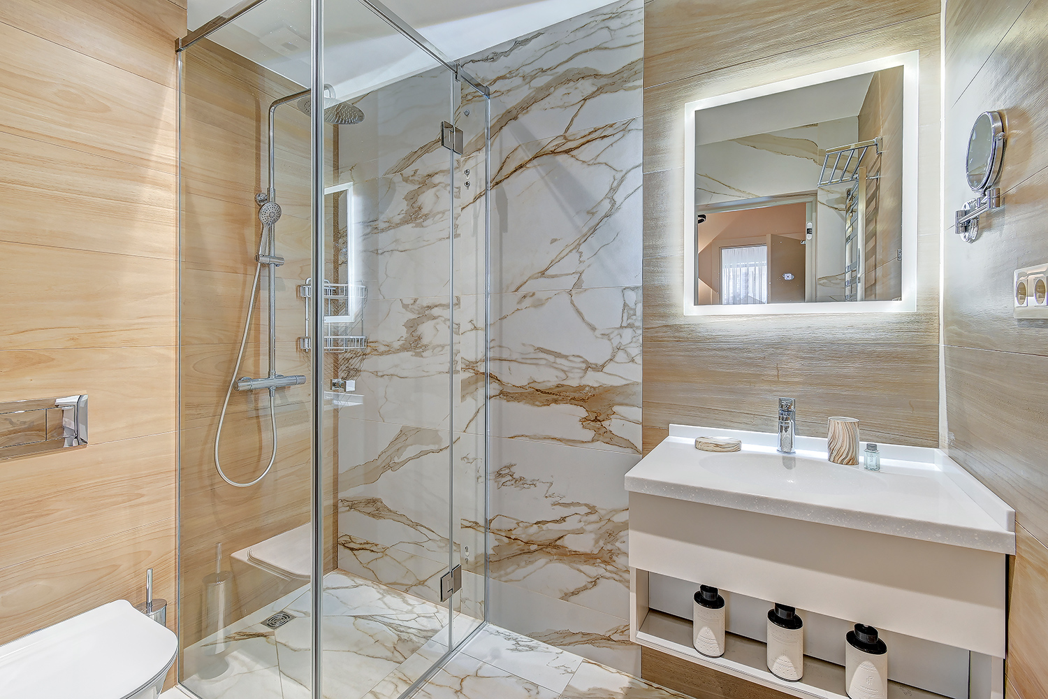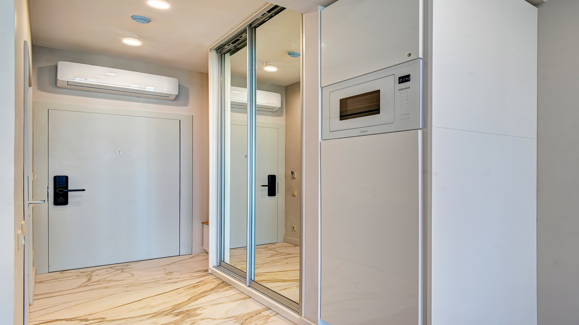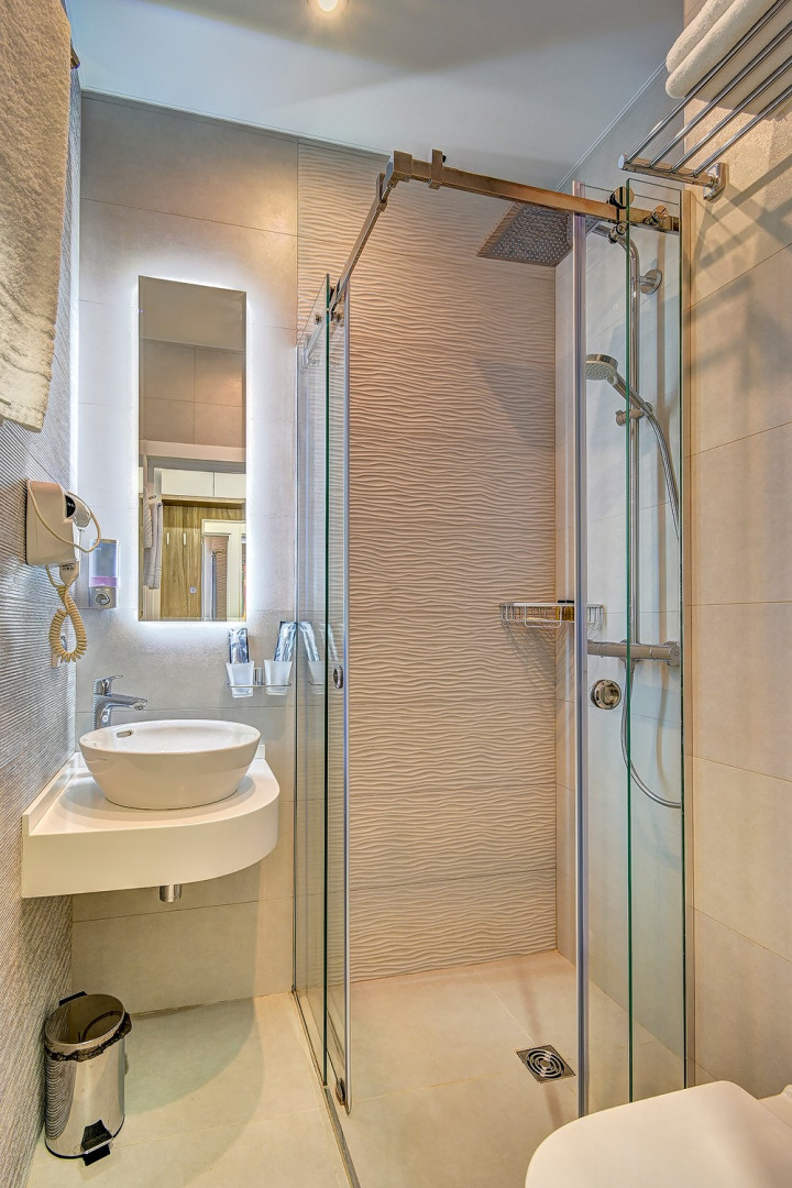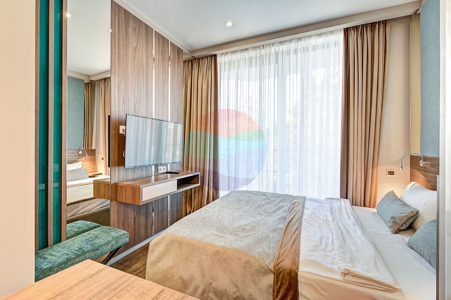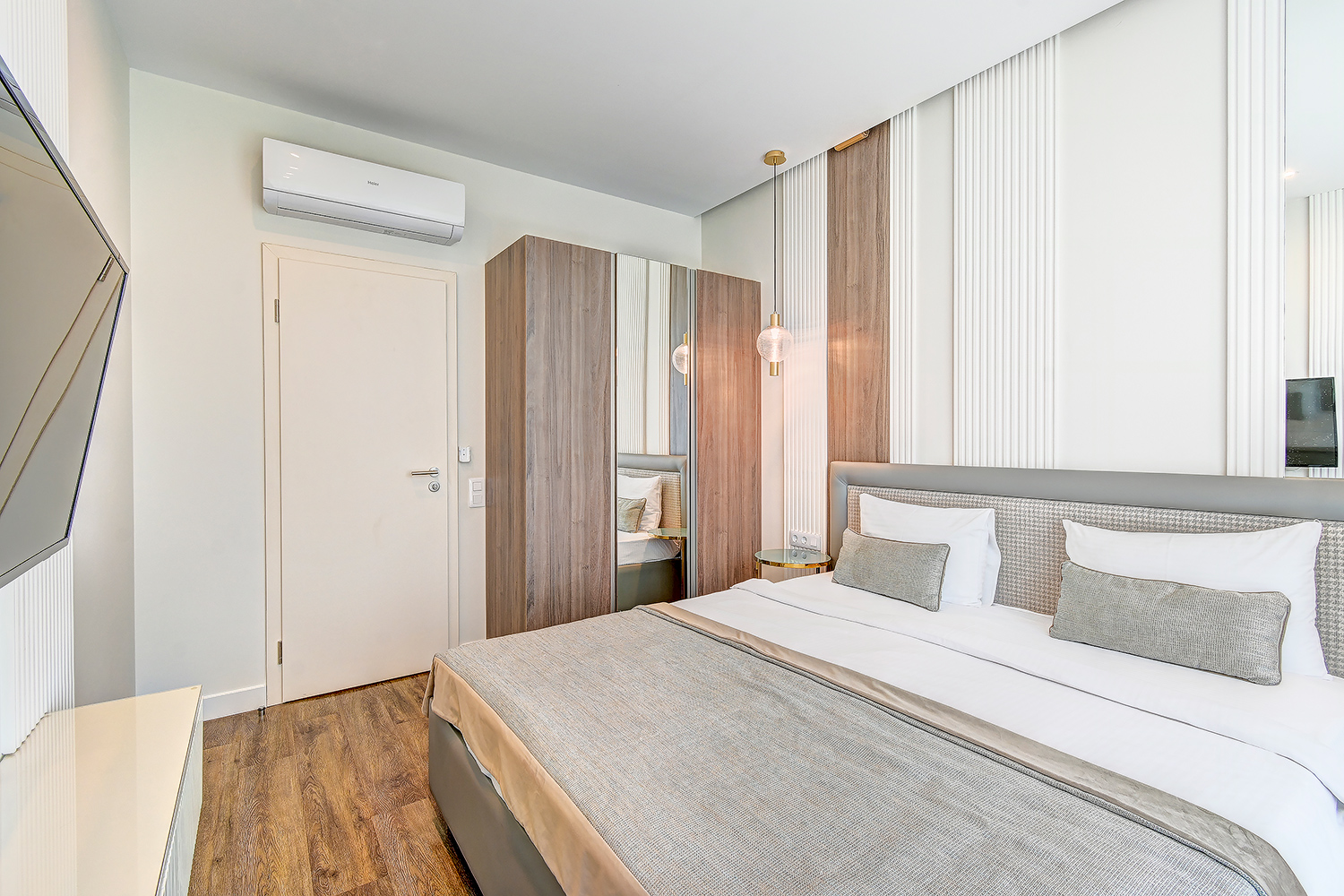 - В номере: душ, туалет, ТВ, холодильник, кондиционер, сейф, фен, телефон, мини-кухня, чайная станция, электрочайник, СВЧ-печь, двуспальная кровать, диван, балкон