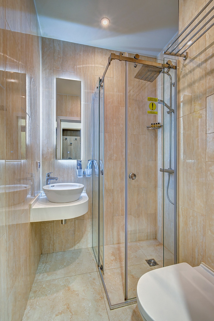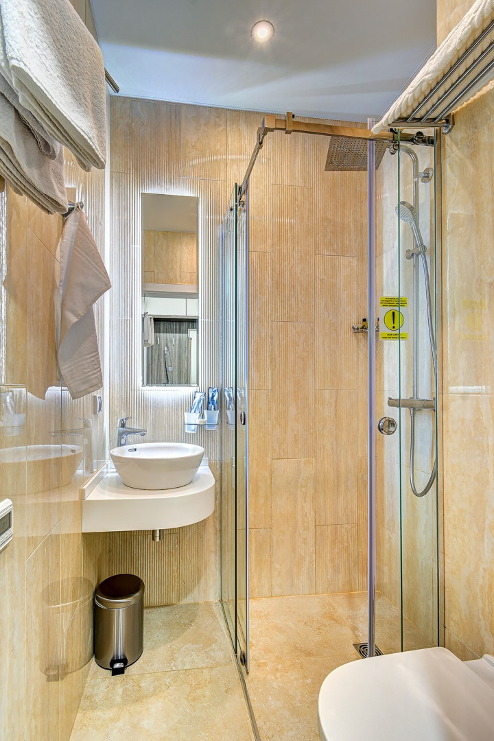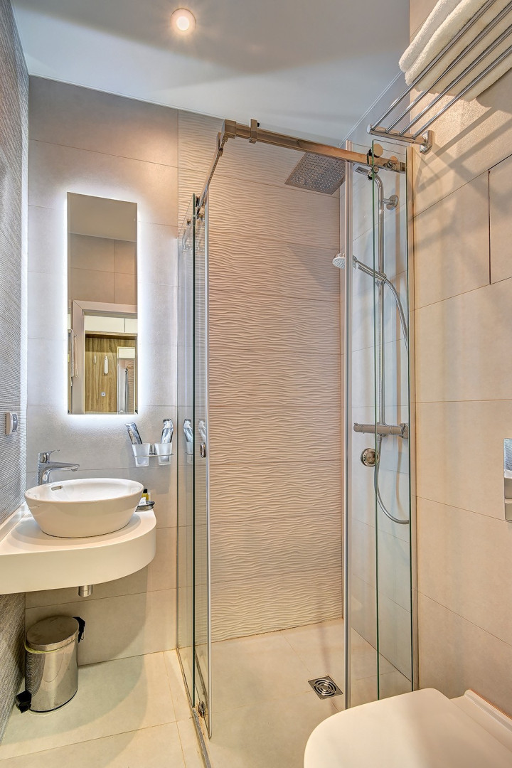 - В номере: душ, туалет, ТВ, кондиционер, мини-кухня, электрочайник, диван, балкон