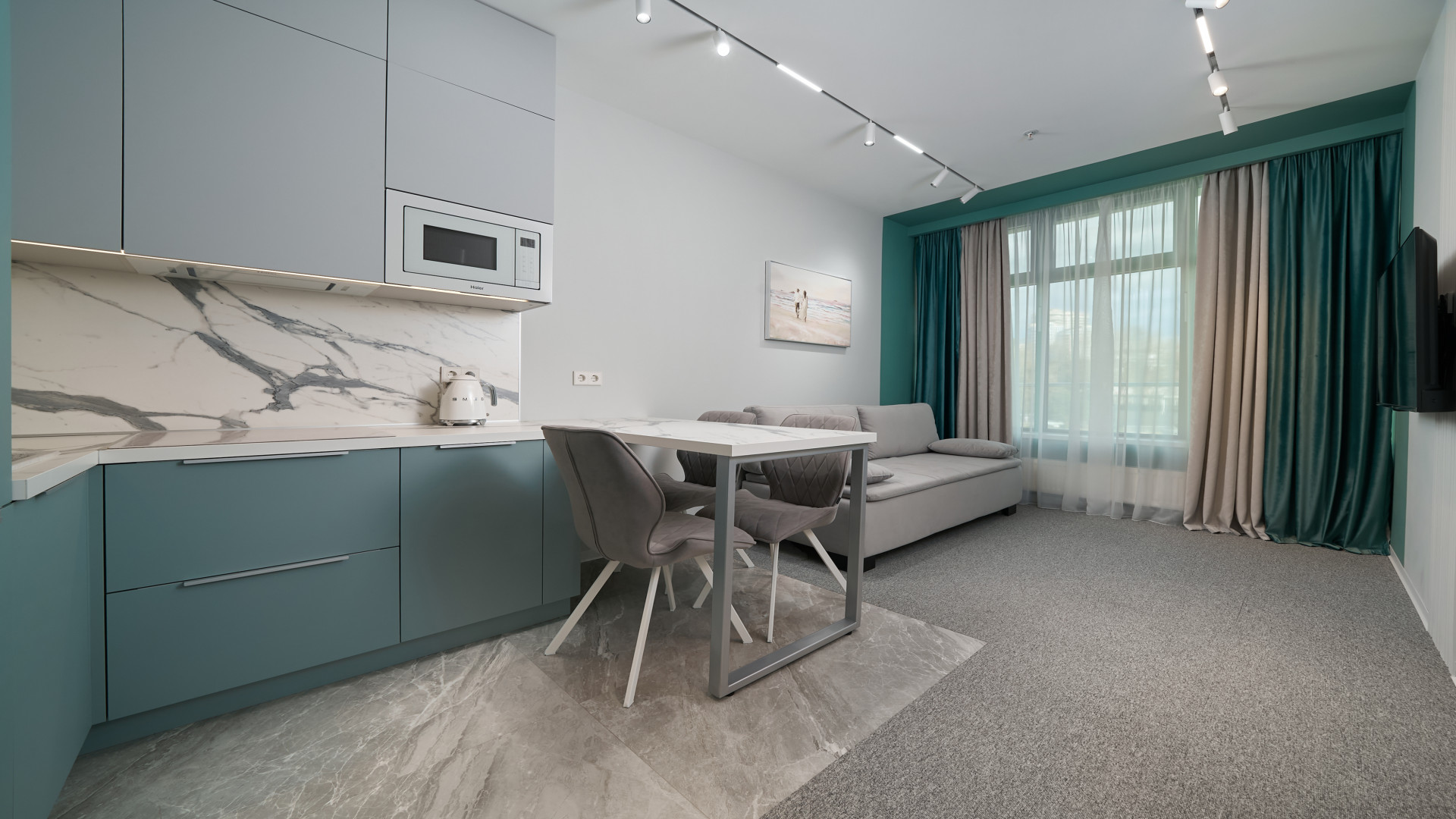 Апартаменты подходят как для деловых поездок, так и для семейного отдыха. Просторные номера с балконами и захватывающими видами на море и город. Комфортабельные апартаменты оснащены балконом, ванной комнатой, гардеробной и кухней.