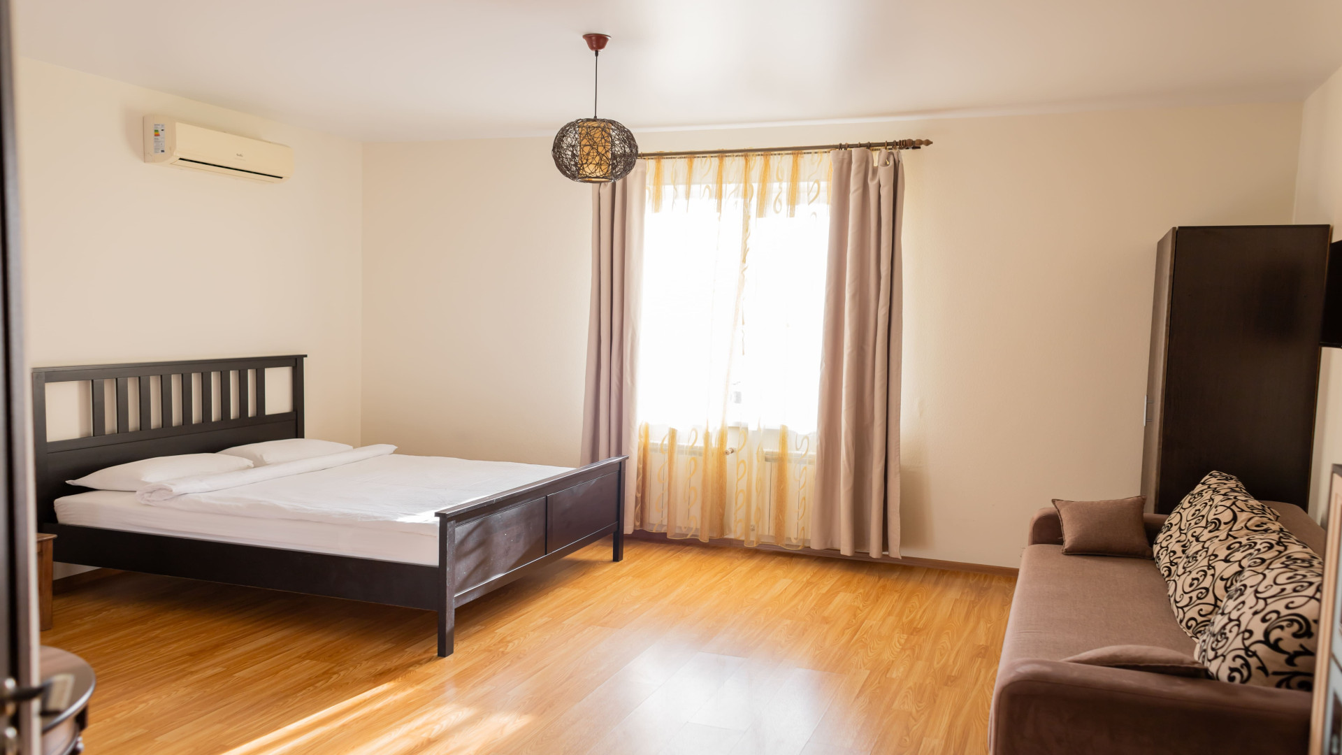 - В номере: душ, туалет, ТВ, холодильник, кондиционер, фен, мини-кухня, электрочайник, двуспальная кровать, диван (2), балкон