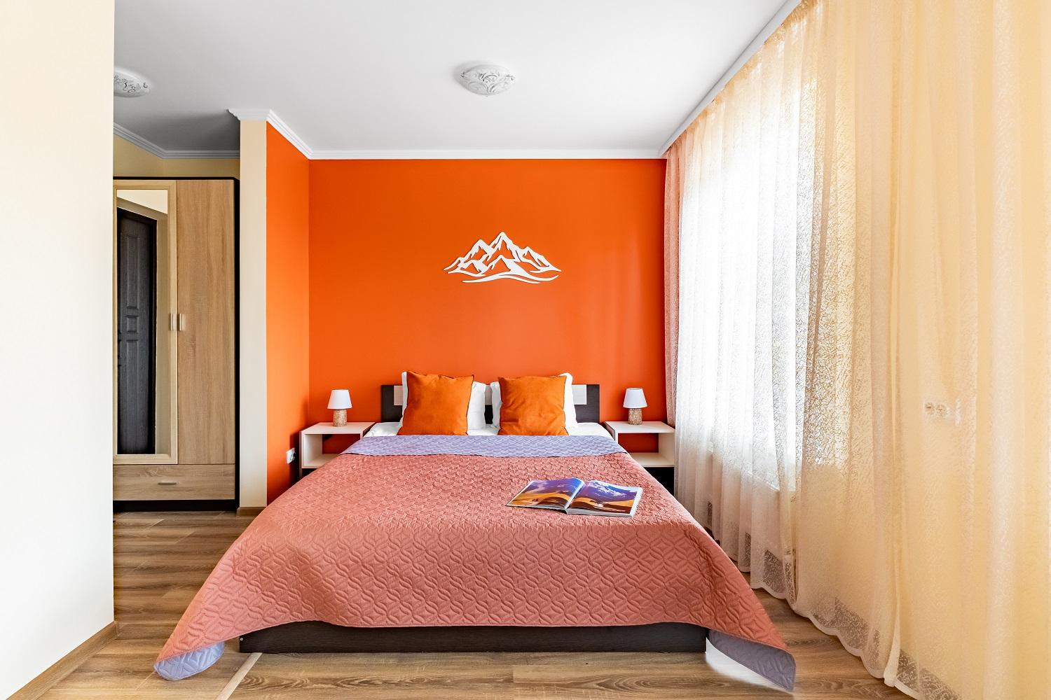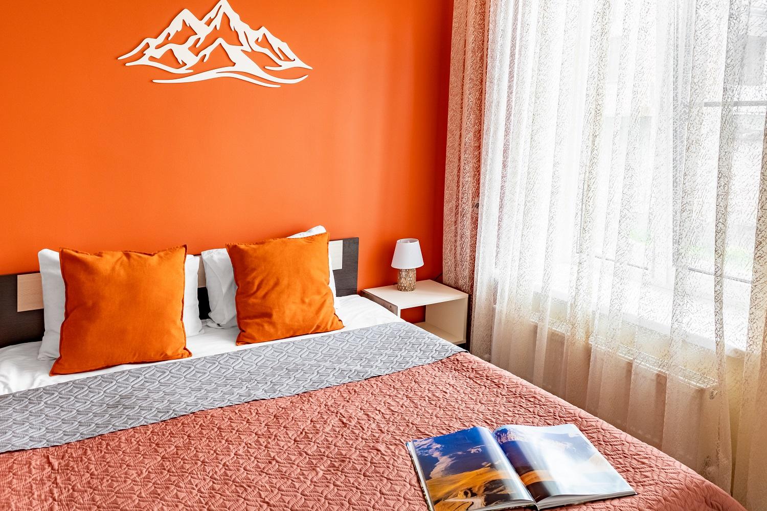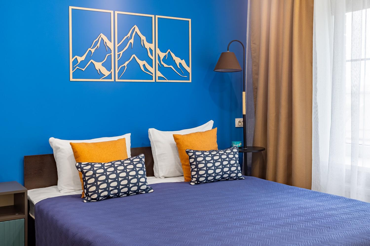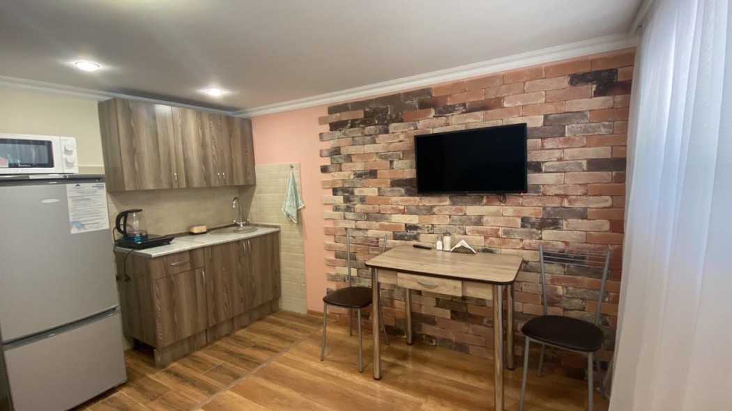 - В номере: туалет, ТВ, холодильник, кондиционер, фен, мини-кухня, электрочайник, СВЧ-печь, двуспальная кровать