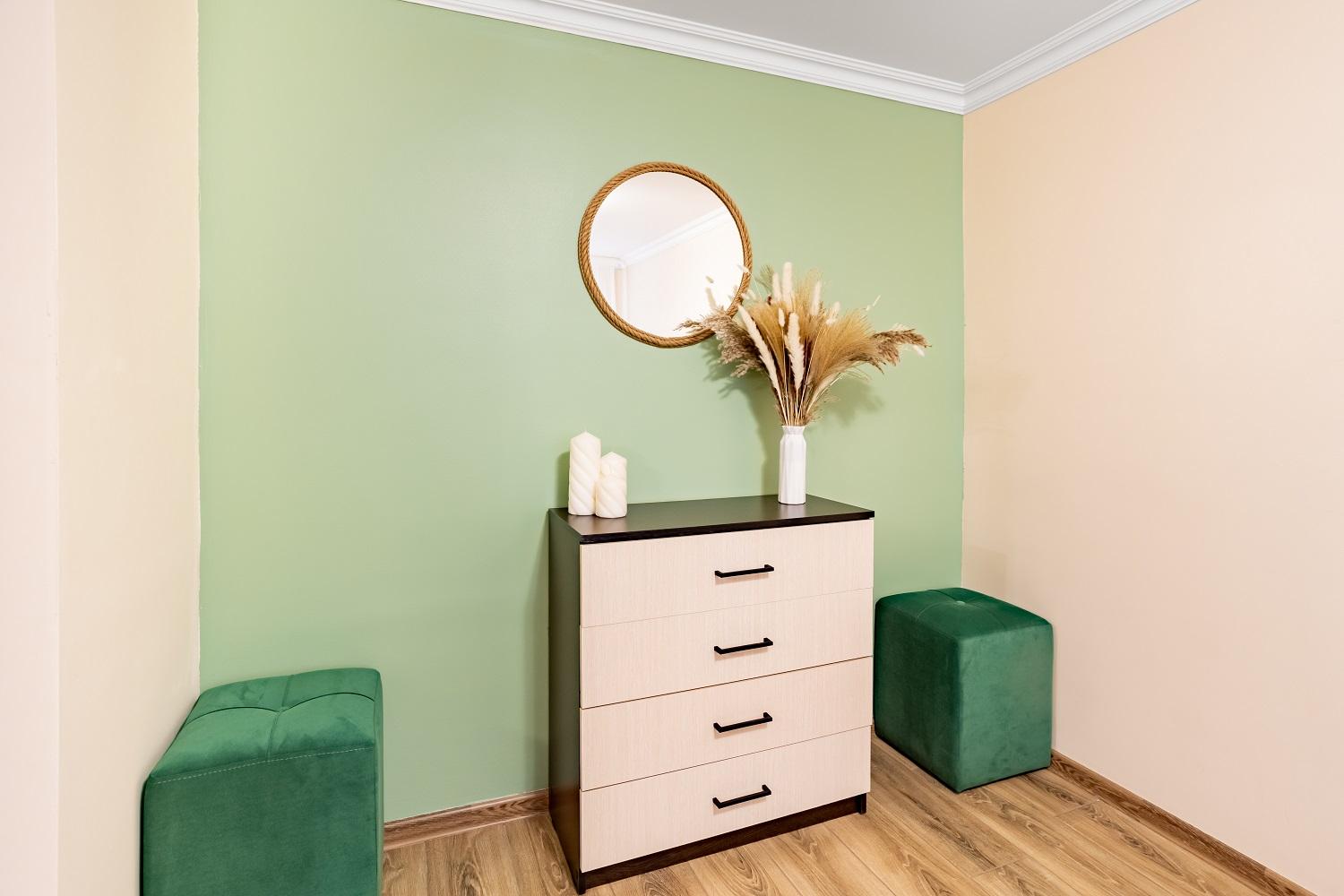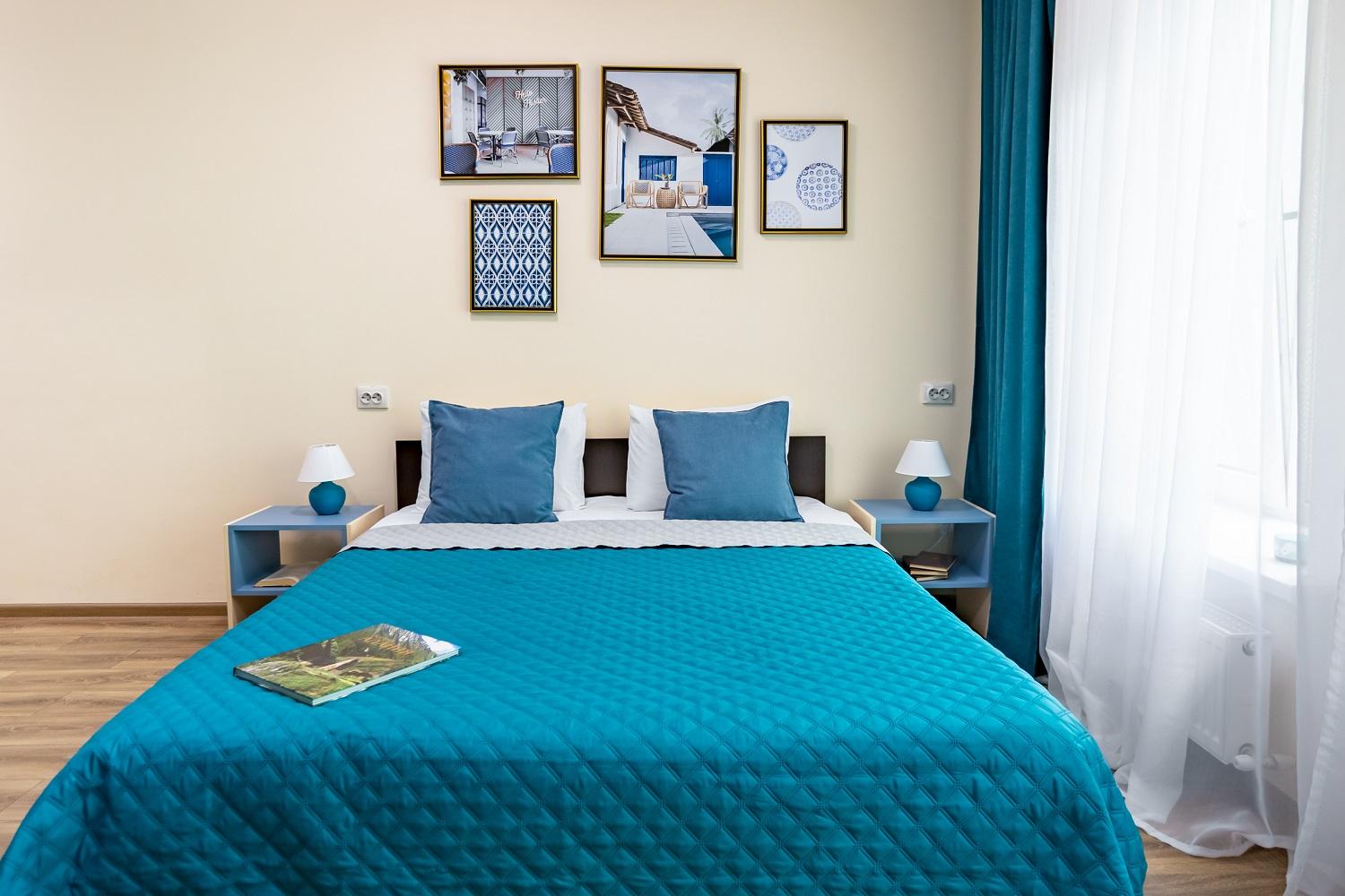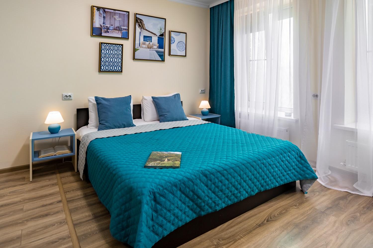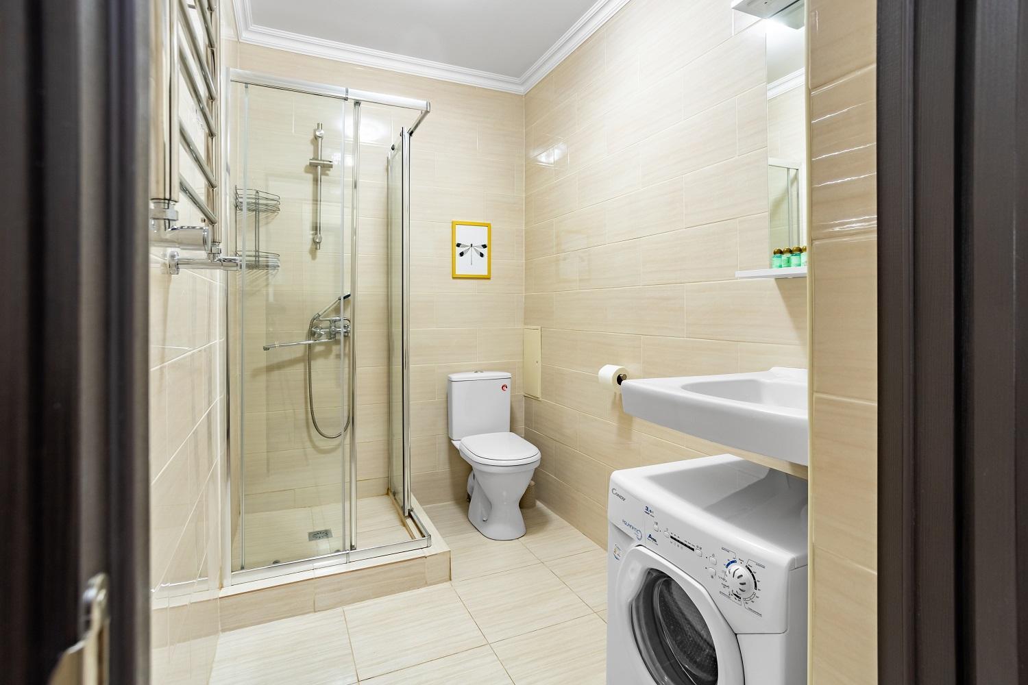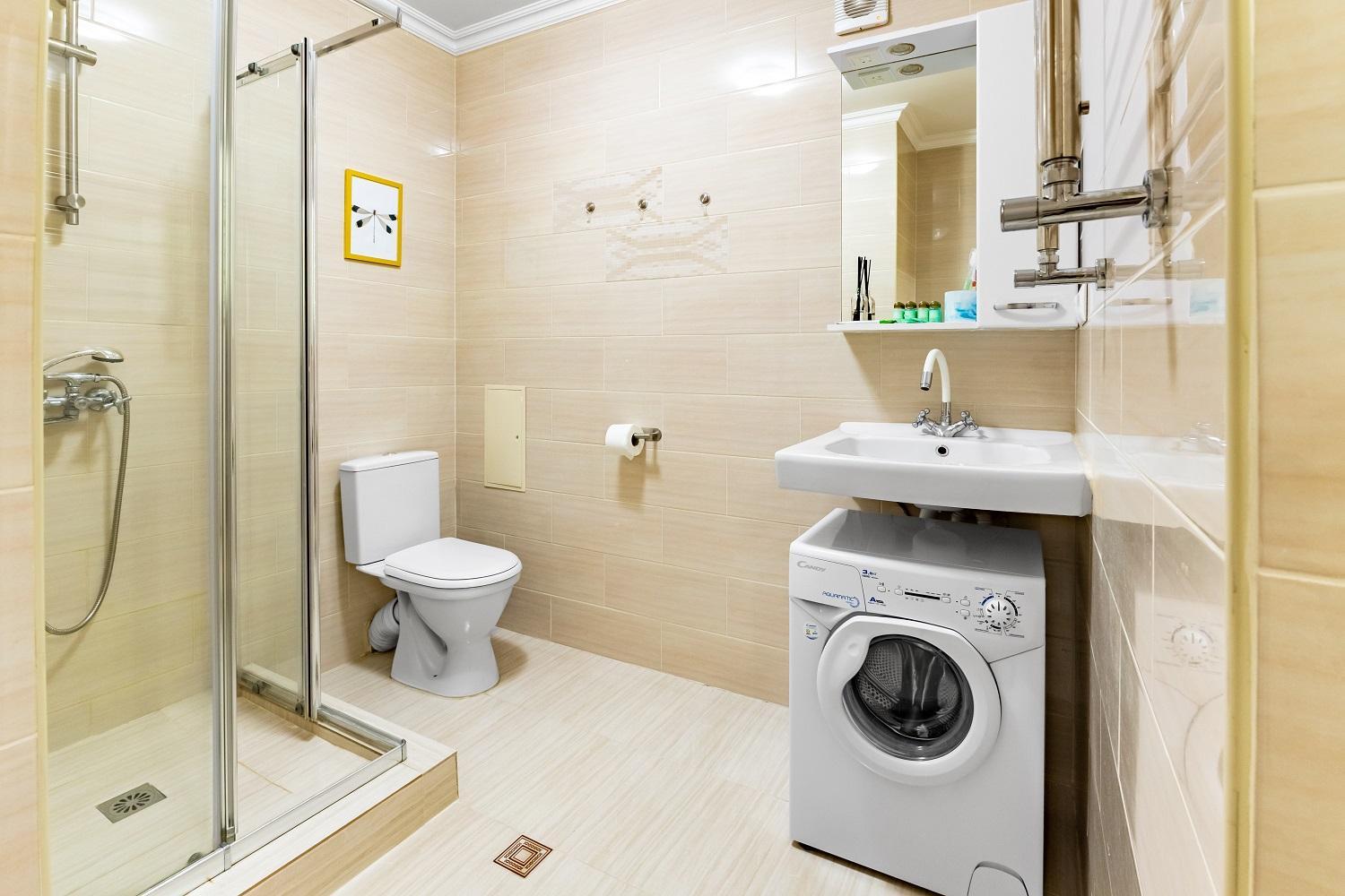Апартаменты выполнены в индивидуальном дизайне. Мини-кухня, обеденная зона и бытовая техника сделают пребывание гостей комфортным и беззаботным.