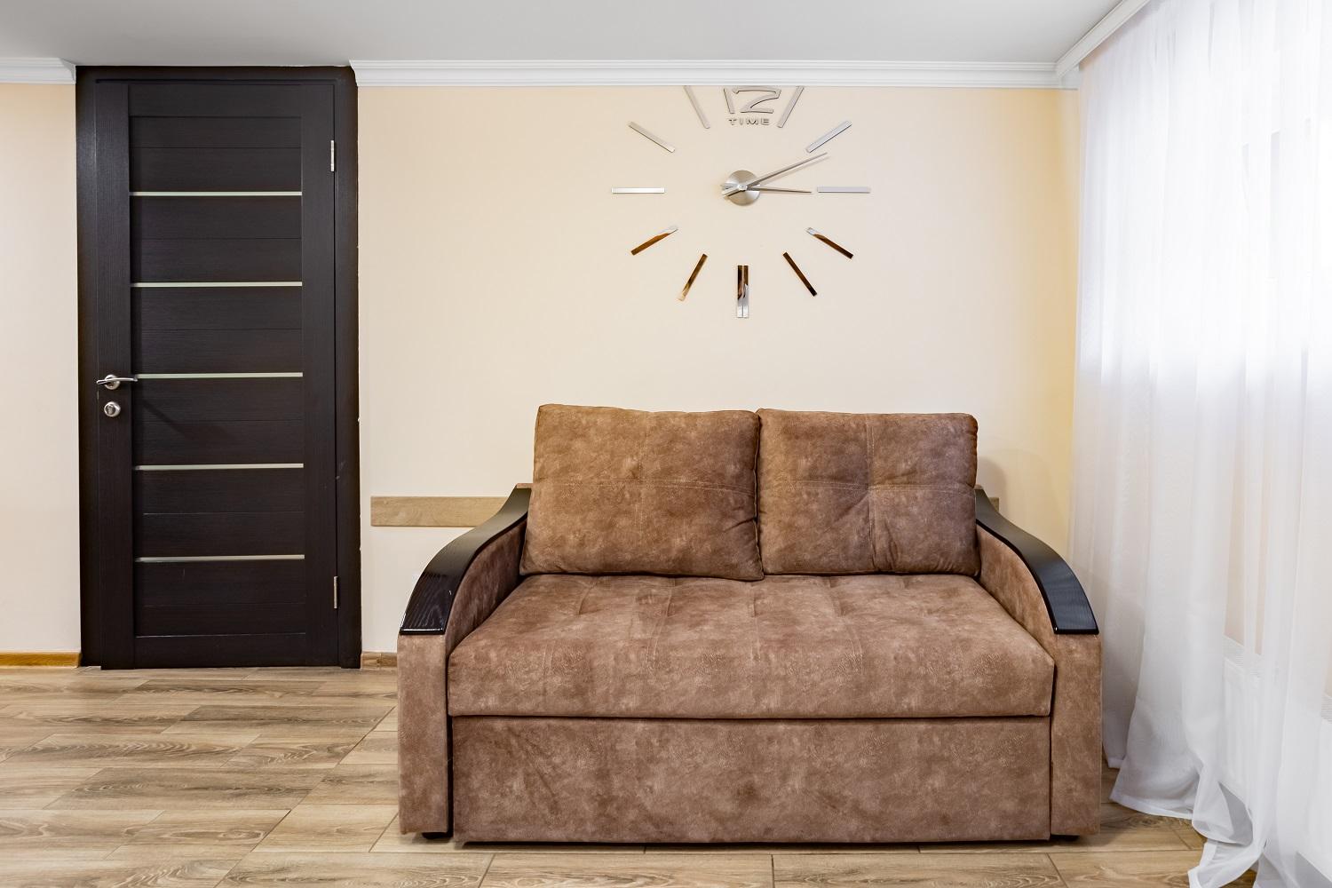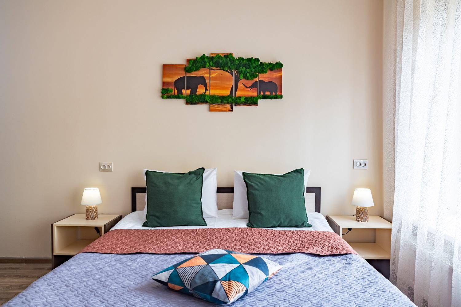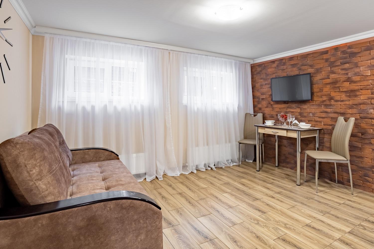 - В номере: душ, туалет, ТВ, холодильник, кондиционер, фен, мини-кухня, электрочайник, СВЧ-печь, двуспальная кровать, диван