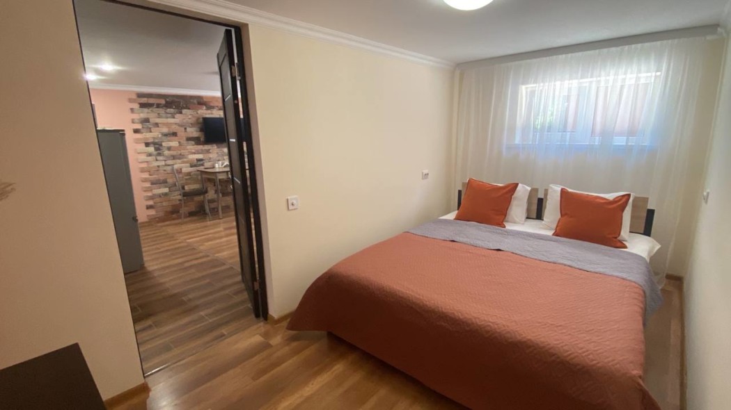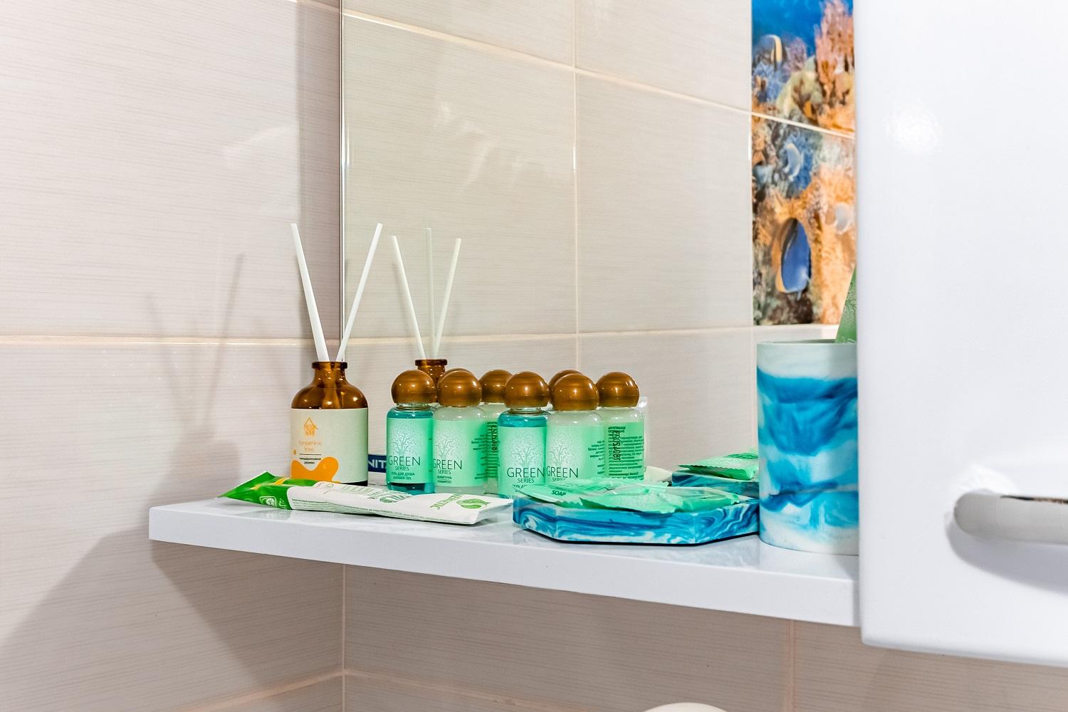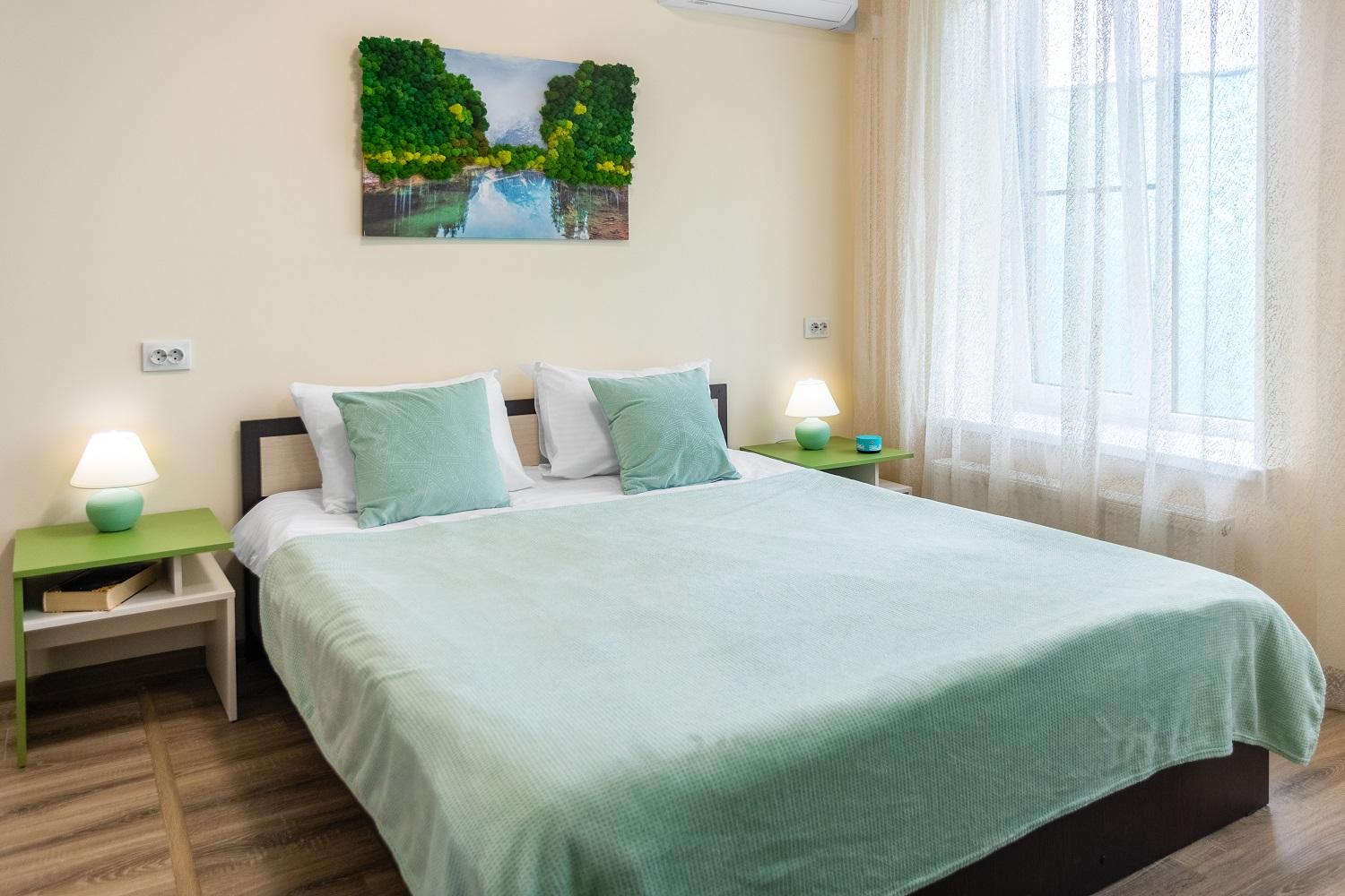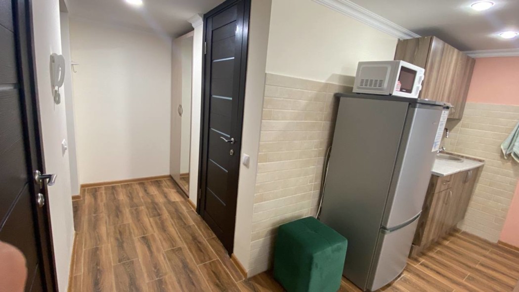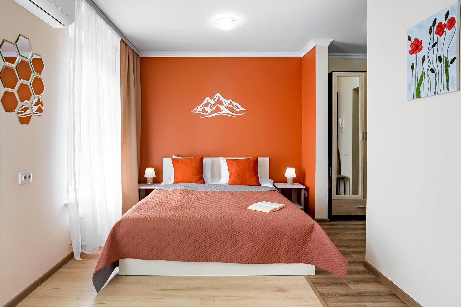 - В номере: душ, туалет, ТВ, холодильник, кондиционер, мини-кухня, электрочайник, СВЧ-печь, двуспальная кровать