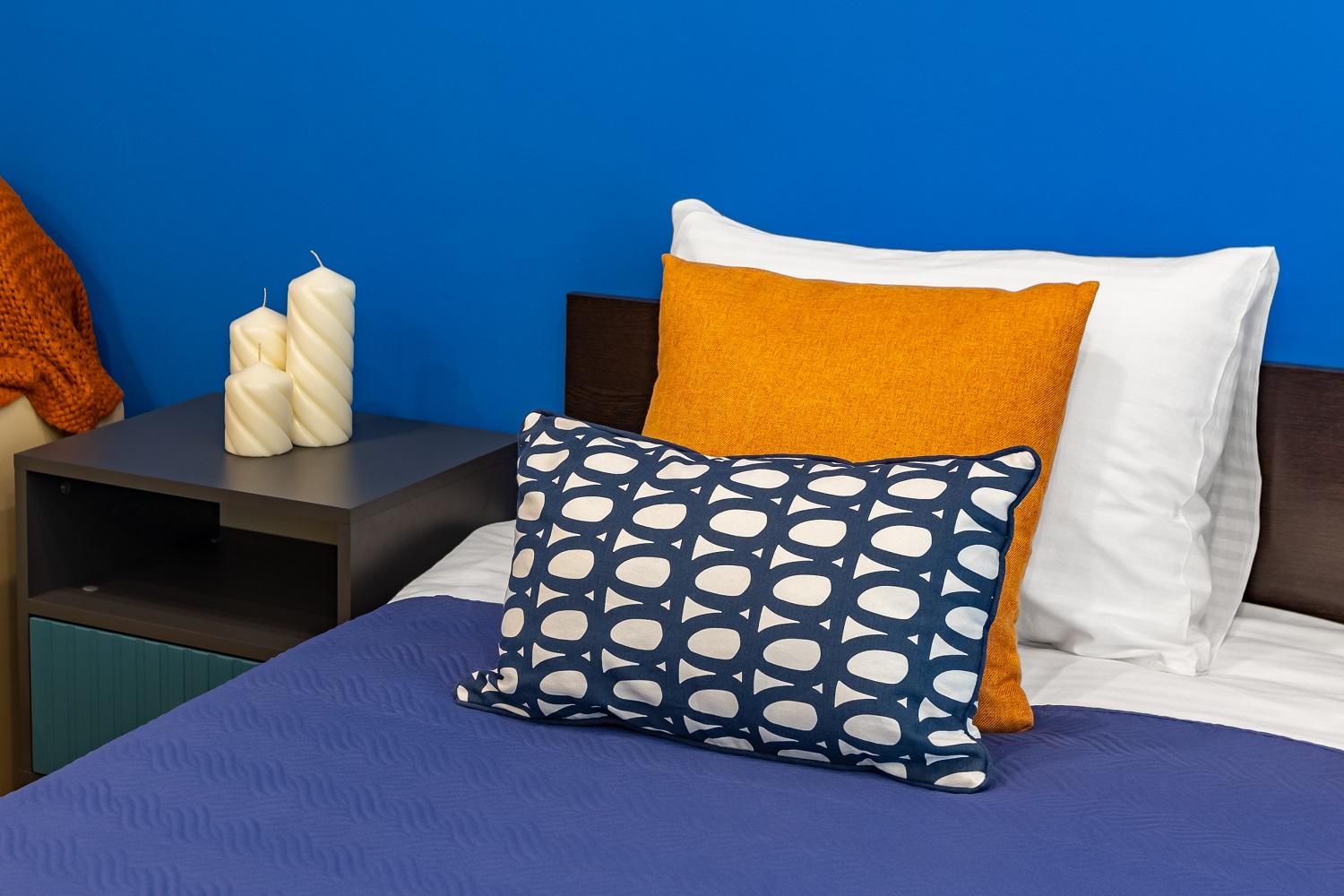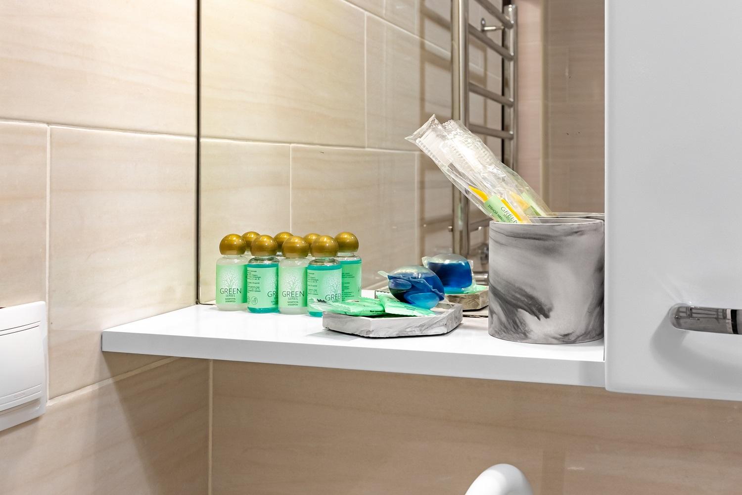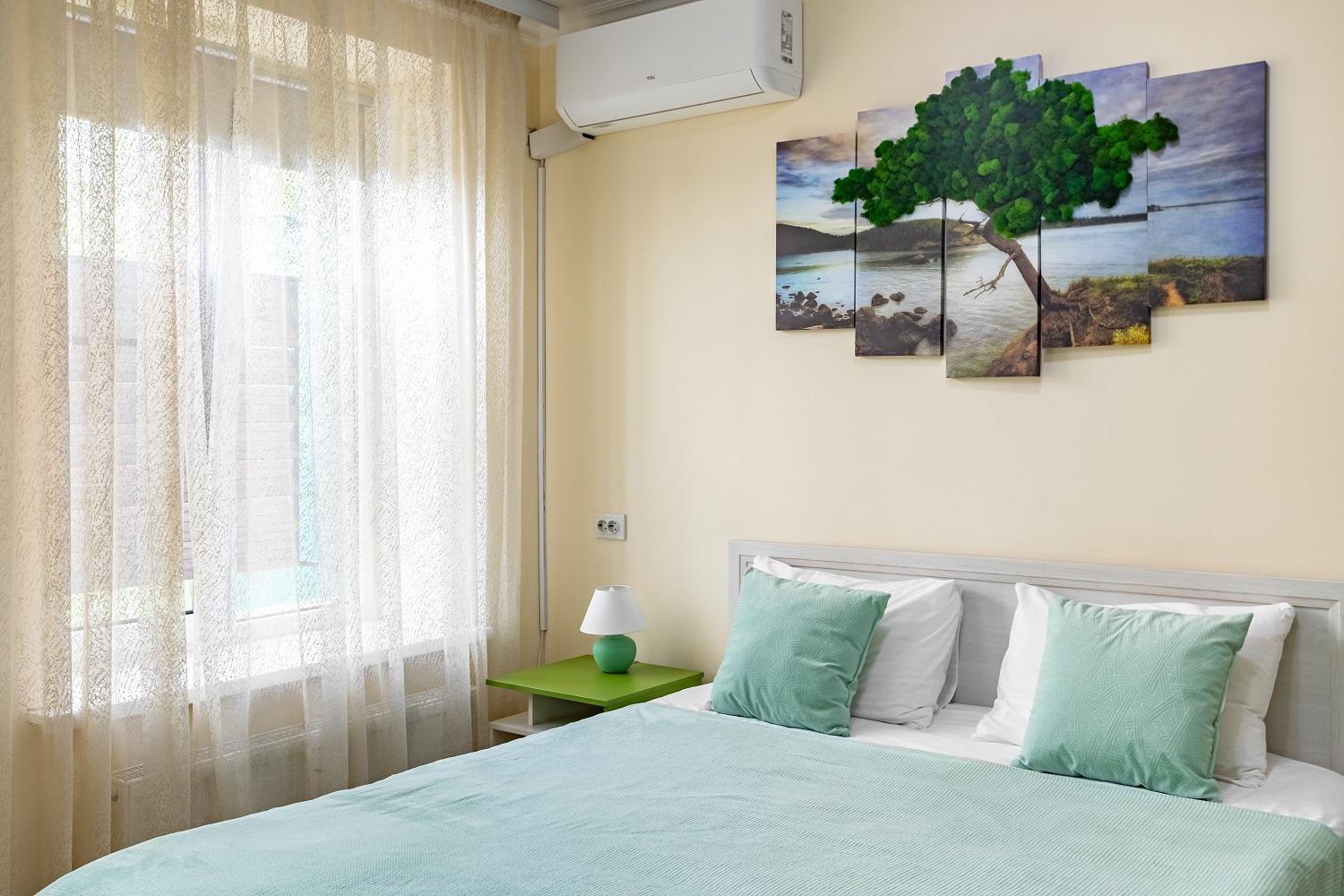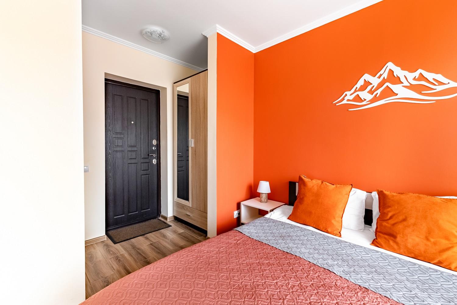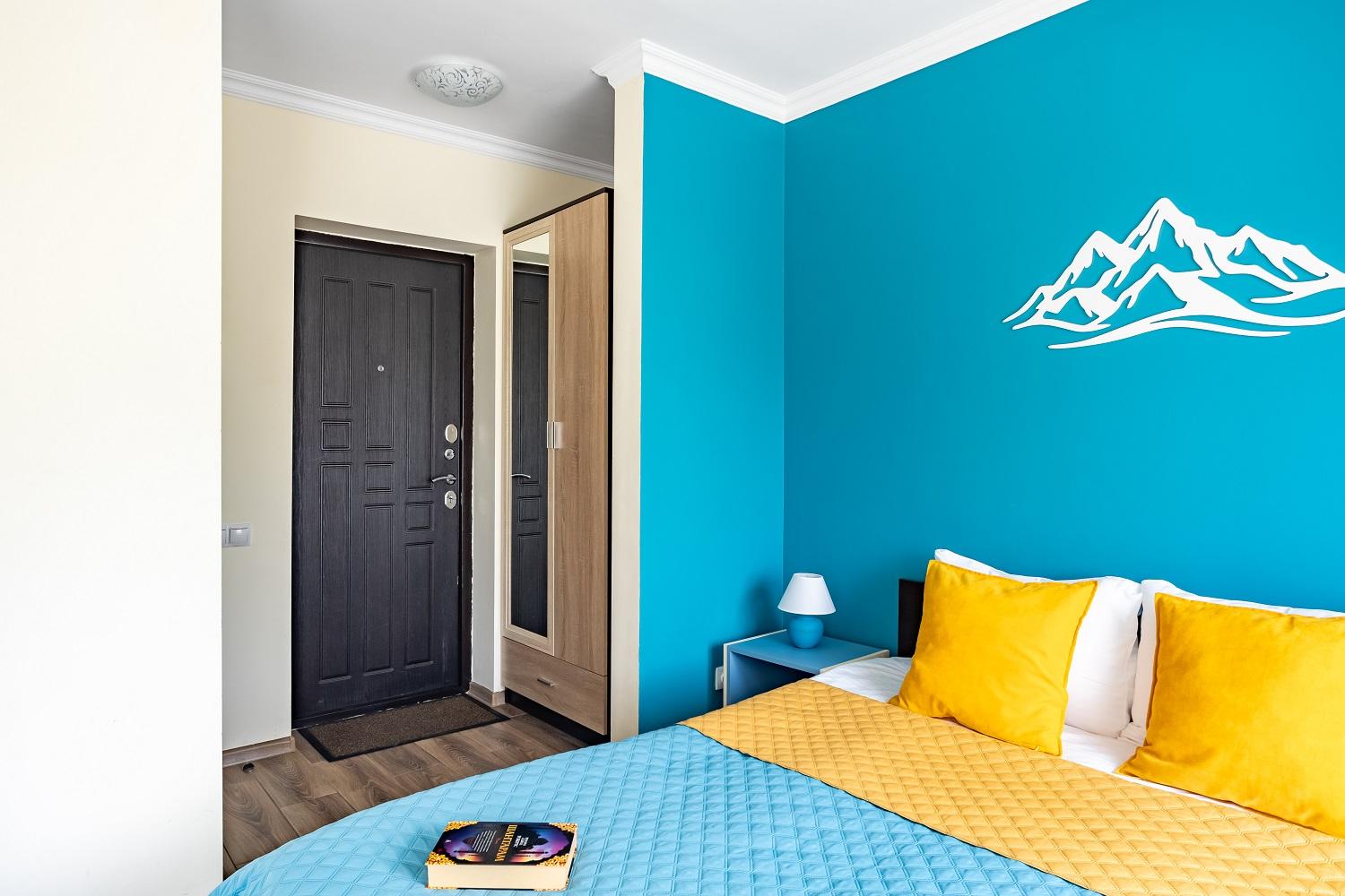 - В номере: душ, туалет, ТВ, холодильник, кондиционер, мини-кухня, электрочайник, СВЧ-печь, двуспальная кровать
