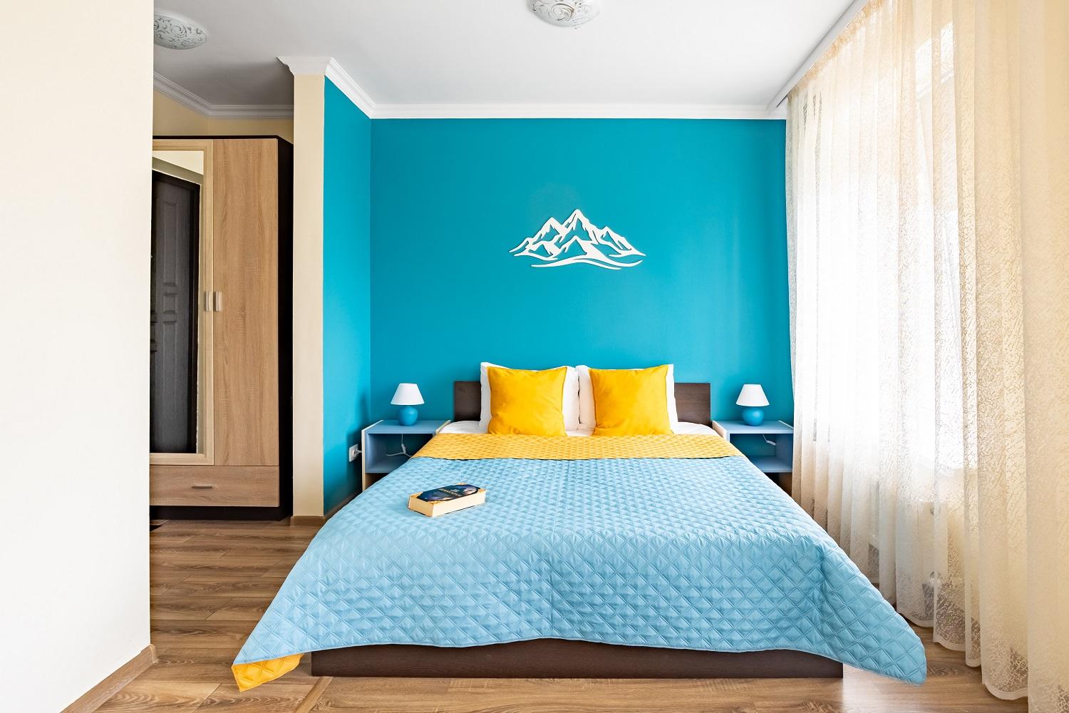 - В номере: душ, туалет, ТВ, холодильник, кондиционер, фен, мини-кухня, электрочайник, СВЧ-печь, двуспальная кровать