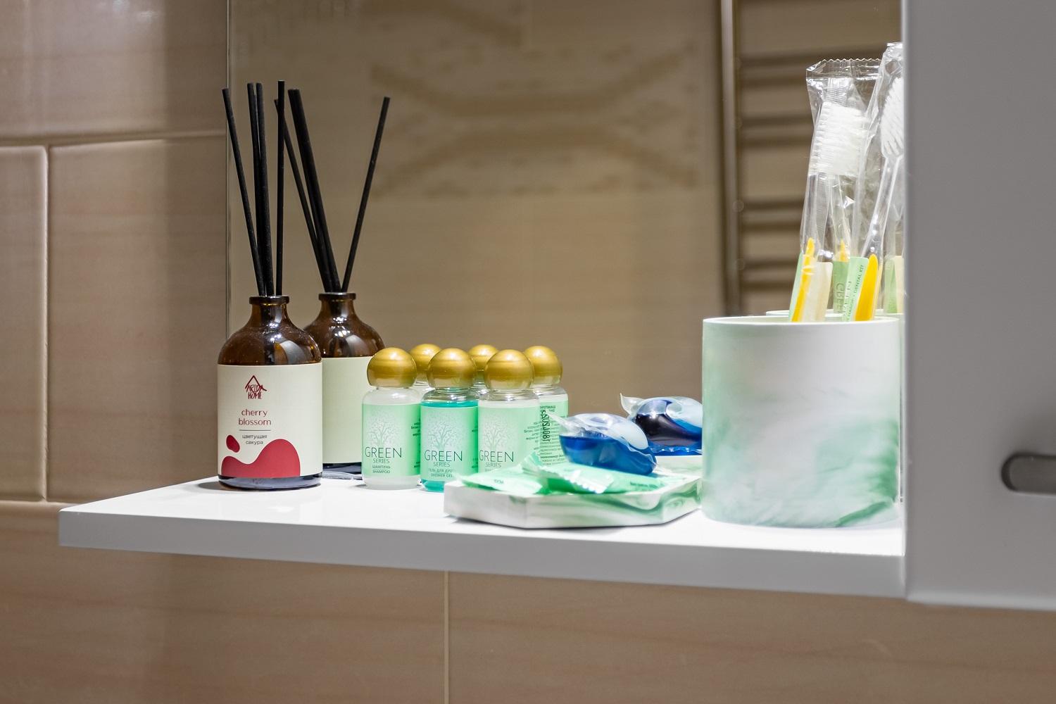 - В номере: душ, туалет, ТВ, холодильник, кондиционер, фен, мини-кухня, электрочайник