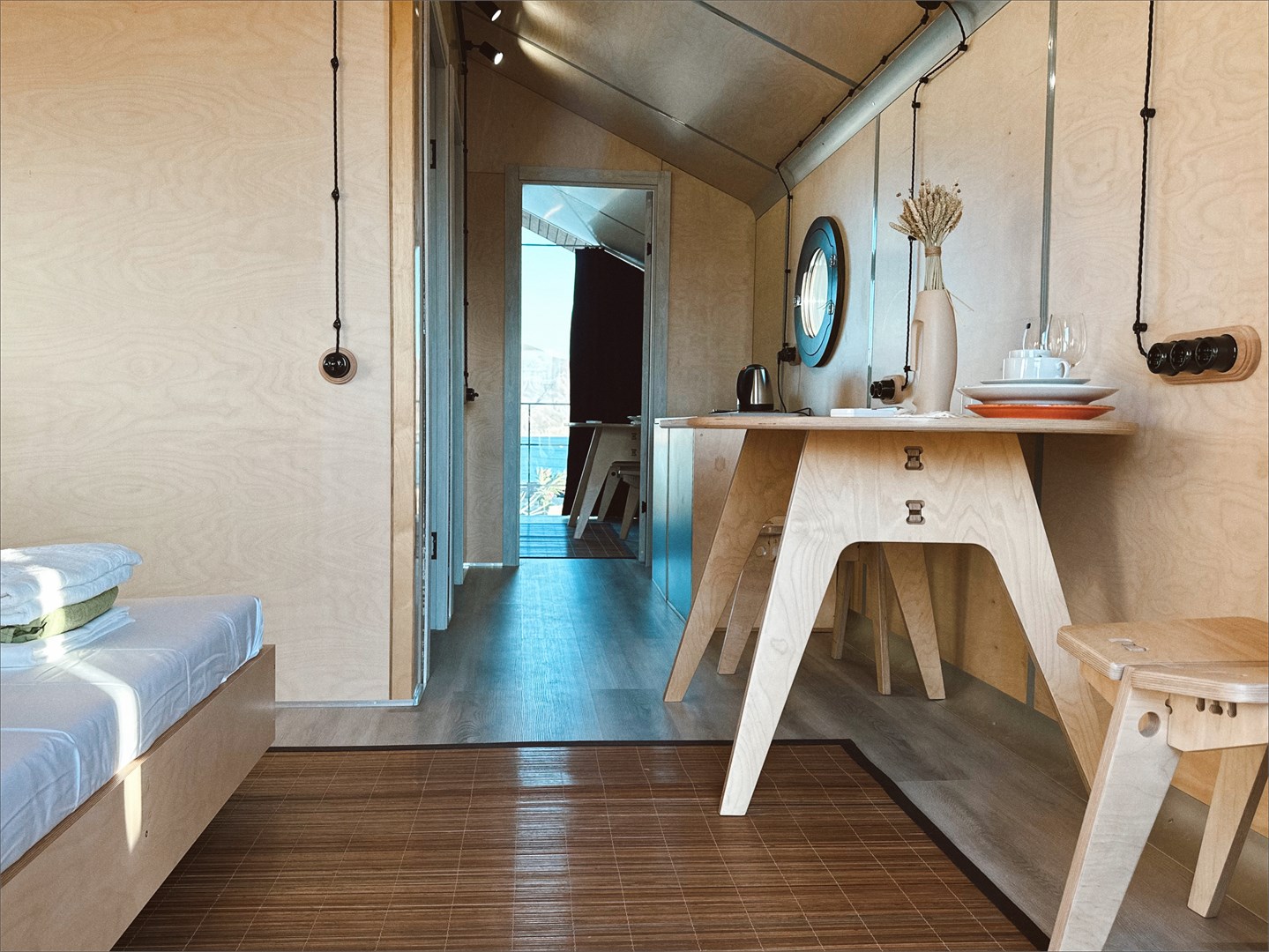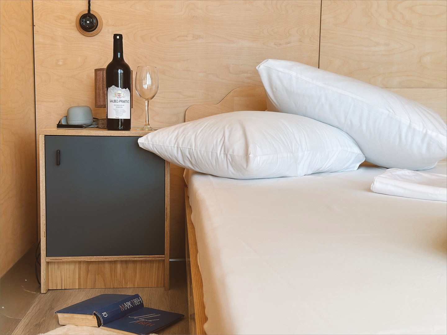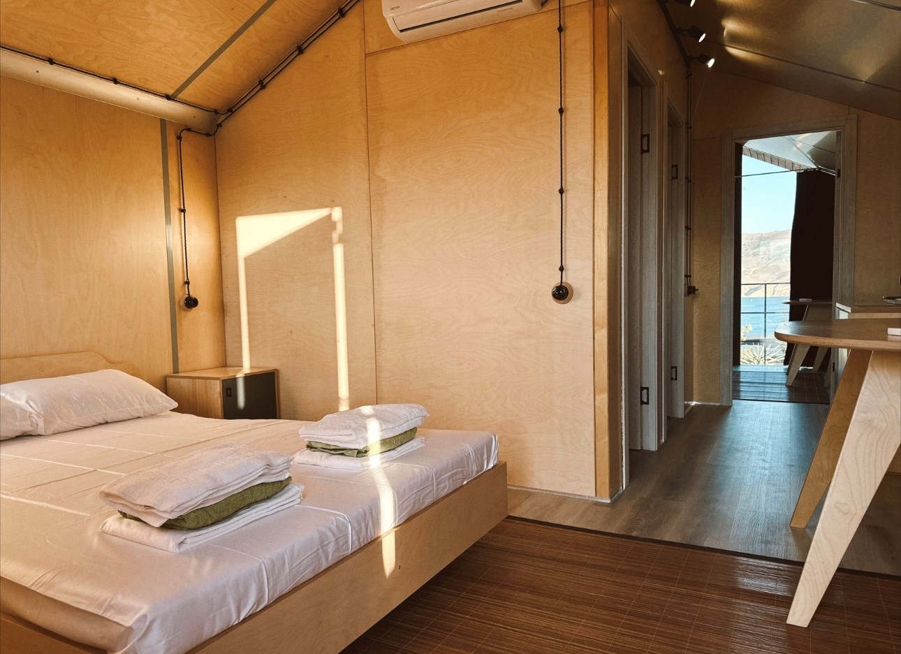 22 эко-дома на склоне живописной бухты Капсель вдали от городской суеты. Все дома утеплены, оборудованы системой кондиционирования, электрическими обогревателями и очень тёплыми одеялами.