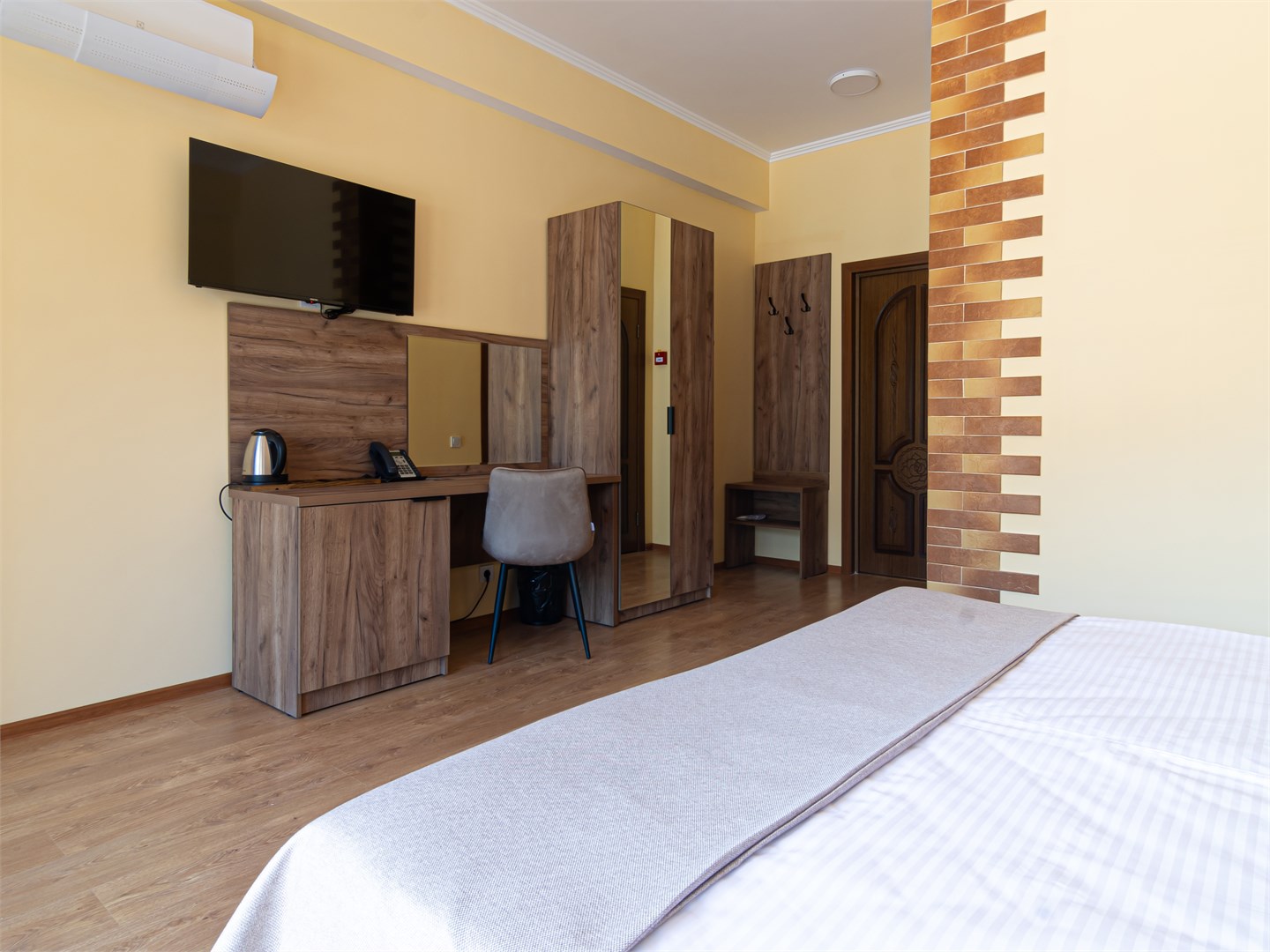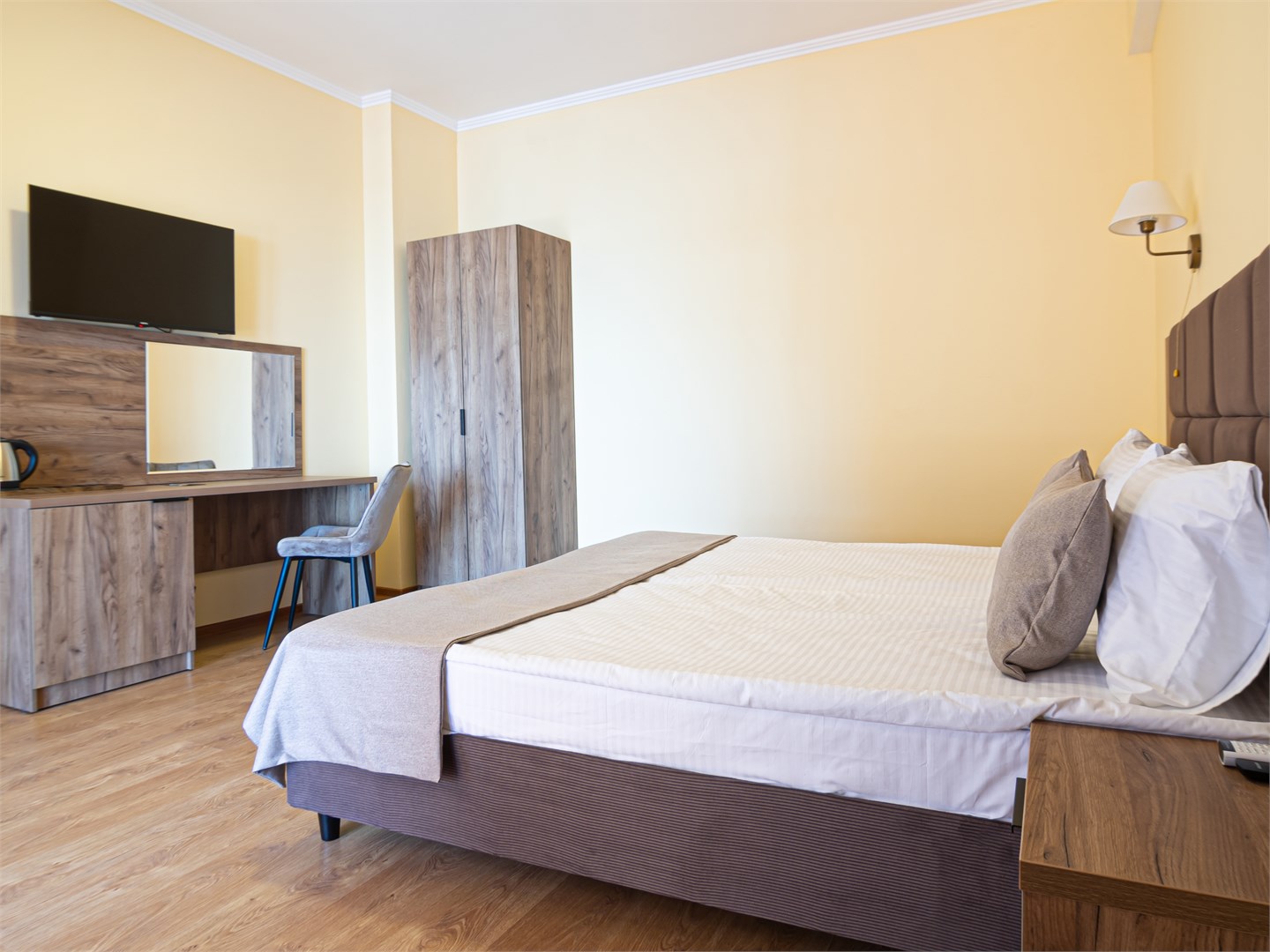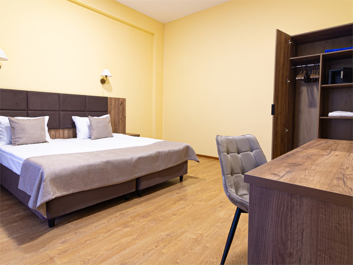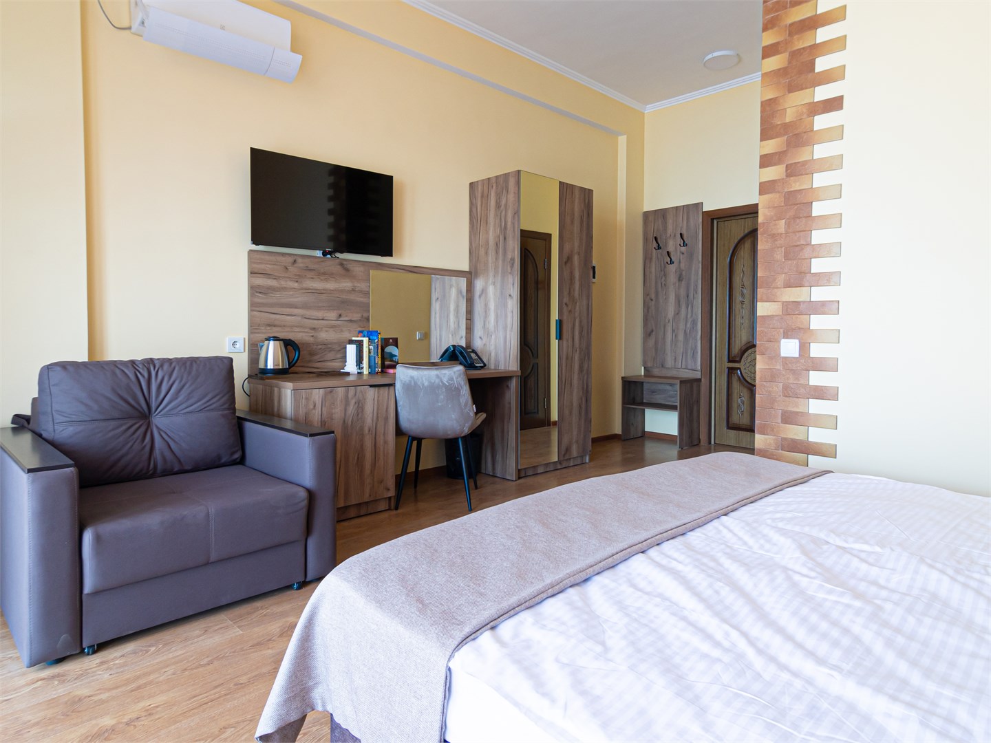 Для размещения предоставляются номера разной комфортности и вместимости. В каждом номере имеется новая удобная мебель, кондиционер, телевизор и холодильник. Для удобства работает интернет Wi-Fi.