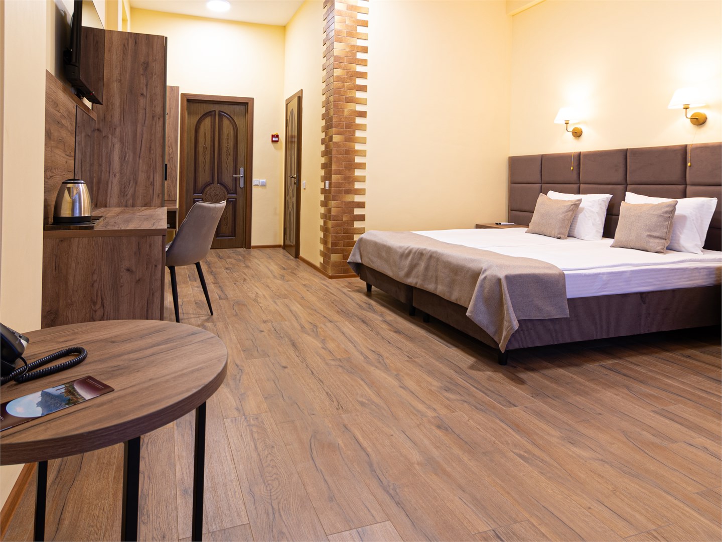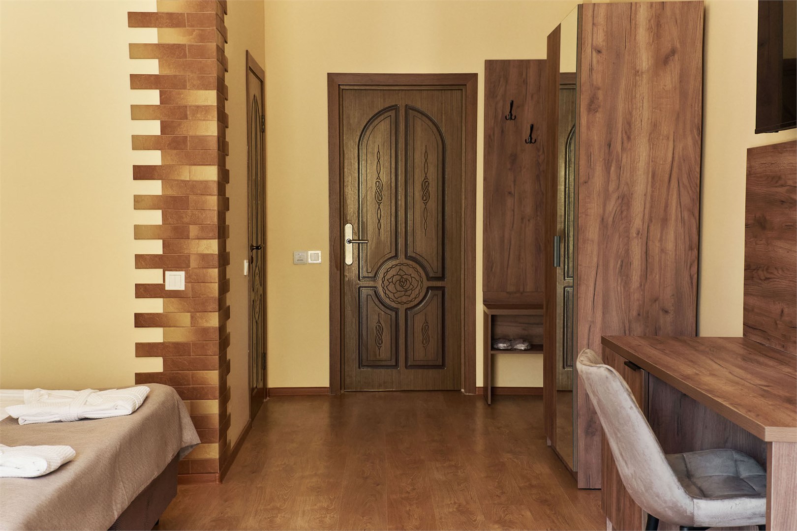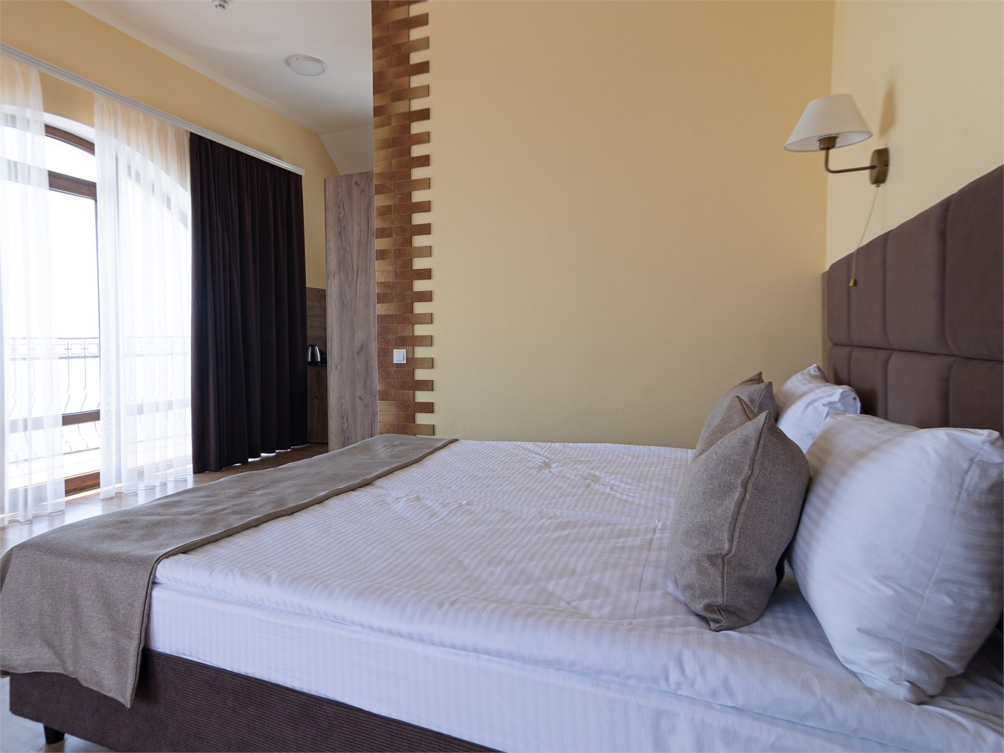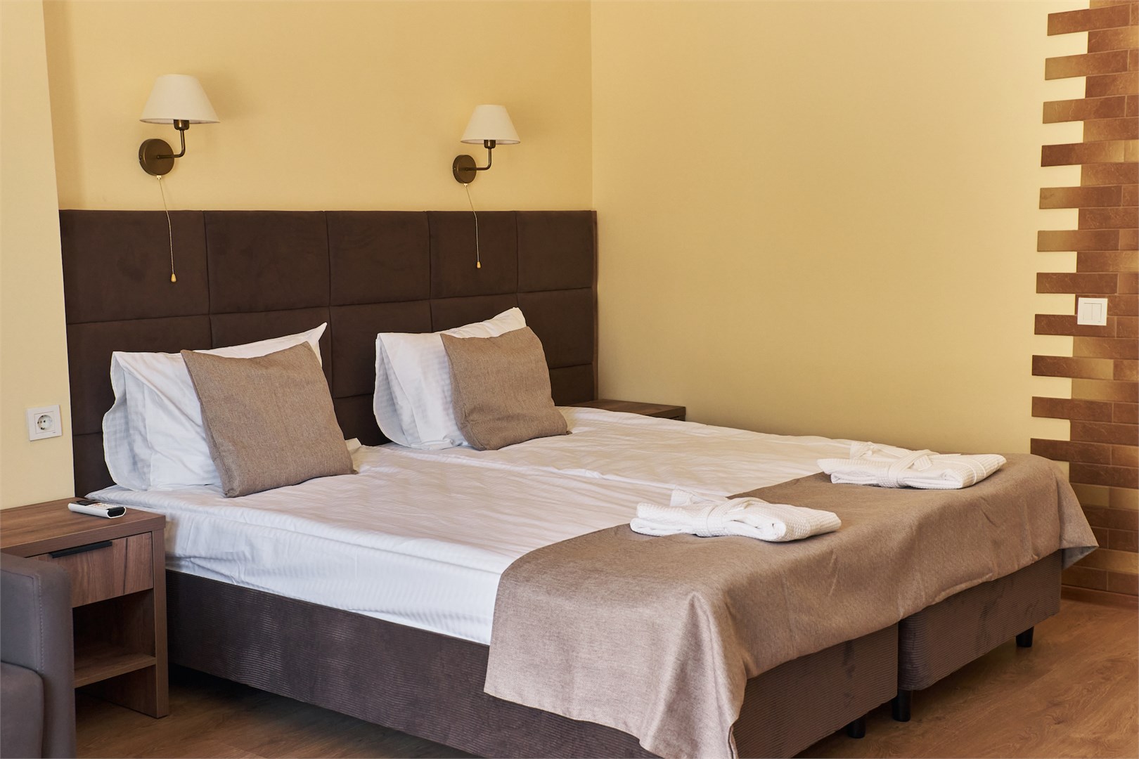 Для размещения предоставляются номера разной комфортности и вместимости. В каждом номере имеется новая удобная мебель, кондиционер, телевизор и холодильник. Для удобства работает интернет Wi-Fi.