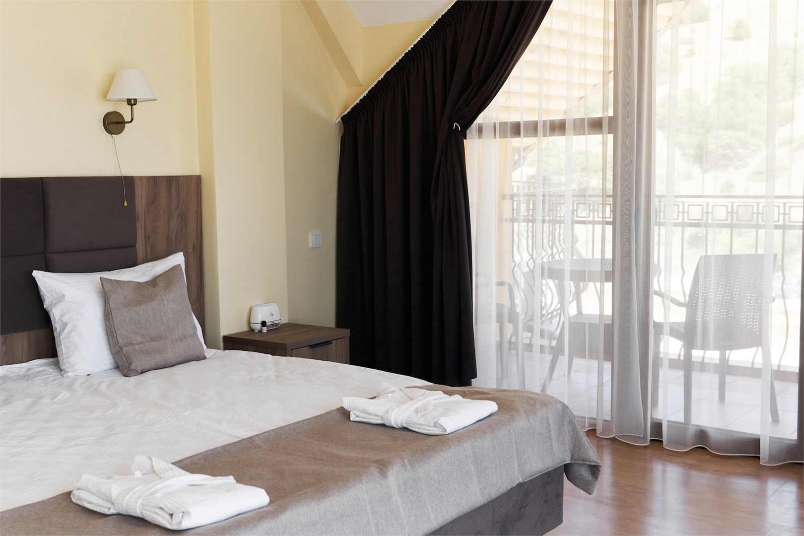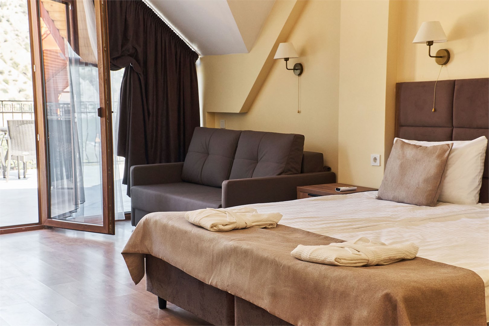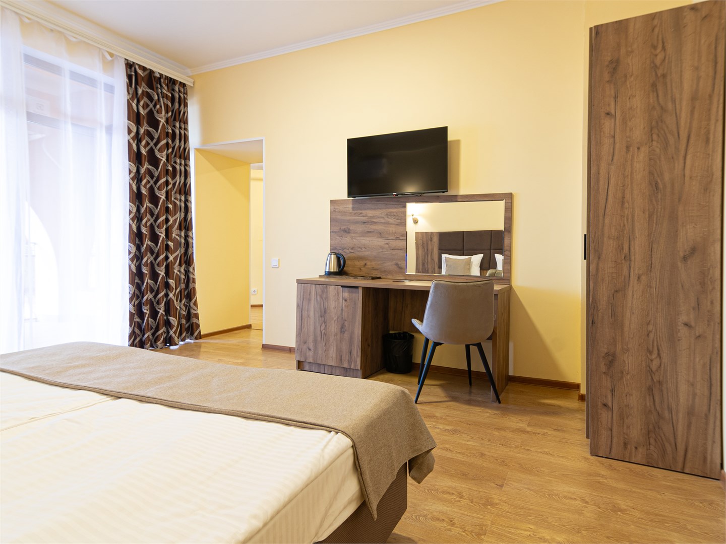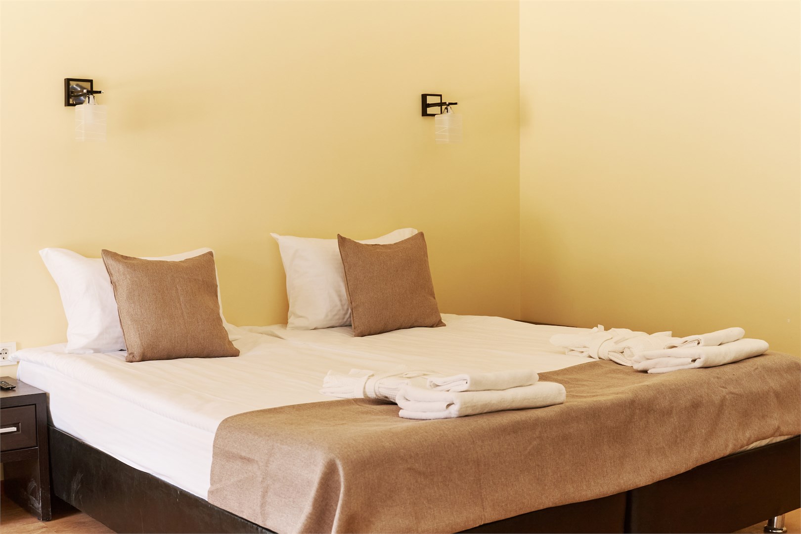 Для размещения предоставляются номера разной комфортности и вместимости. В каждом номере имеется новая удобная мебель, кондиционер, телевизор и холодильник. Для удобства работает интернет Wi-Fi.