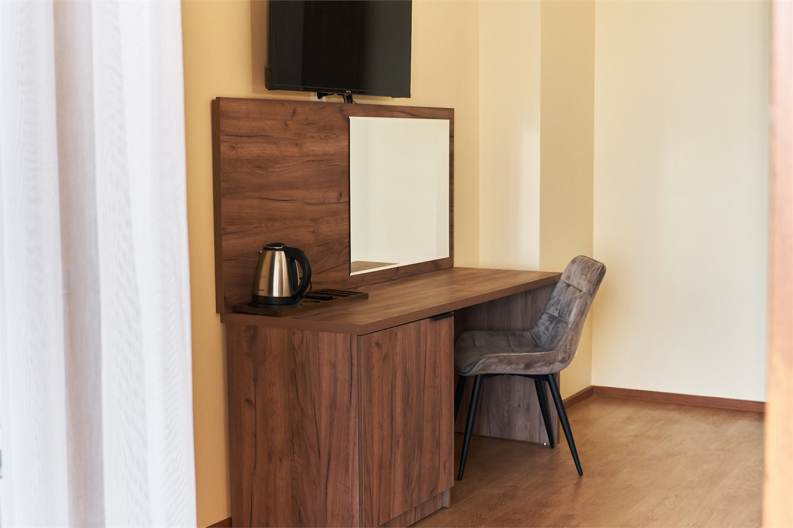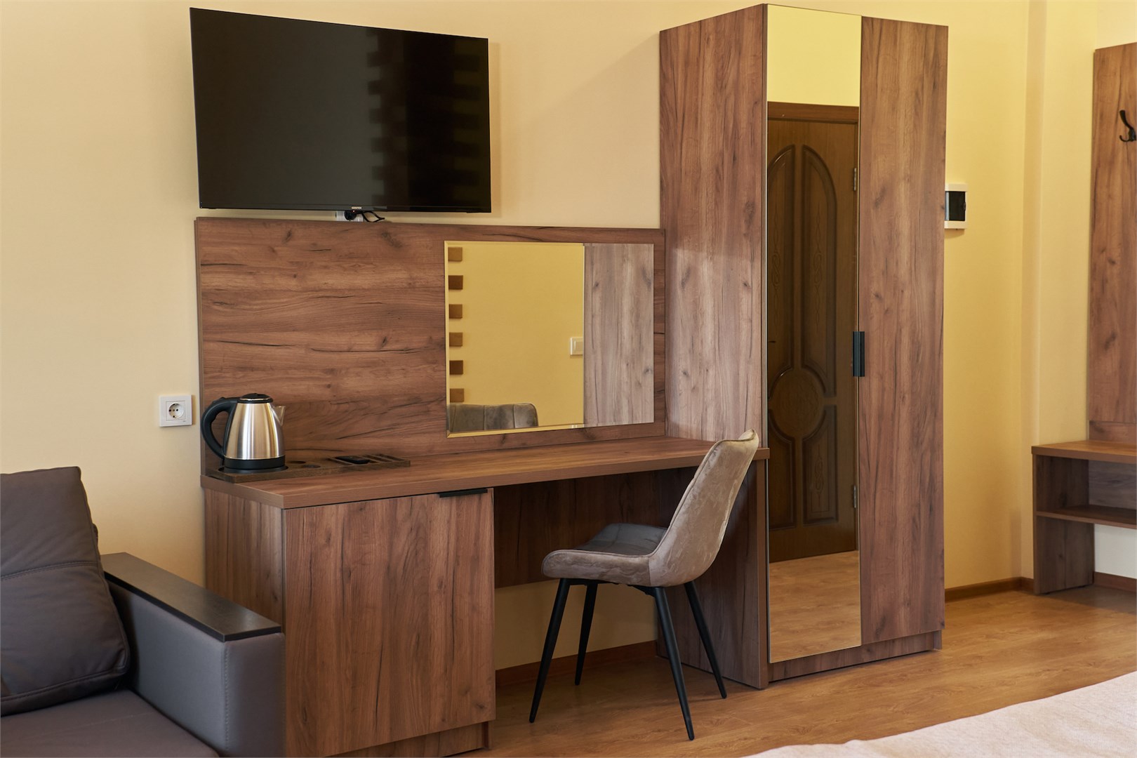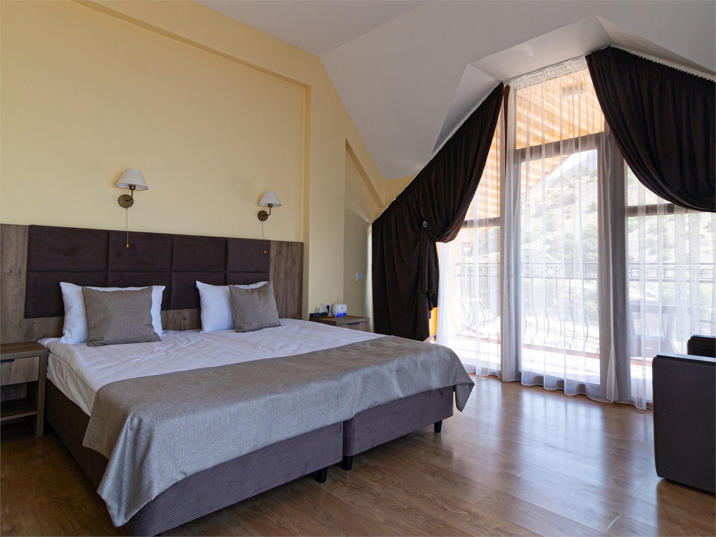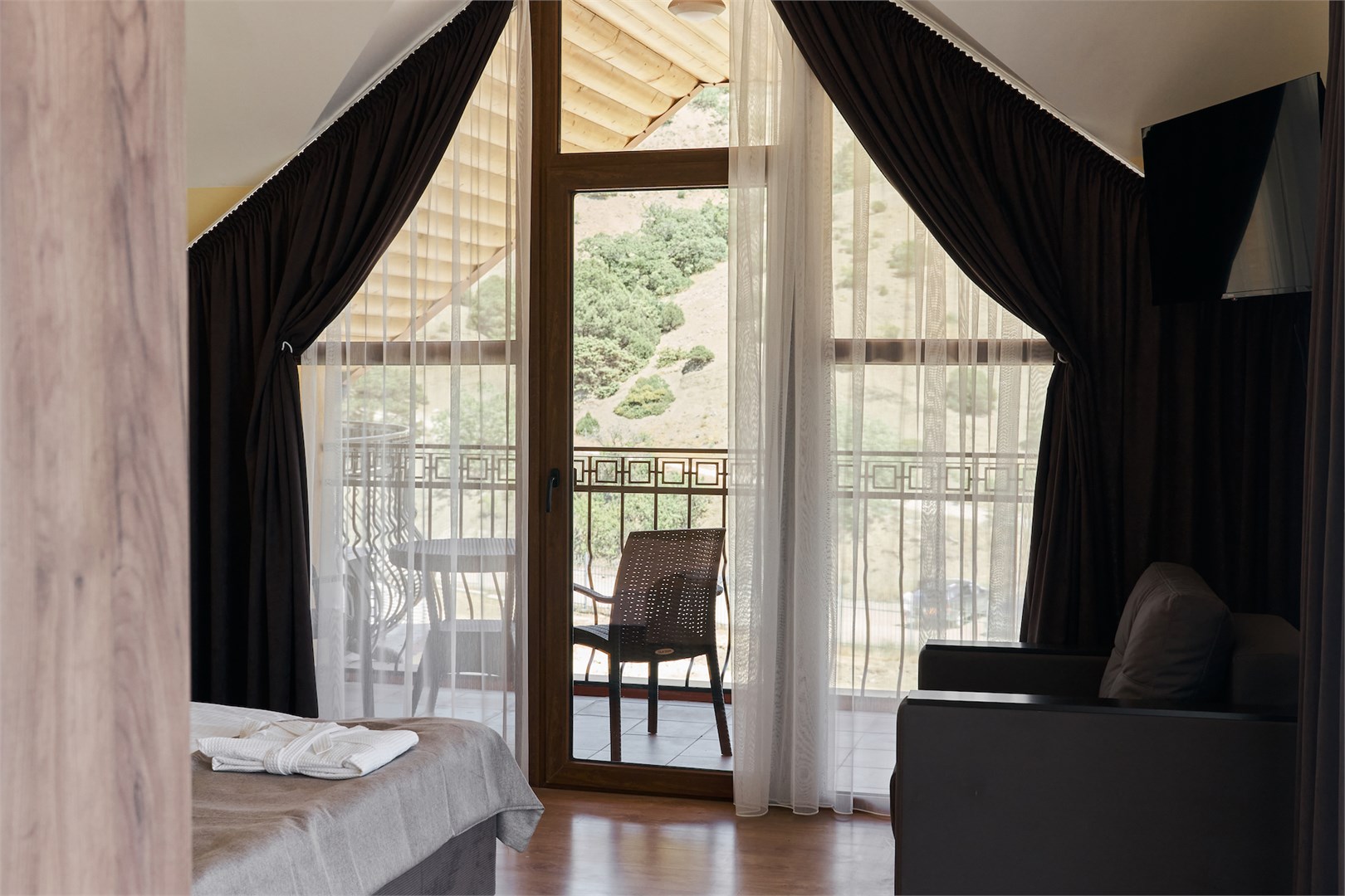Для размещения предоставляются номера разной комфортности и вместимости. В каждом номере имеется новая удобная мебель, кондиционер, телевизор и холодильник. Для удобства работает интернет Wi-Fi.