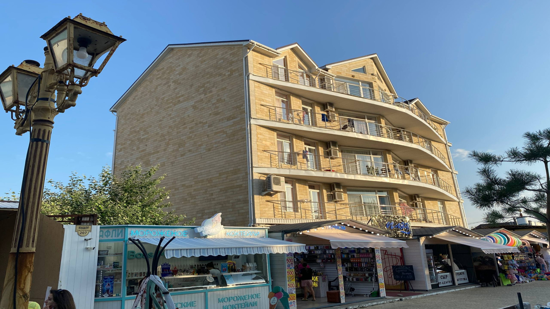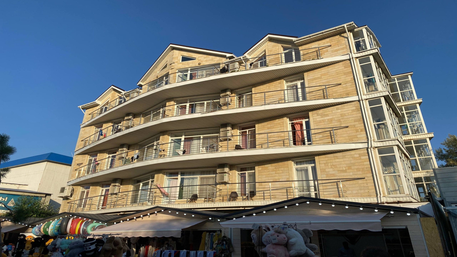 Расположение: первая береговая линия, всего 50 метров до собственного песчаного пляжа. Рядом — набережная, аквапарк и парк развлечений.