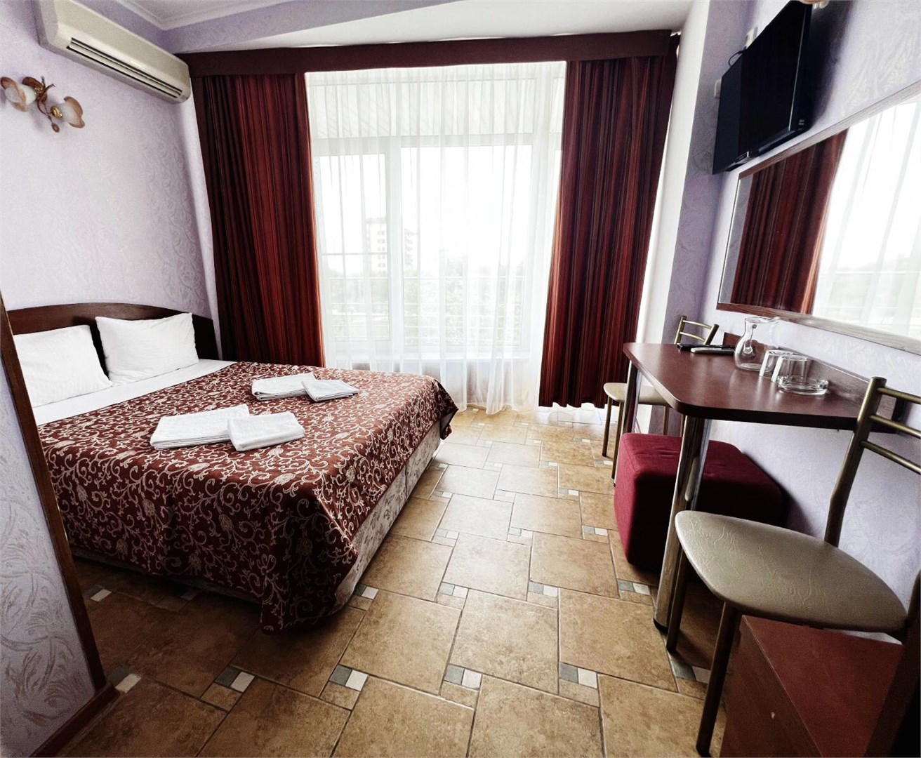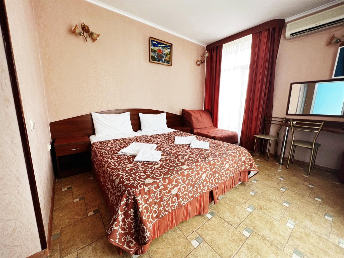 Во всех номерах: балкон, кондиционер, TV, холодильник и современная сантехника.