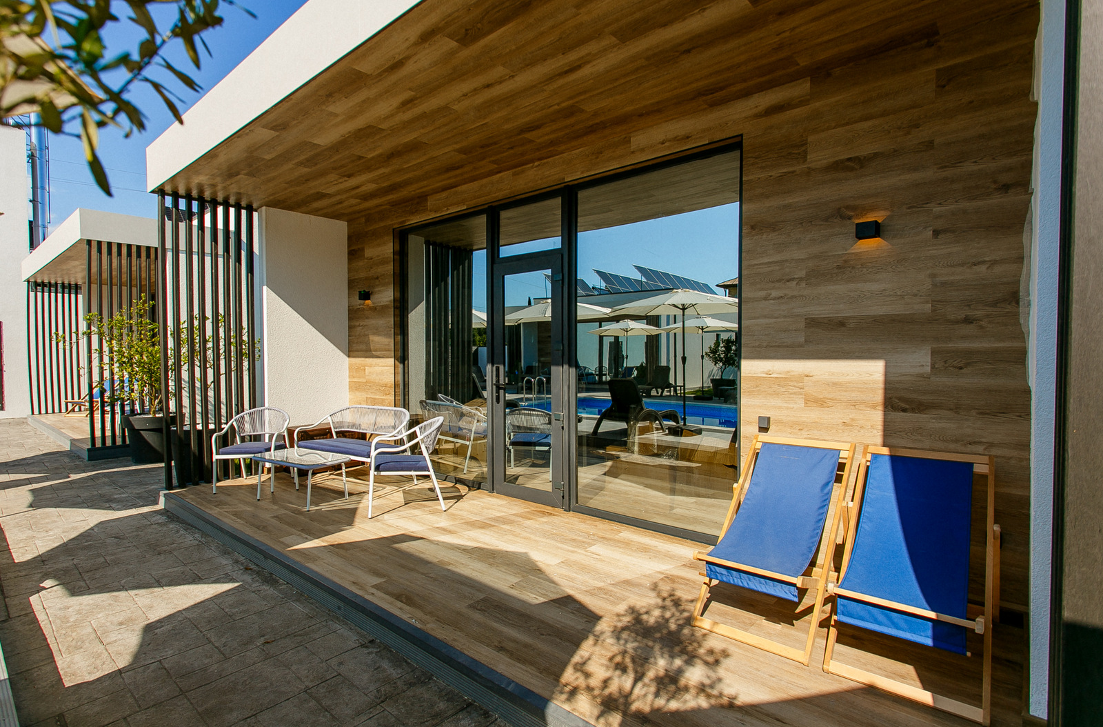 Частная терраса: место, где можно отдохнуть, наслаждаясь свежим воздухом, великолепными пейзажами и тихими вечерами.