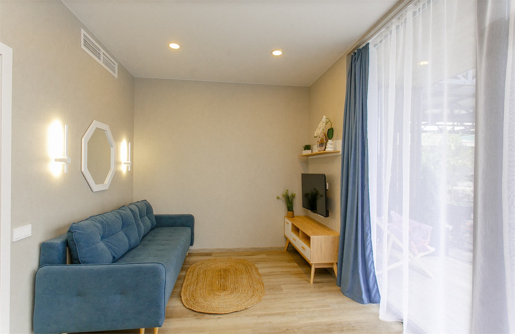 Легкая прогулка по живописным улочкам (всего 400 метров) отделяет от городского песчано-галечного пляжа, где гостей ждет чистое море, теплое солнце и расслабляющая атмосфера. Дорога к побережью сама по себе становится приятным началом каждого дня.