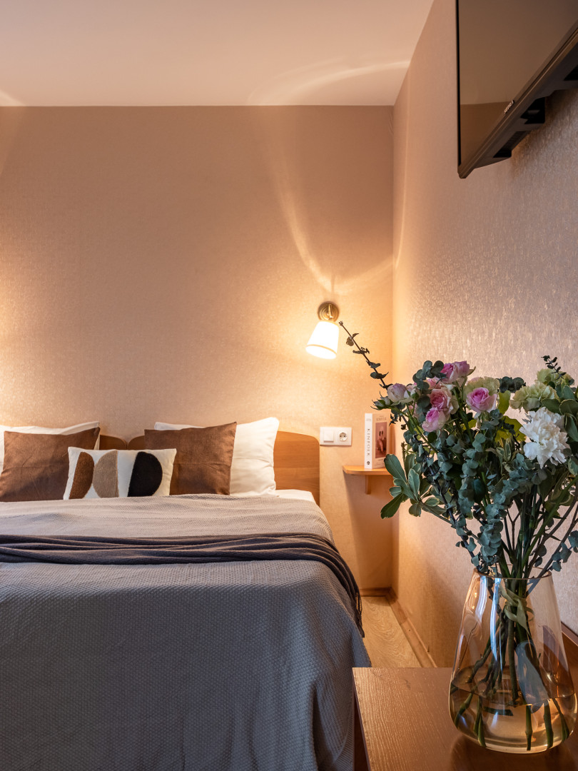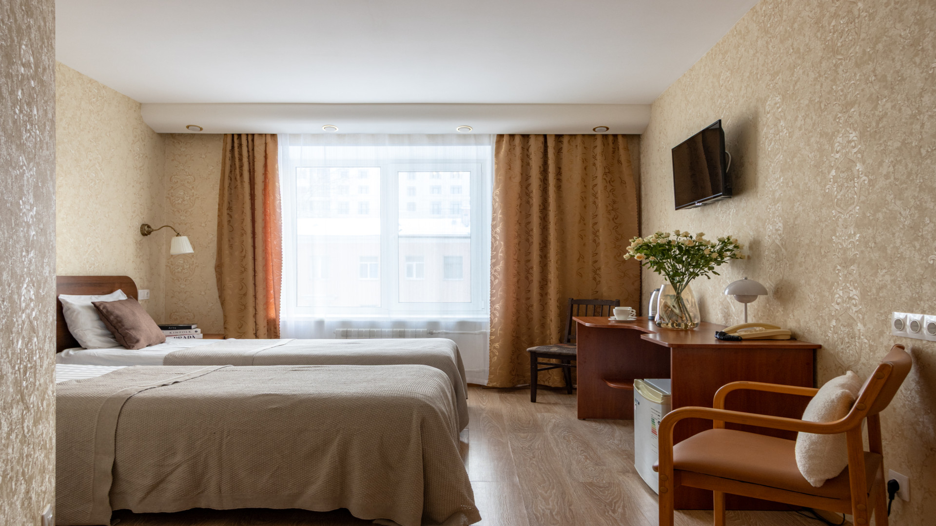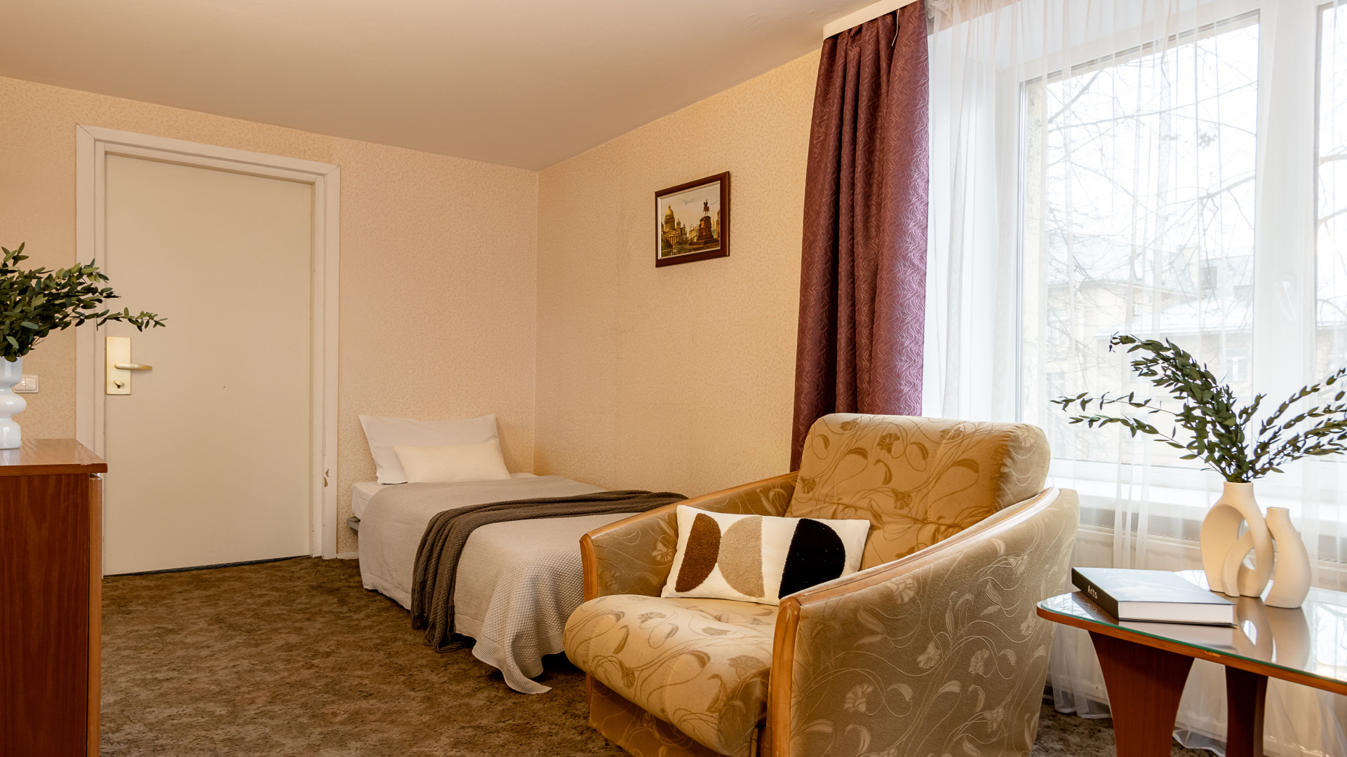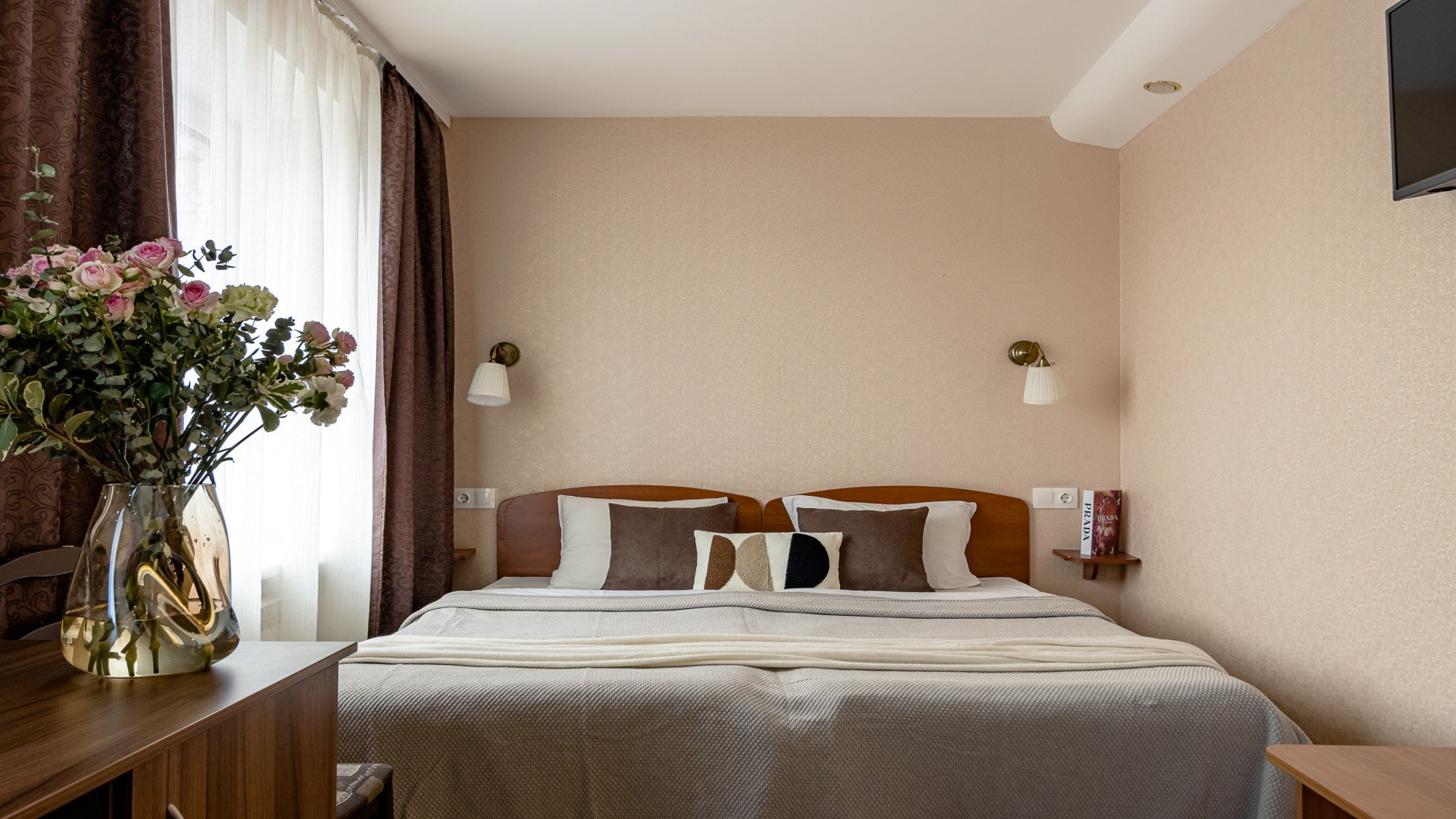 Рядом находятся Лиговский проспект, транспортные узлы, магазины и городская инфраструктура. Отсюда удобно добираться до исторического центра, вокзалов и деловых районов. Номера оформлены в спокойной палитре и оснащены всем необходимым для отдыха и работы. Удобные кровати, собственные ванные комнаты и продуманные планировки создают ощущение порядка и уюта.